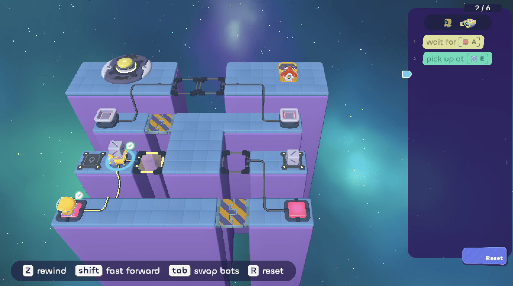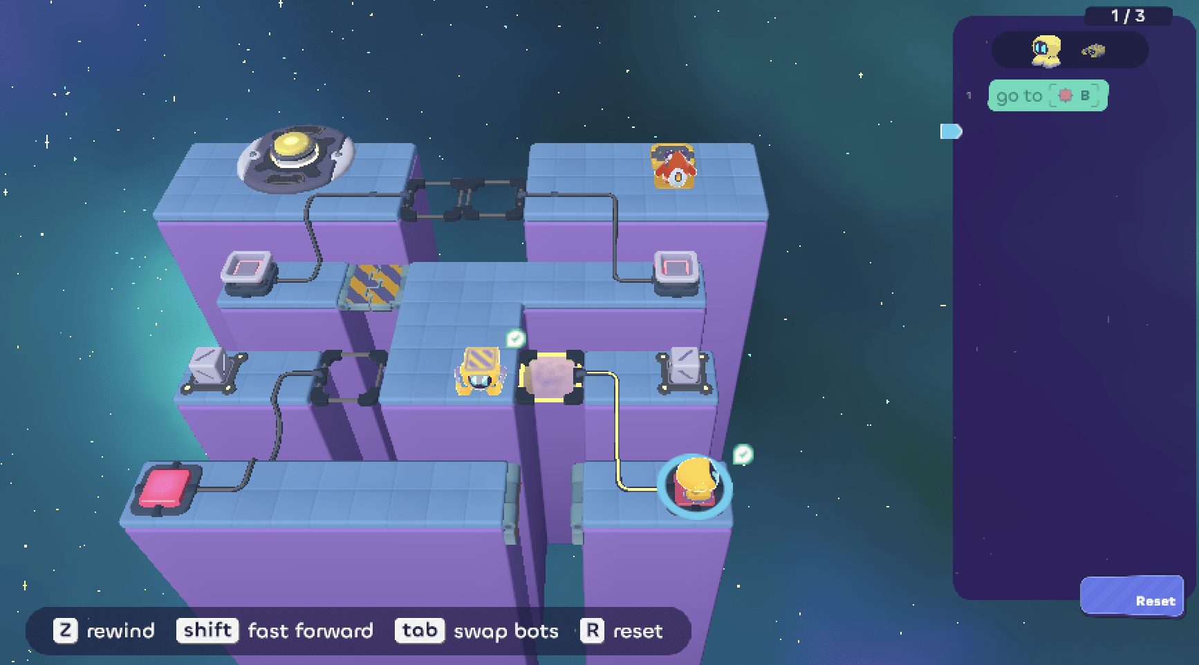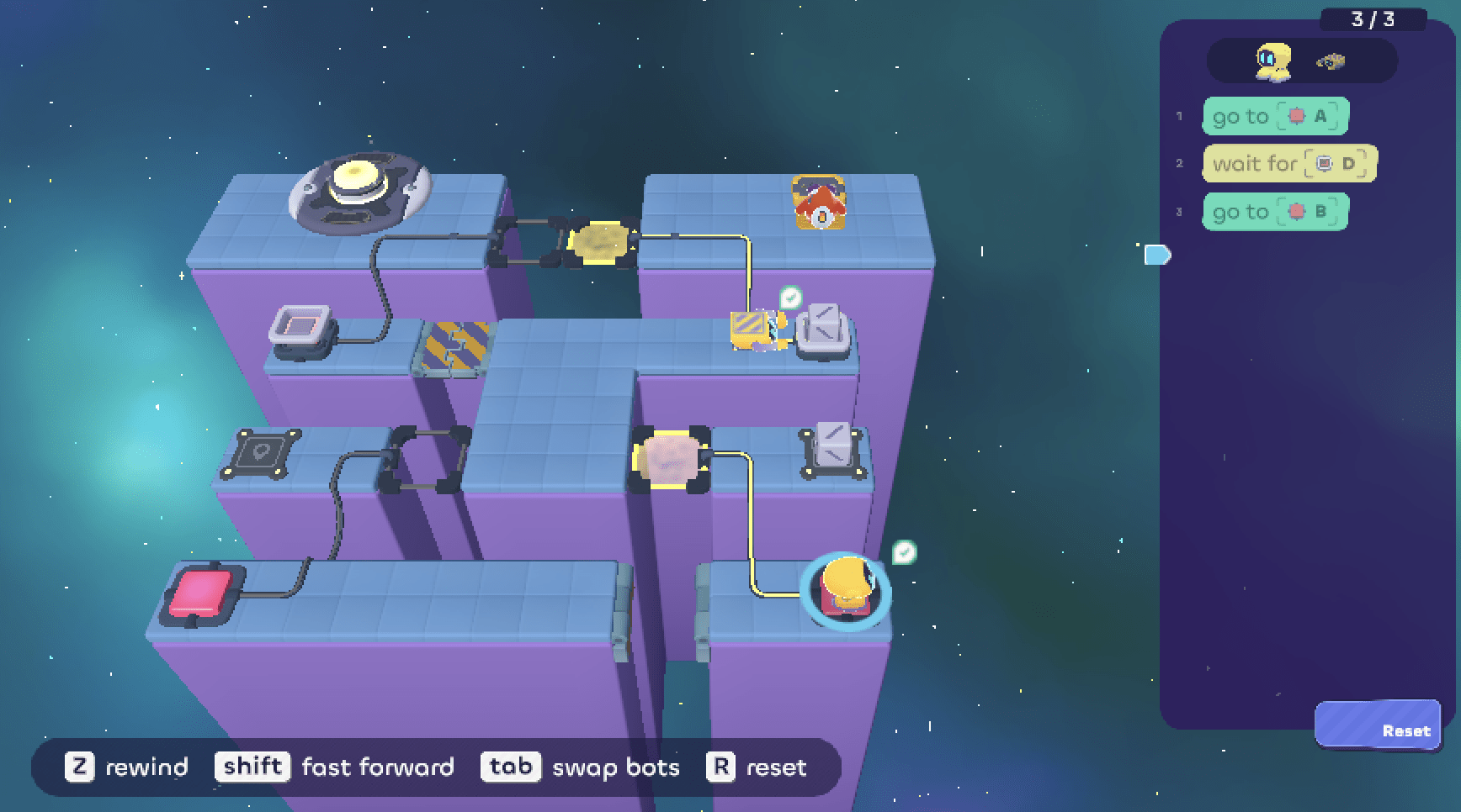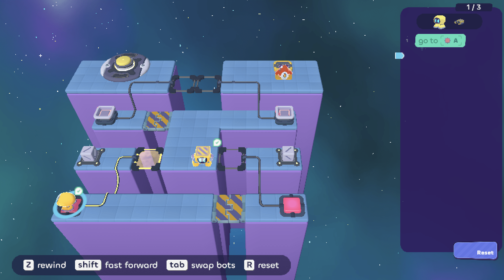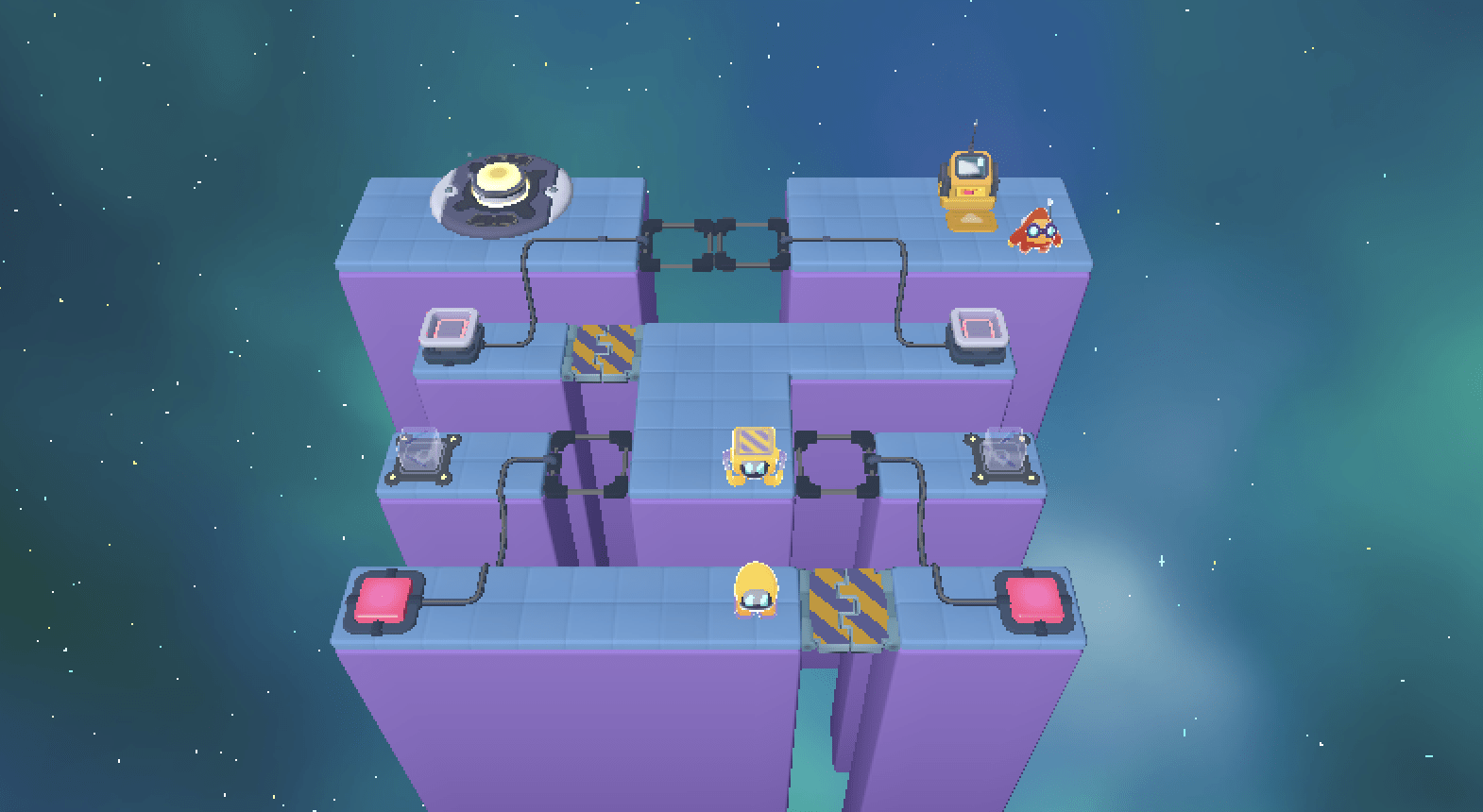 Since the bots need to help each other move around the puzzle, they'll need to take turns moving.