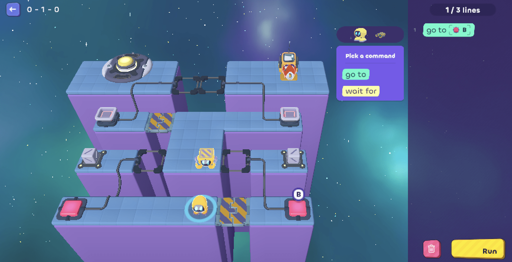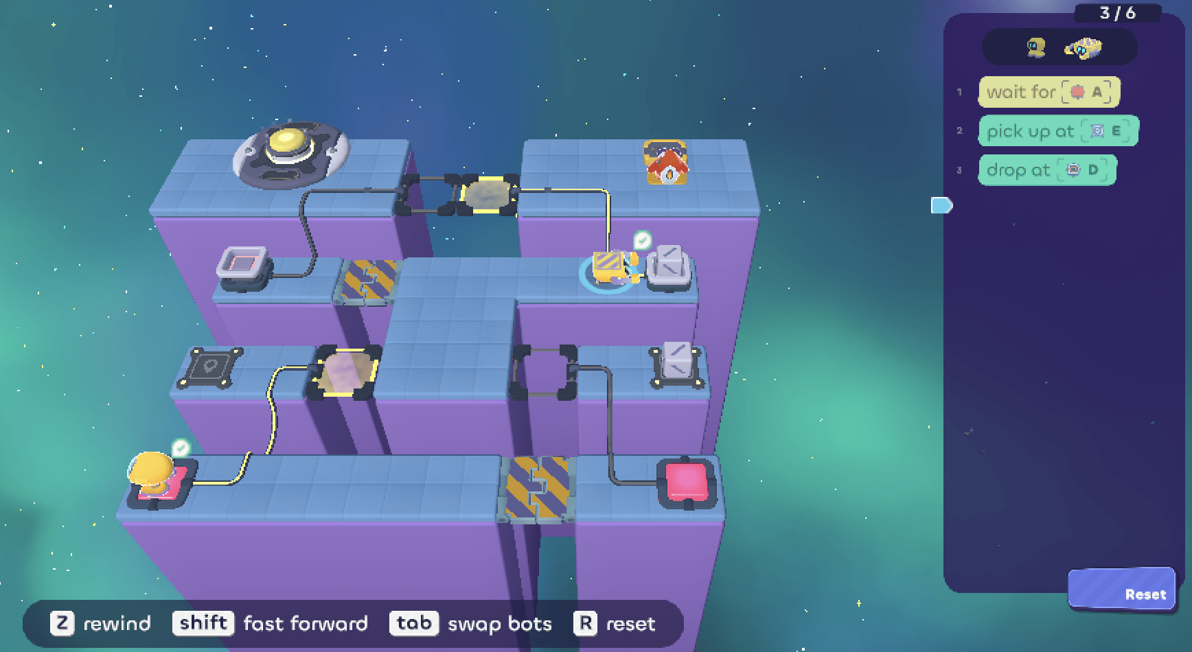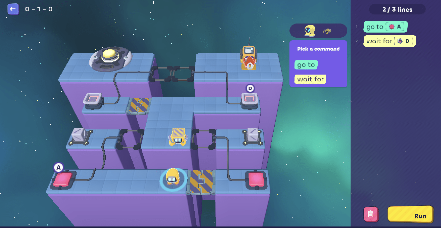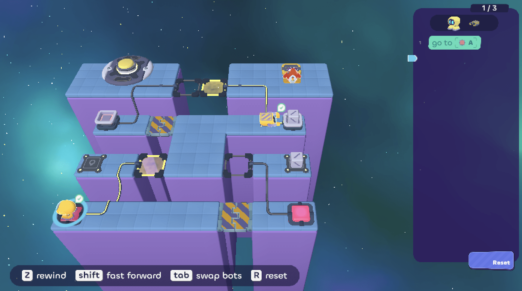 Since the bots need to help each other move around the puzzle, they'll need to take turns moving.