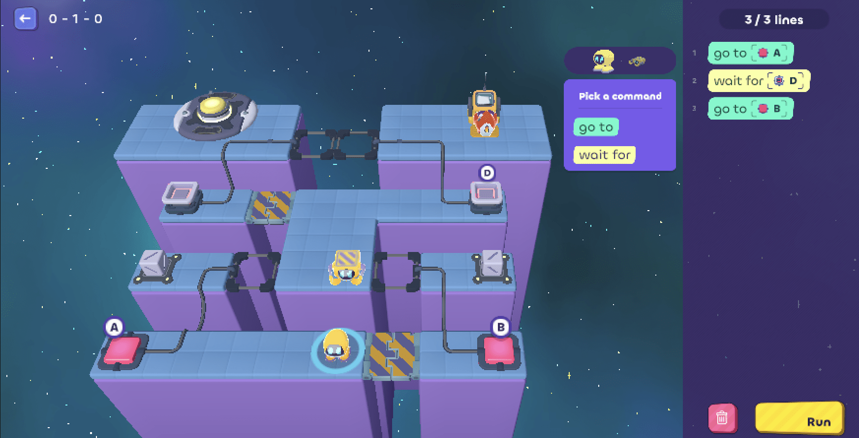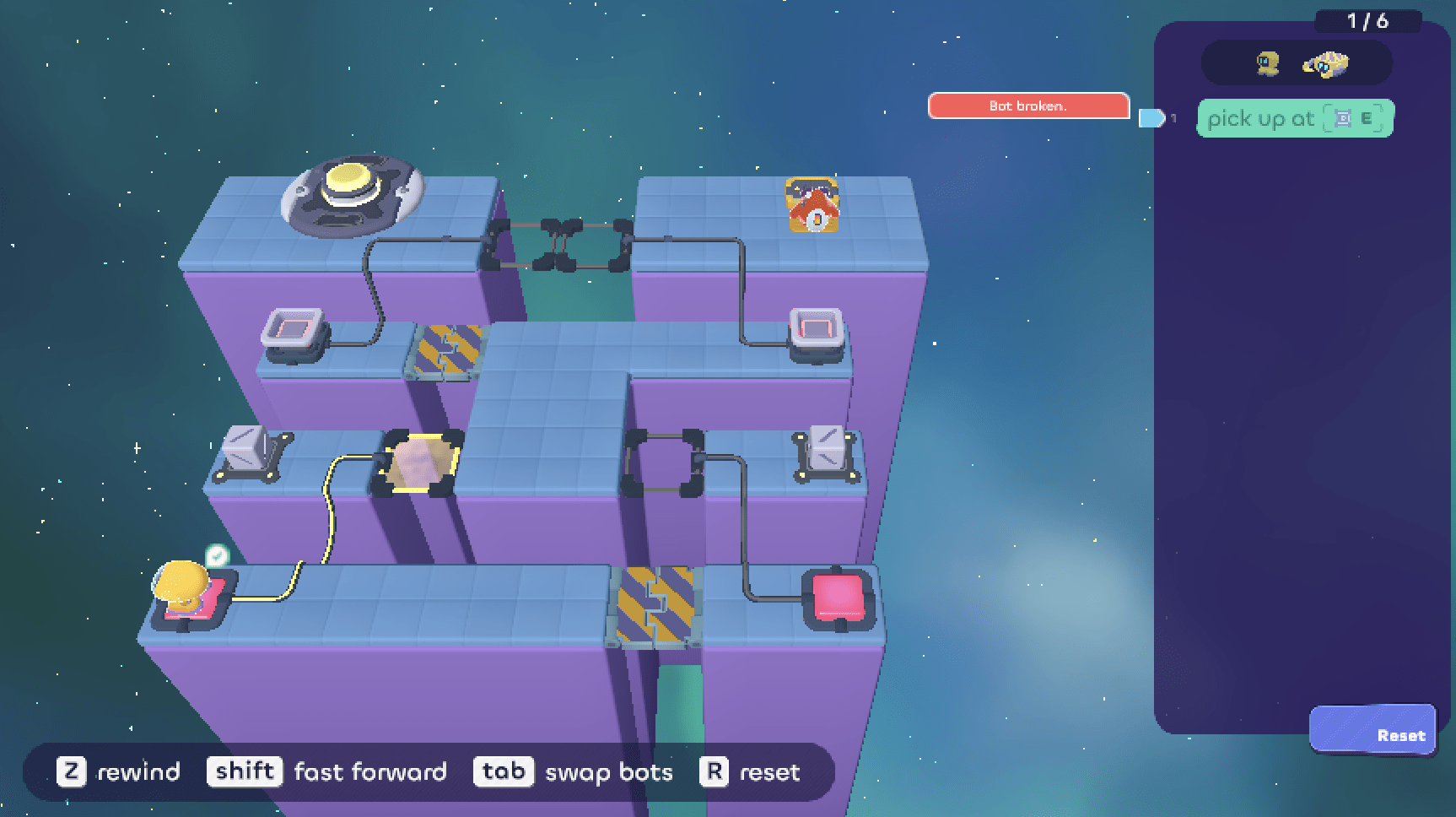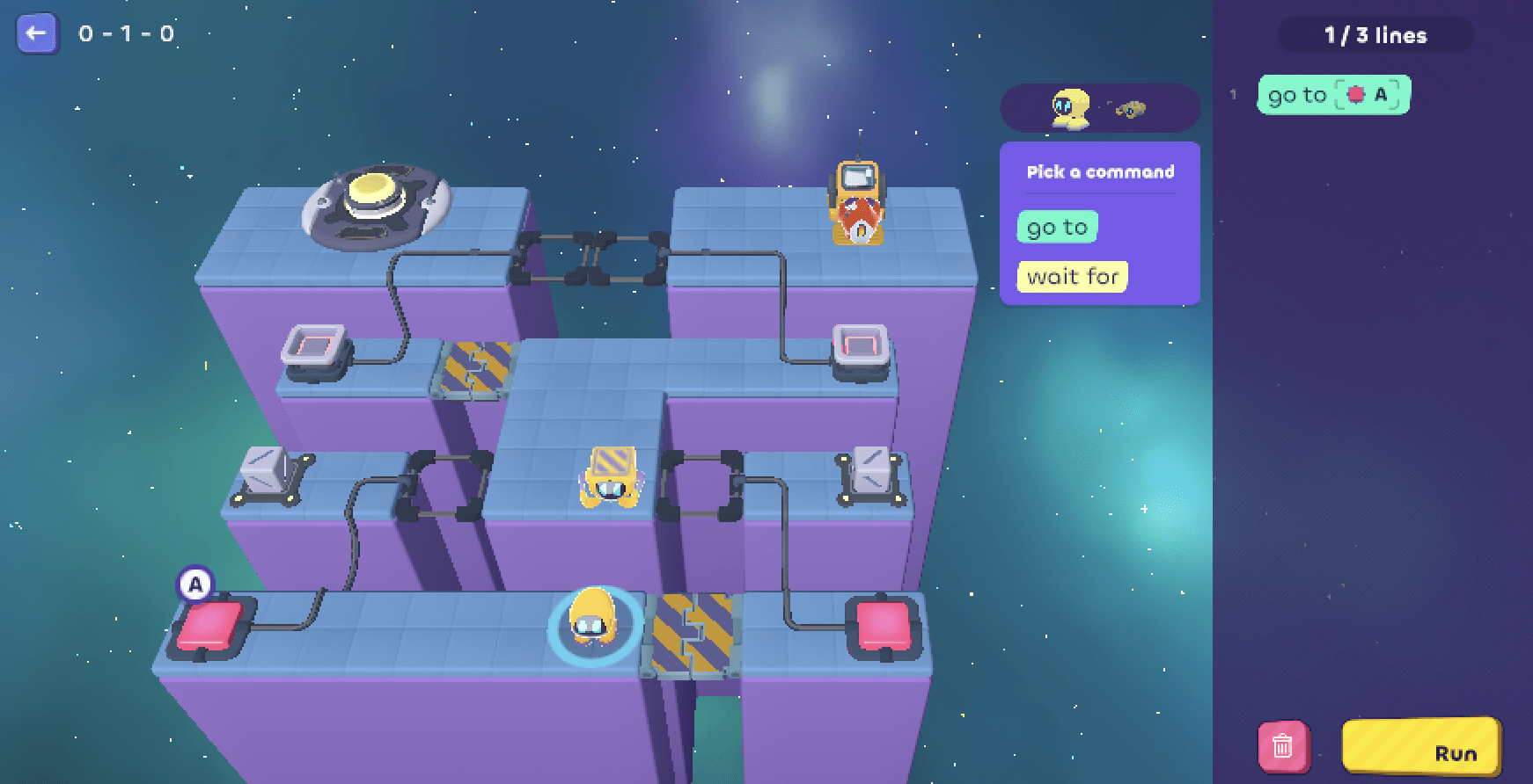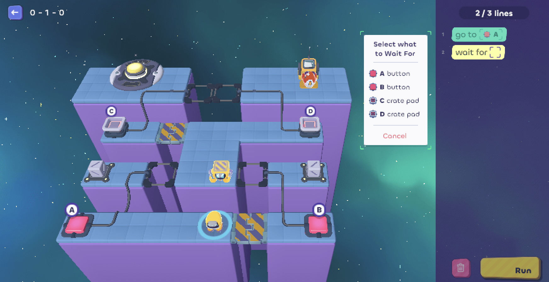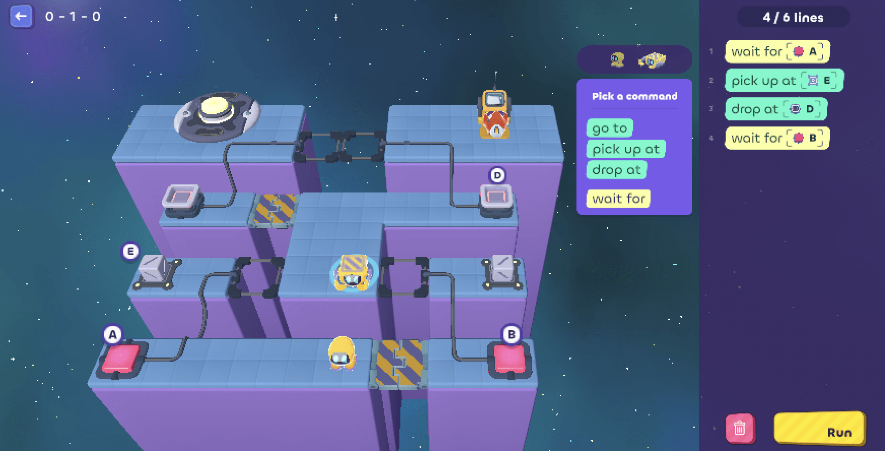 Since the bots need to help each other move around the puzzle, they'll need to take turns moving.