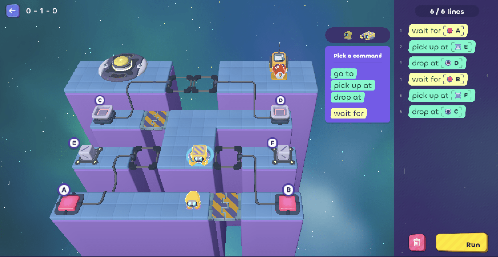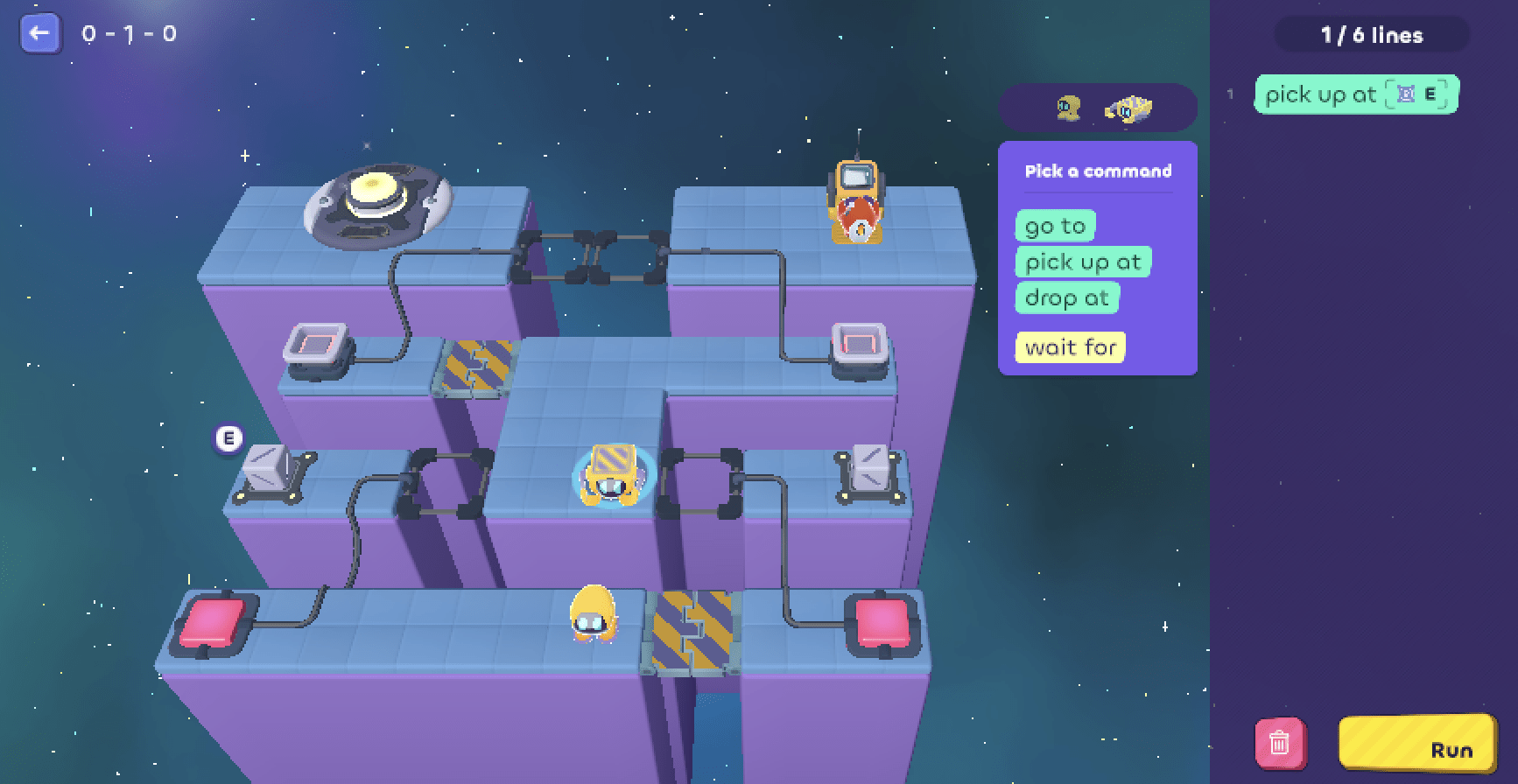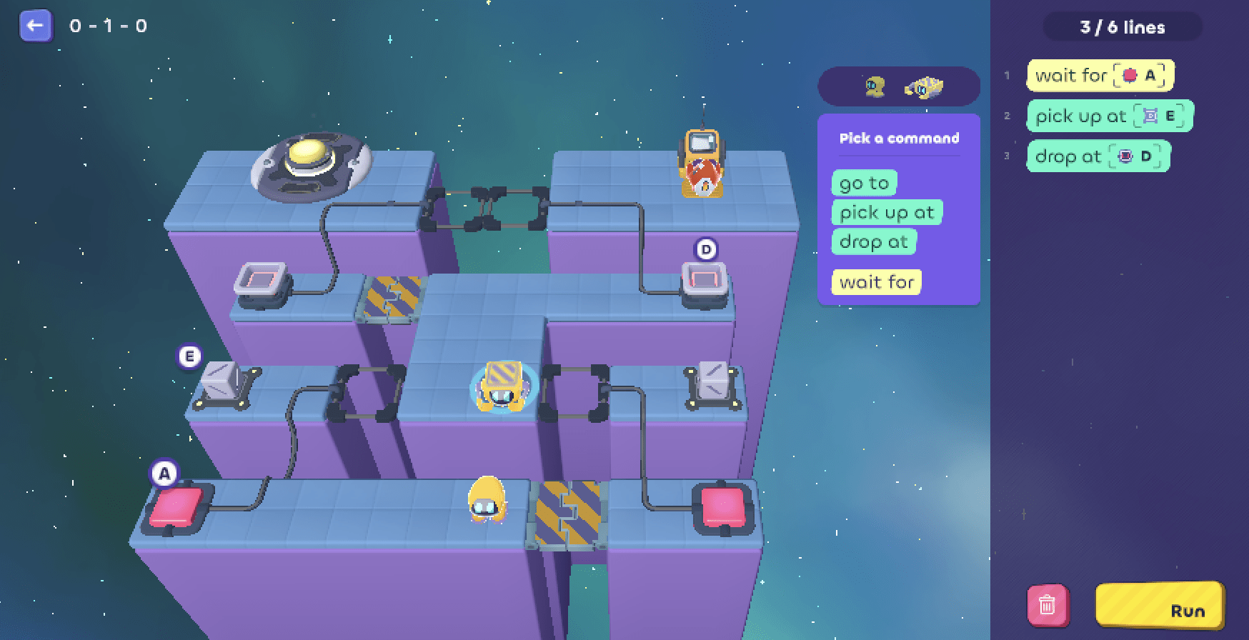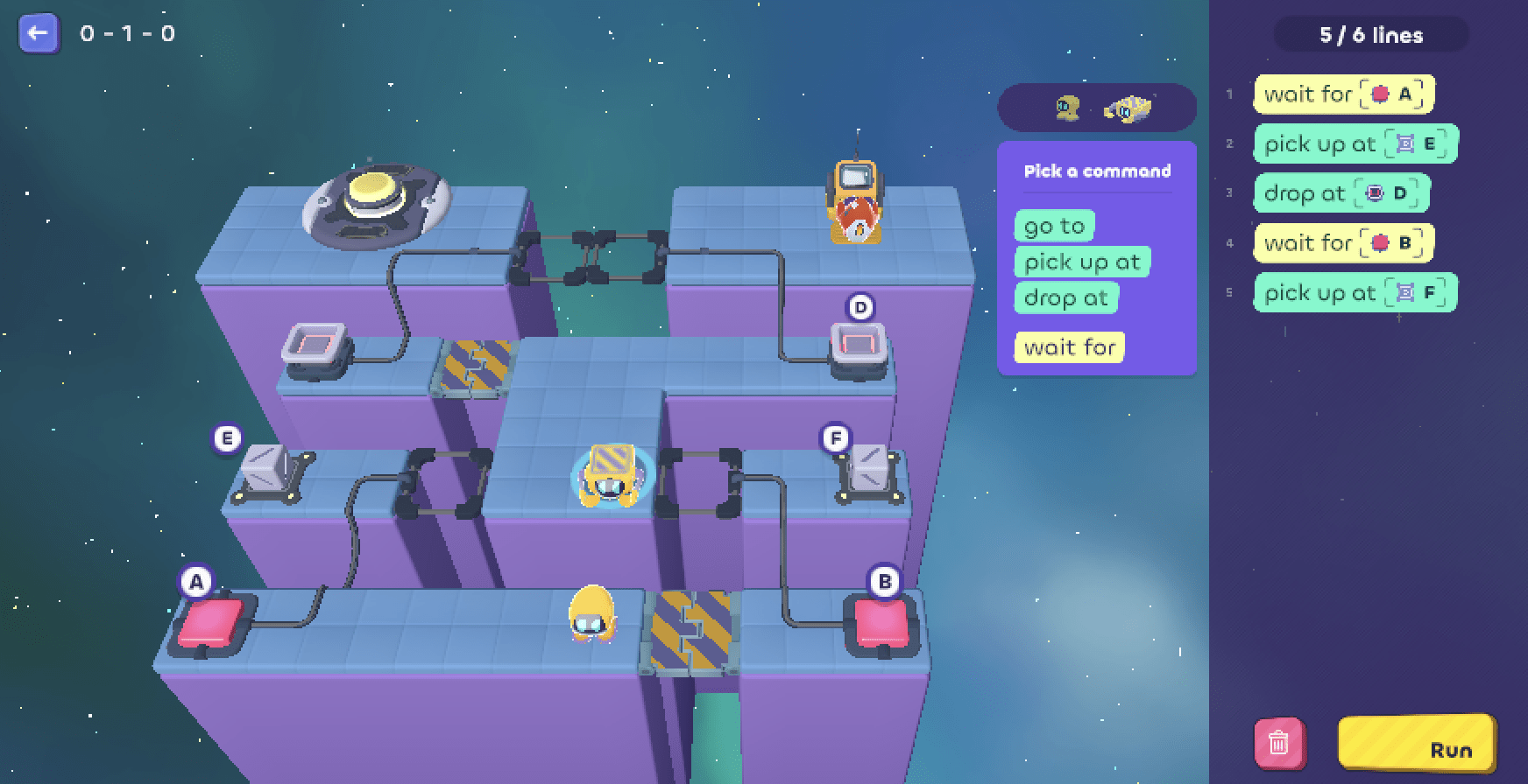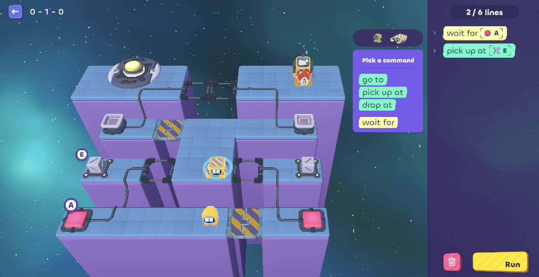 Since the bots need to help each other move around the puzzle, they'll need to take turns moving.