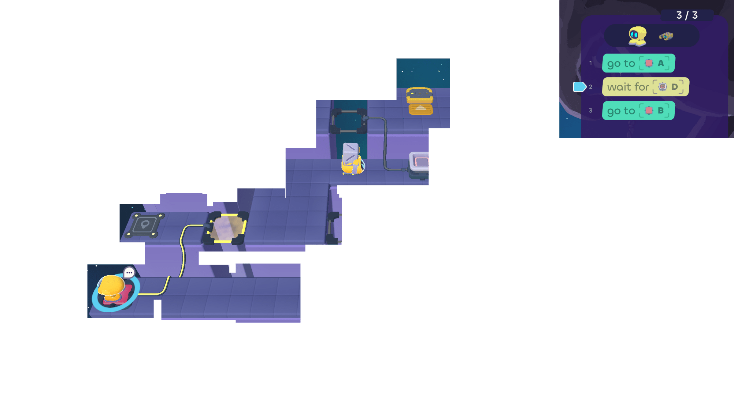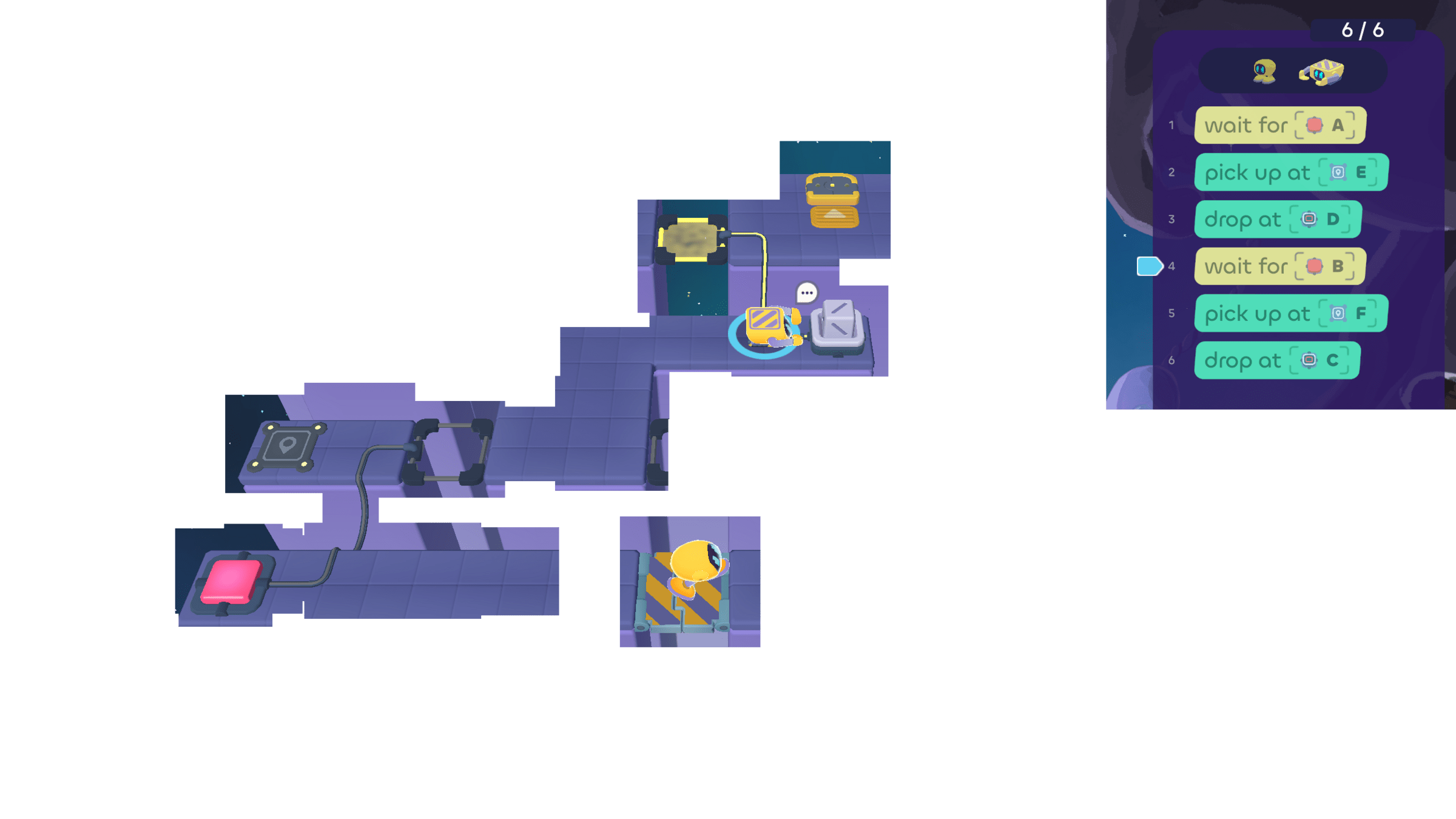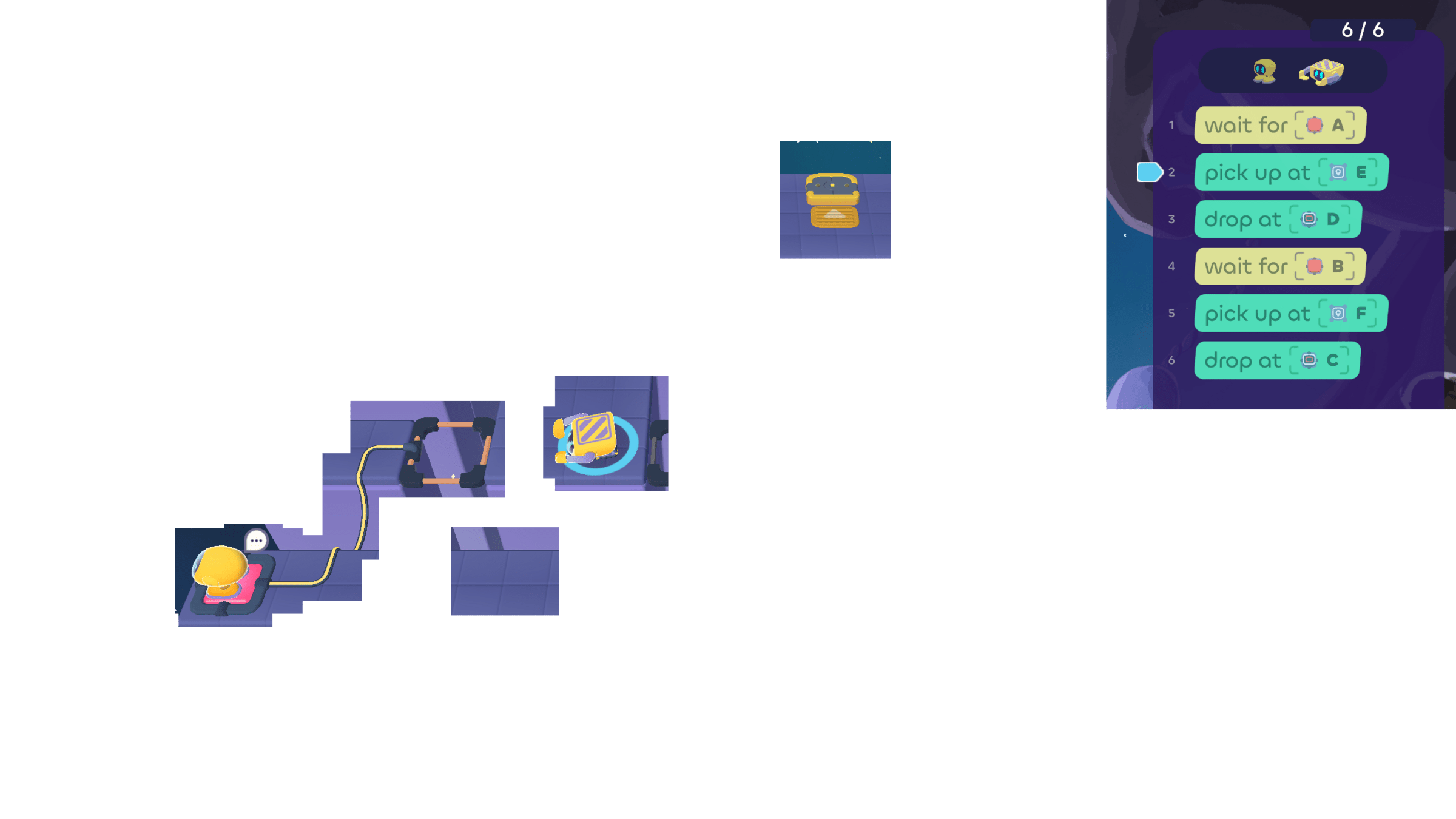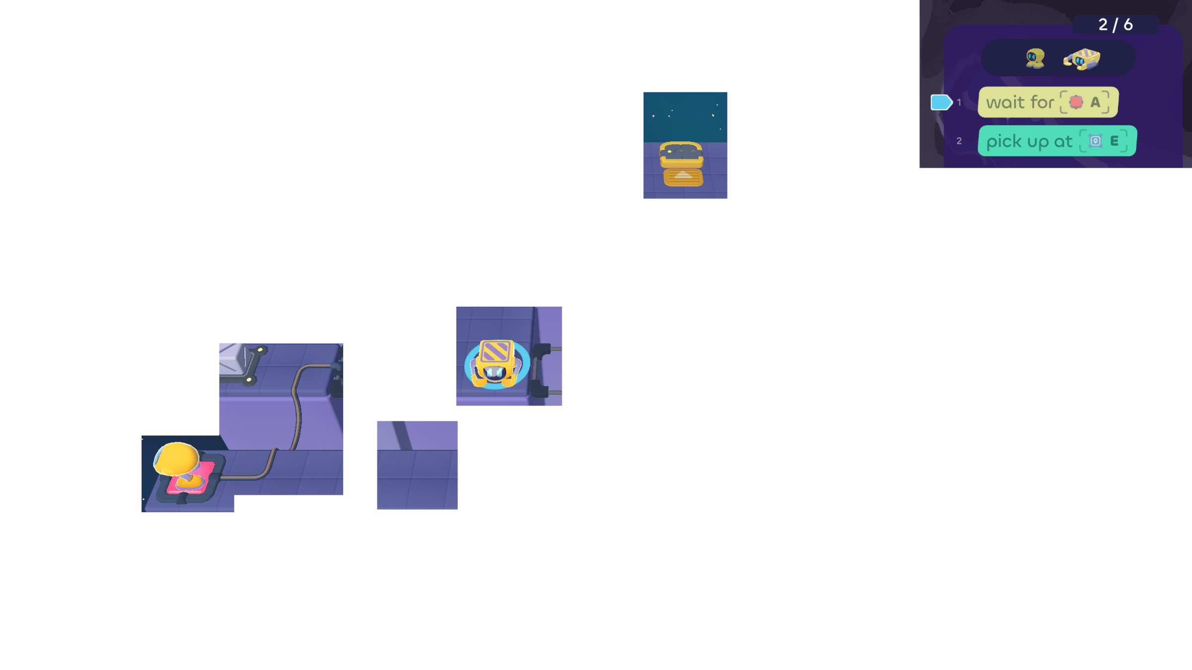 In today's puzzles, the bots need to take turns helping each other.