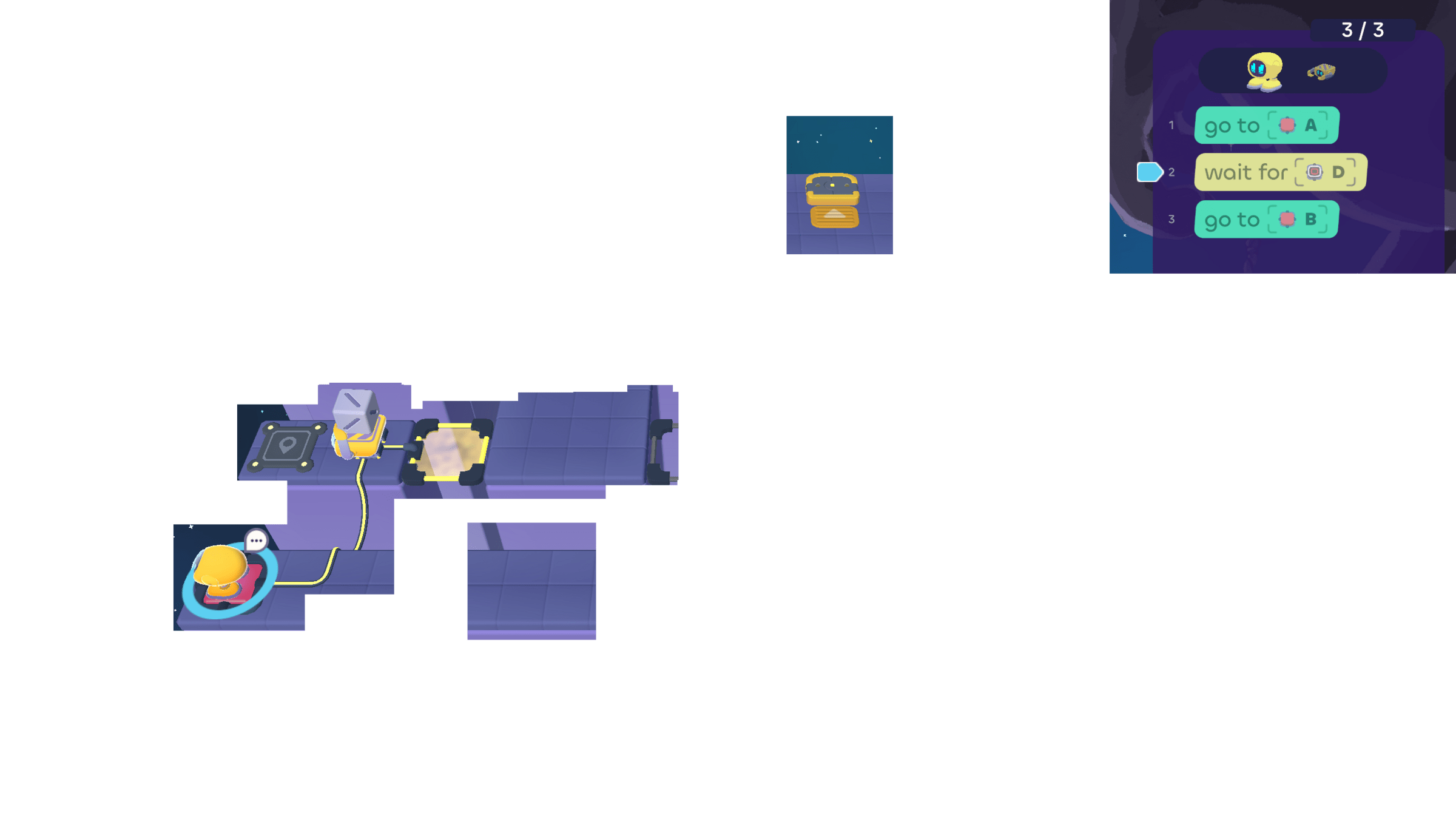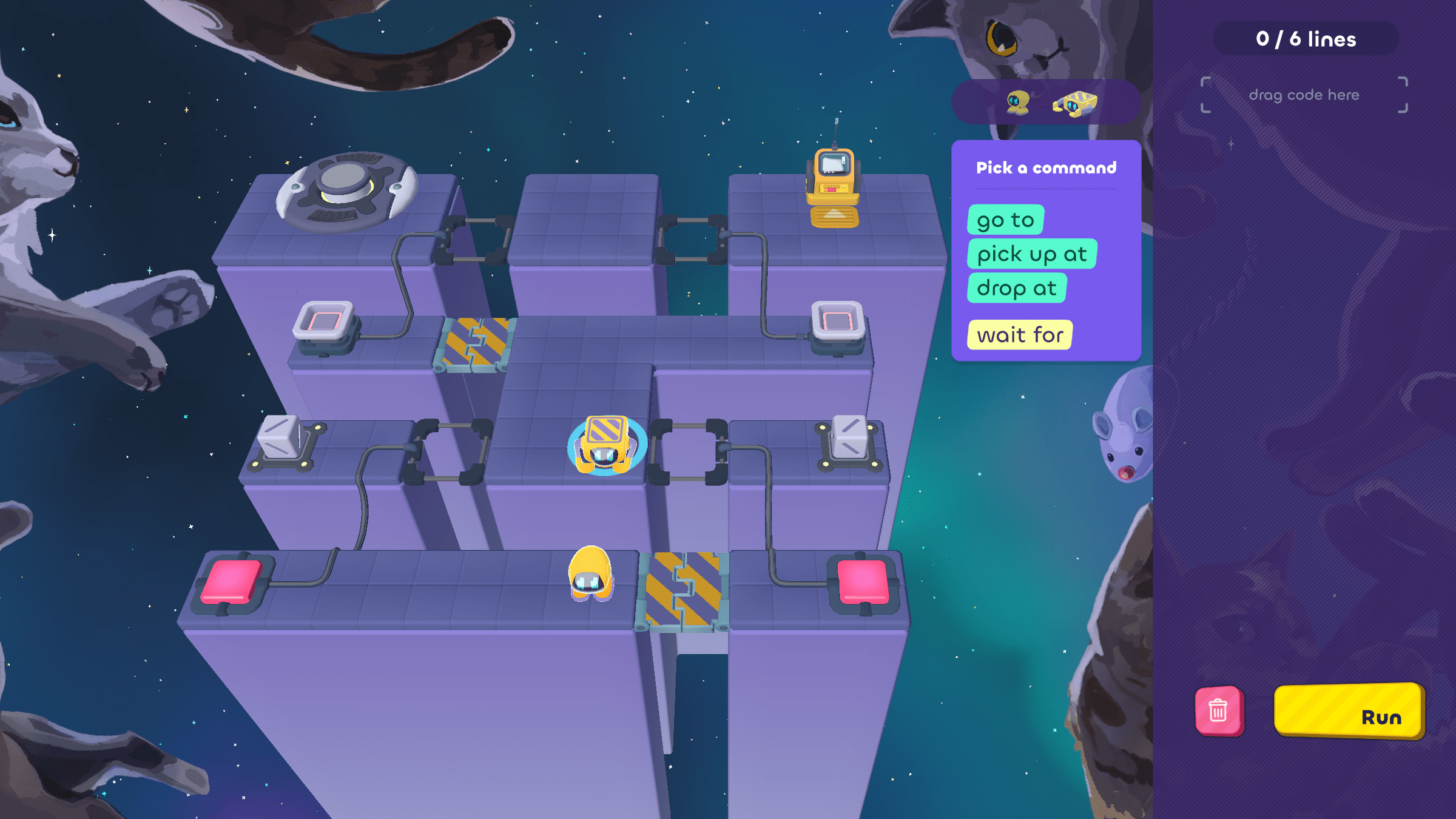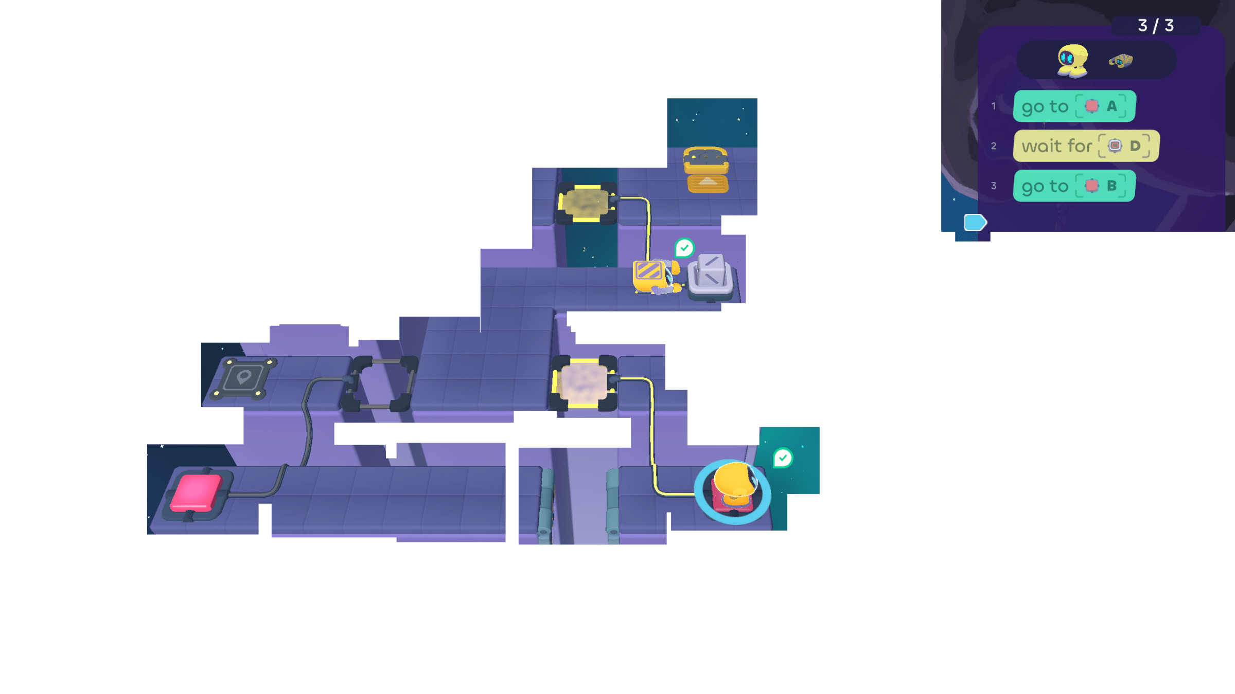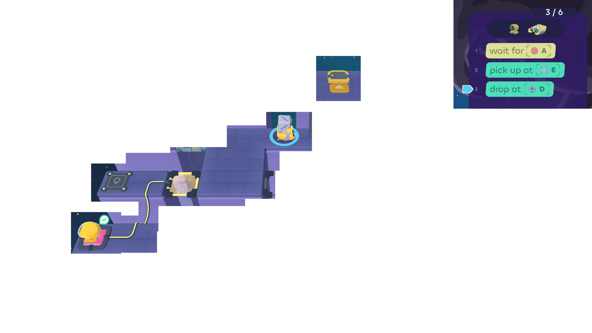 In today's puzzles, the bots need to take turns helping each other.