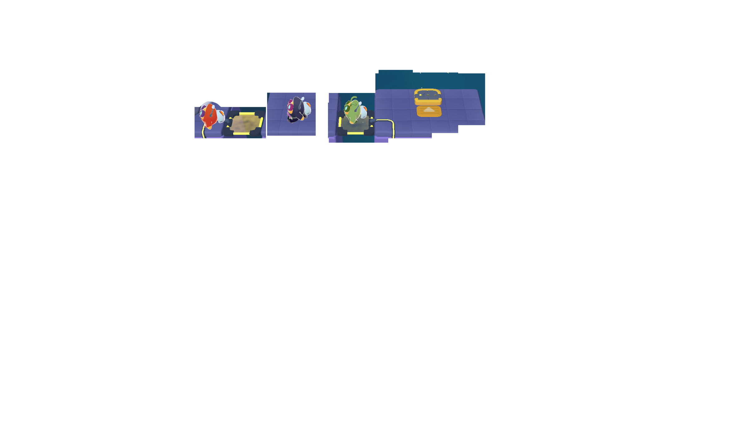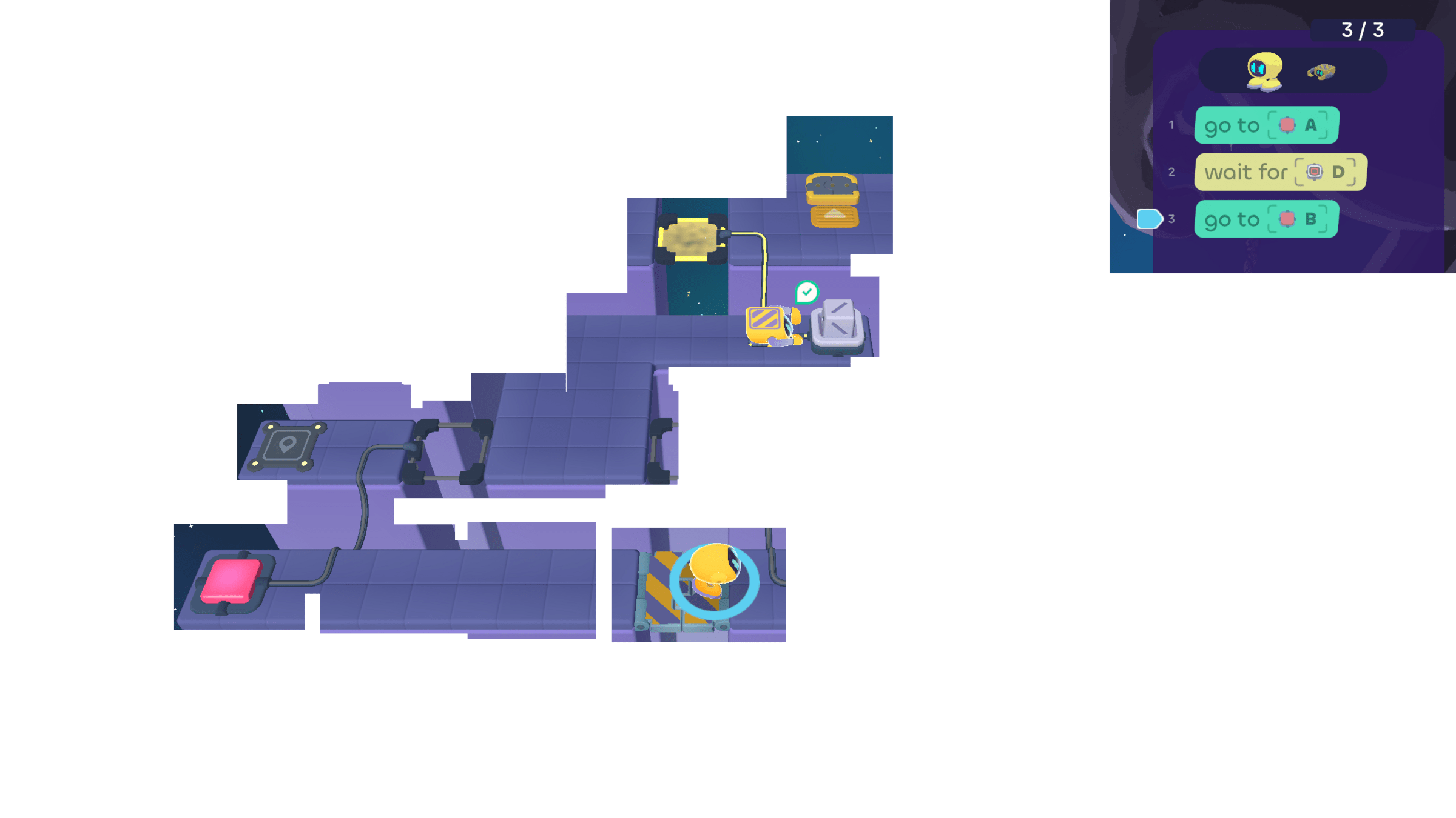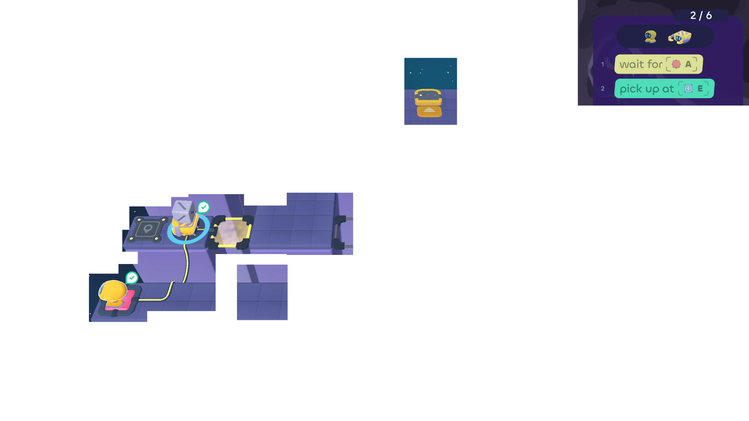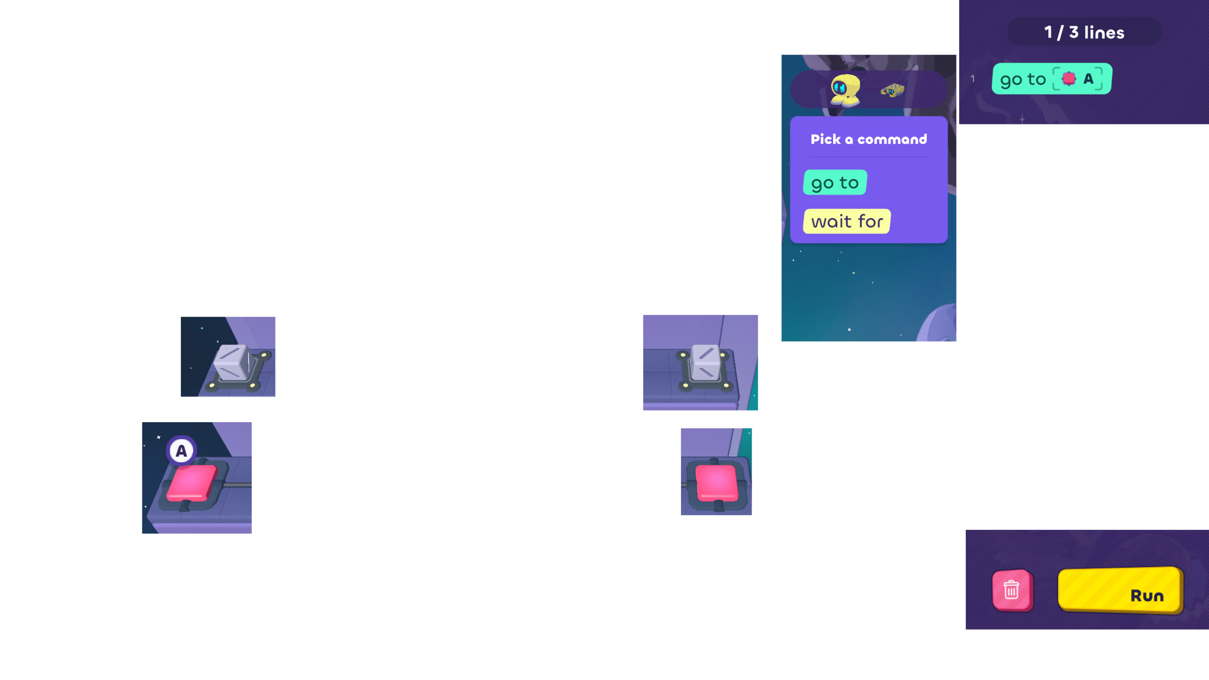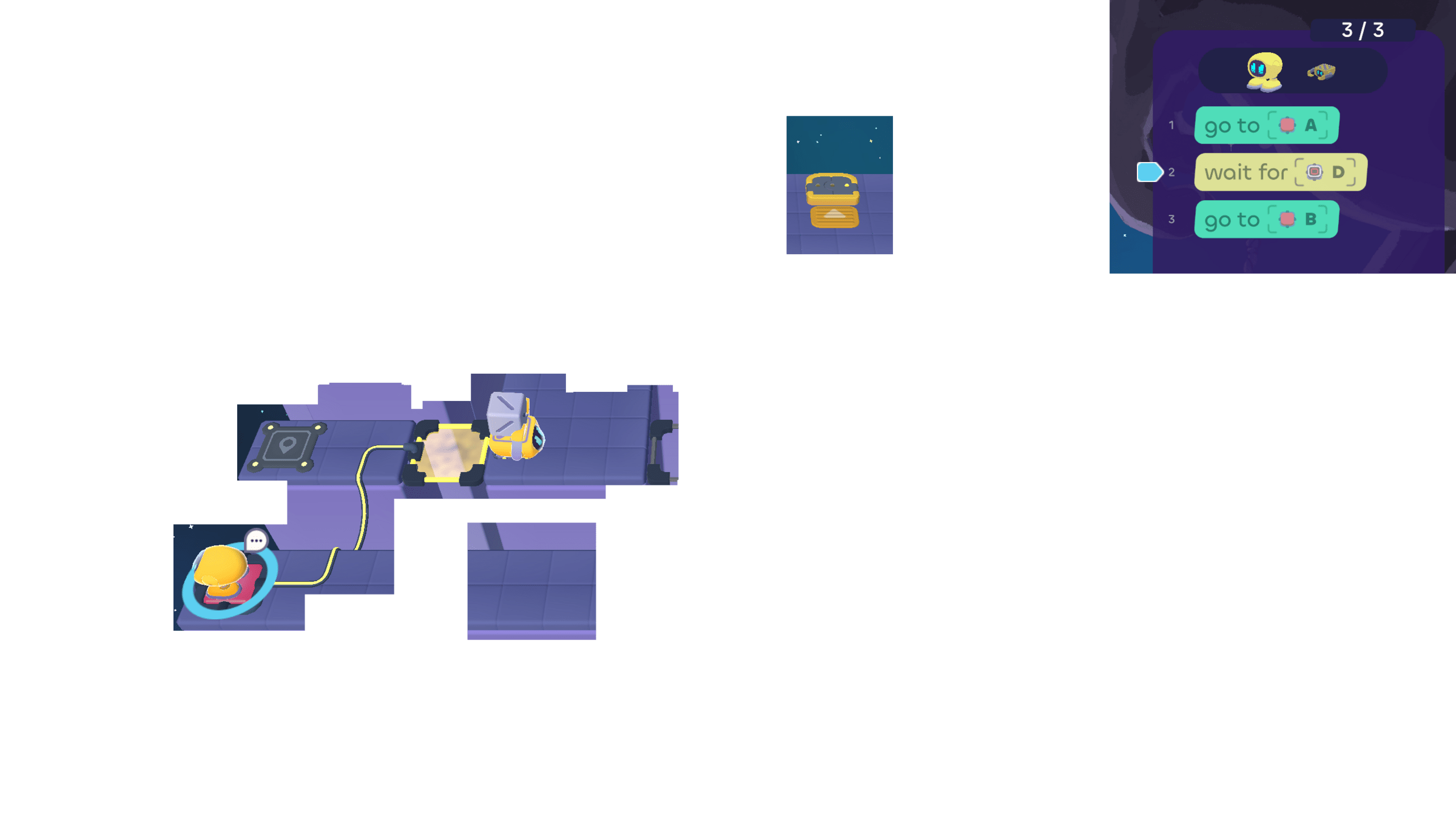 In today's puzzles, the bots need to take turns helping each other.