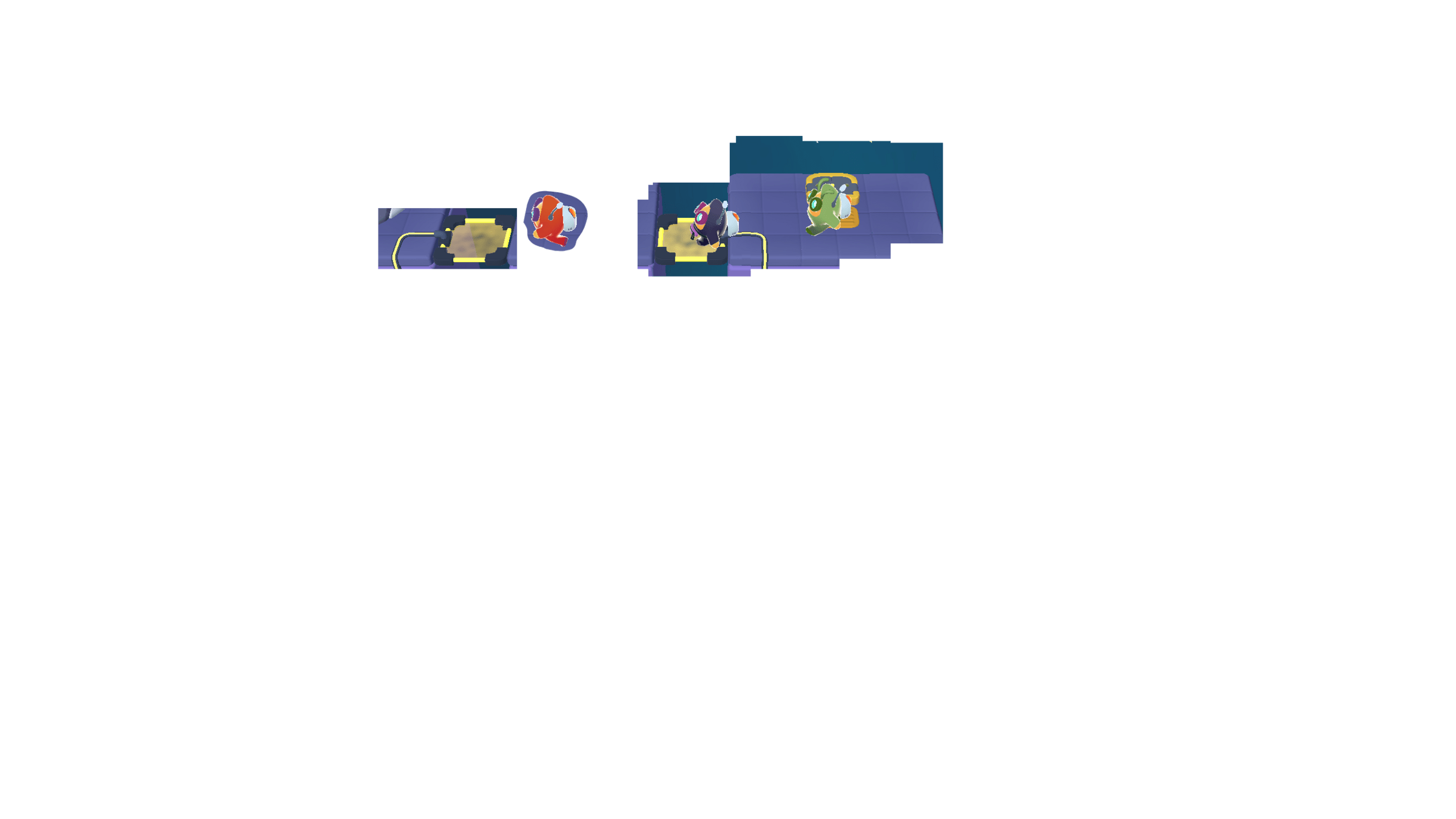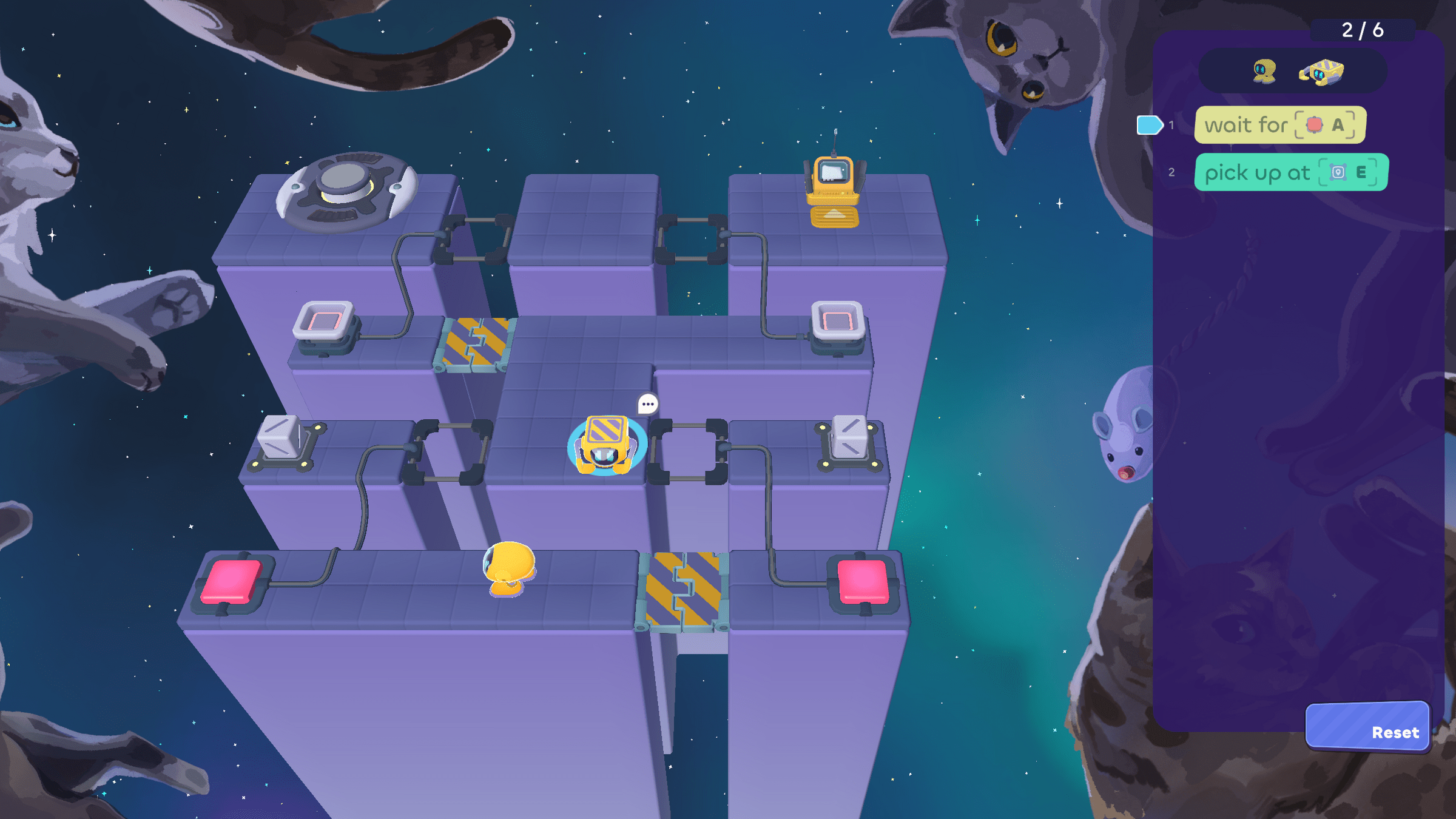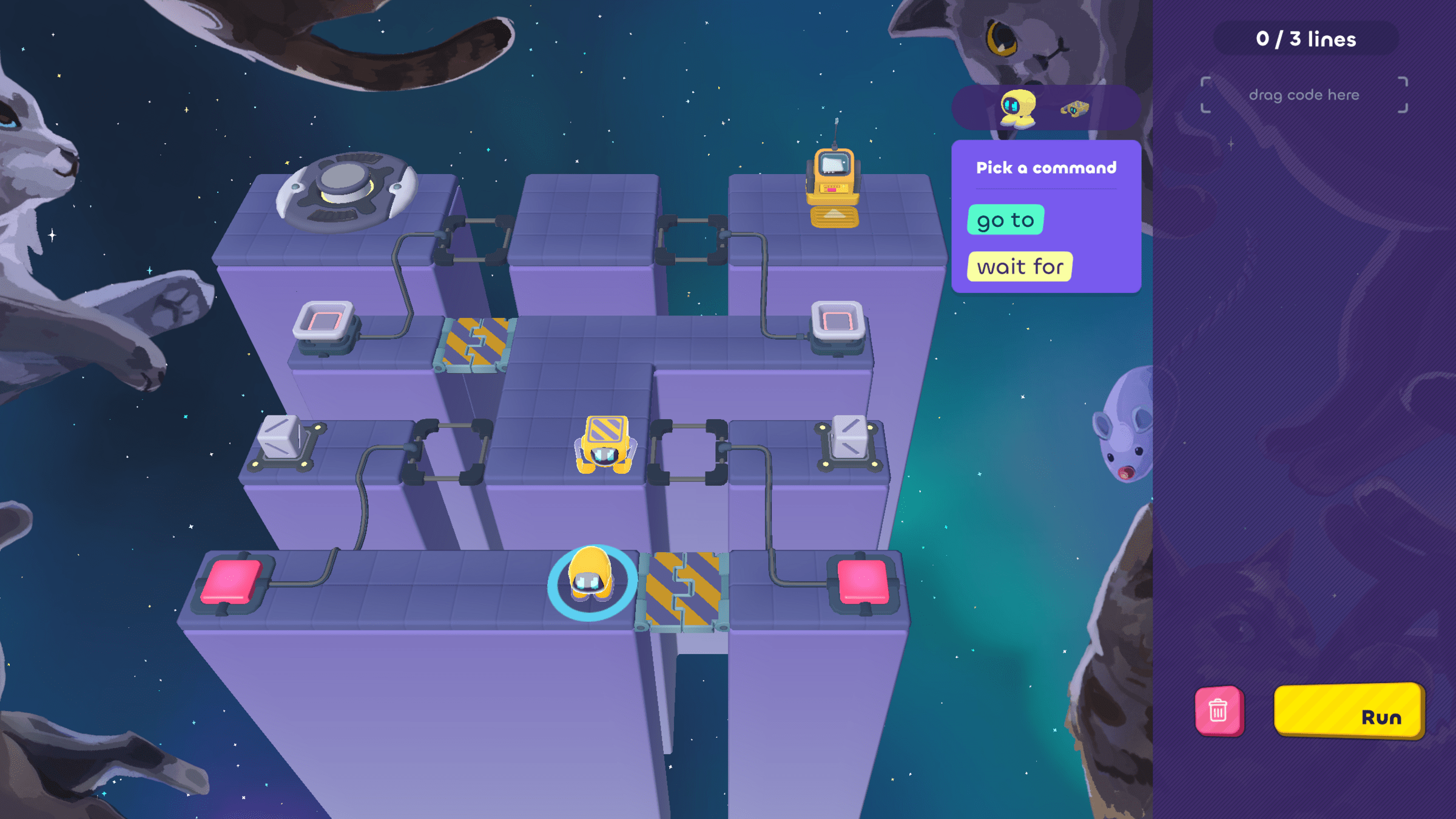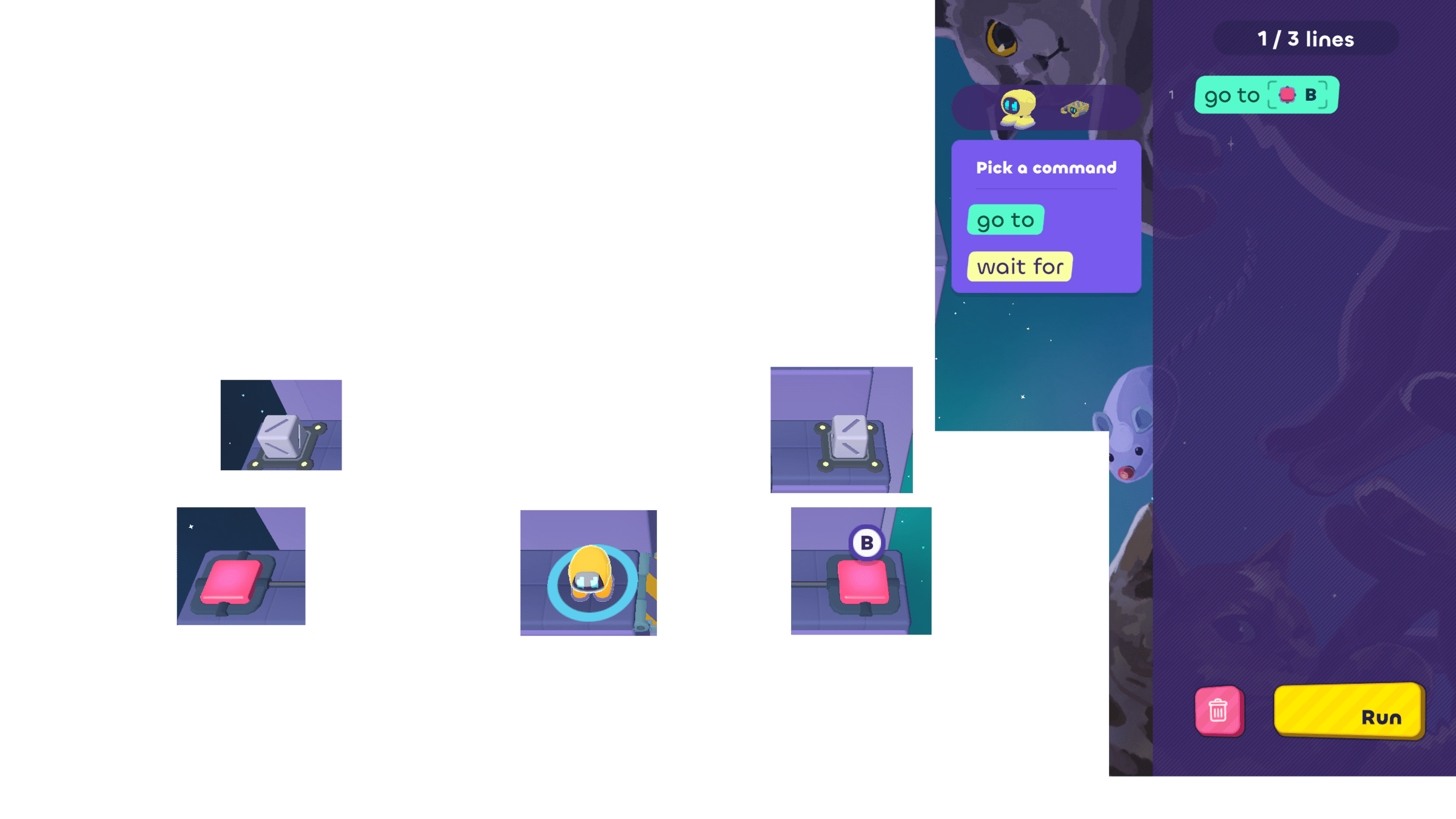 In today's puzzles, the bots need to take turns helping each other.