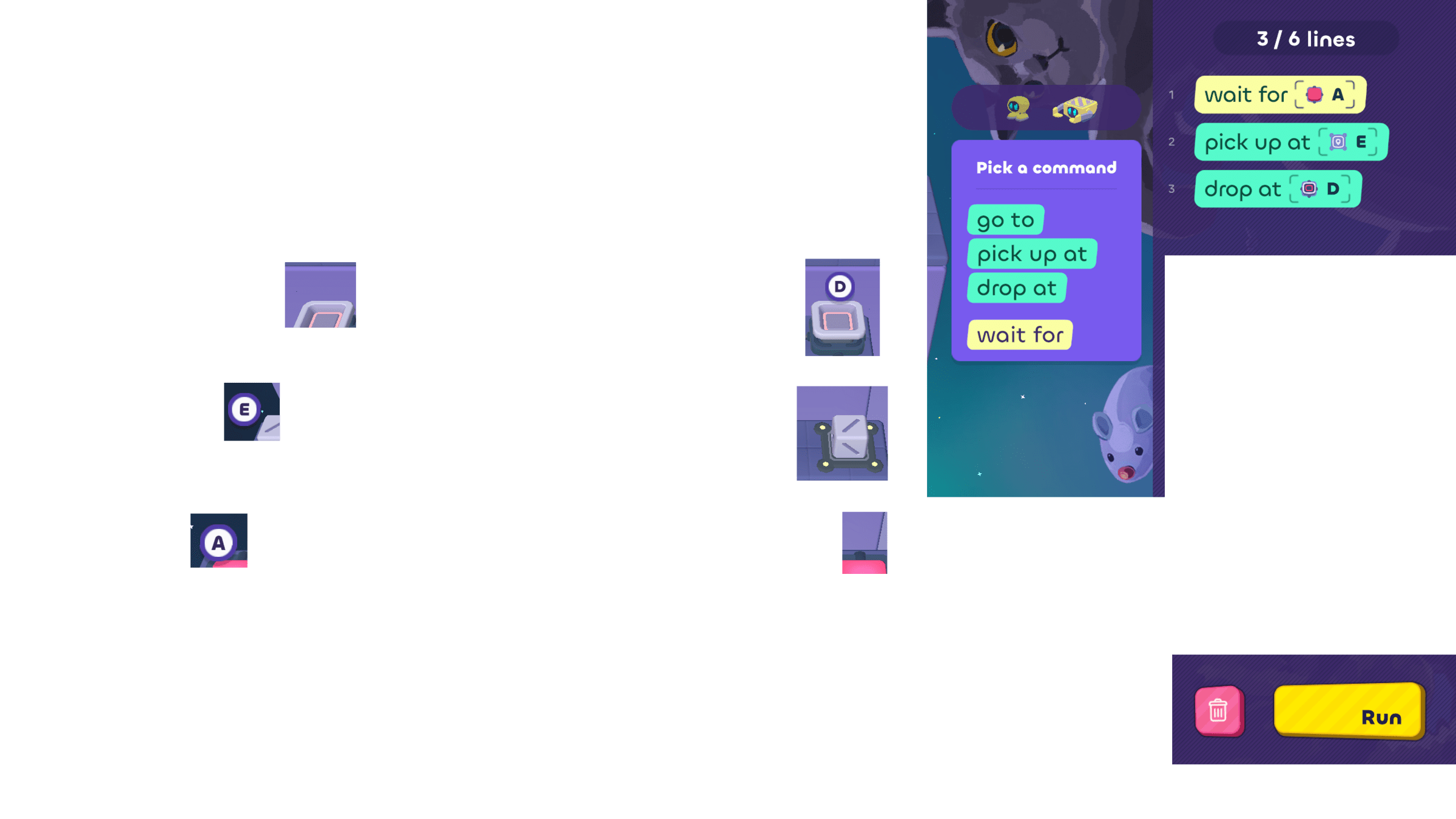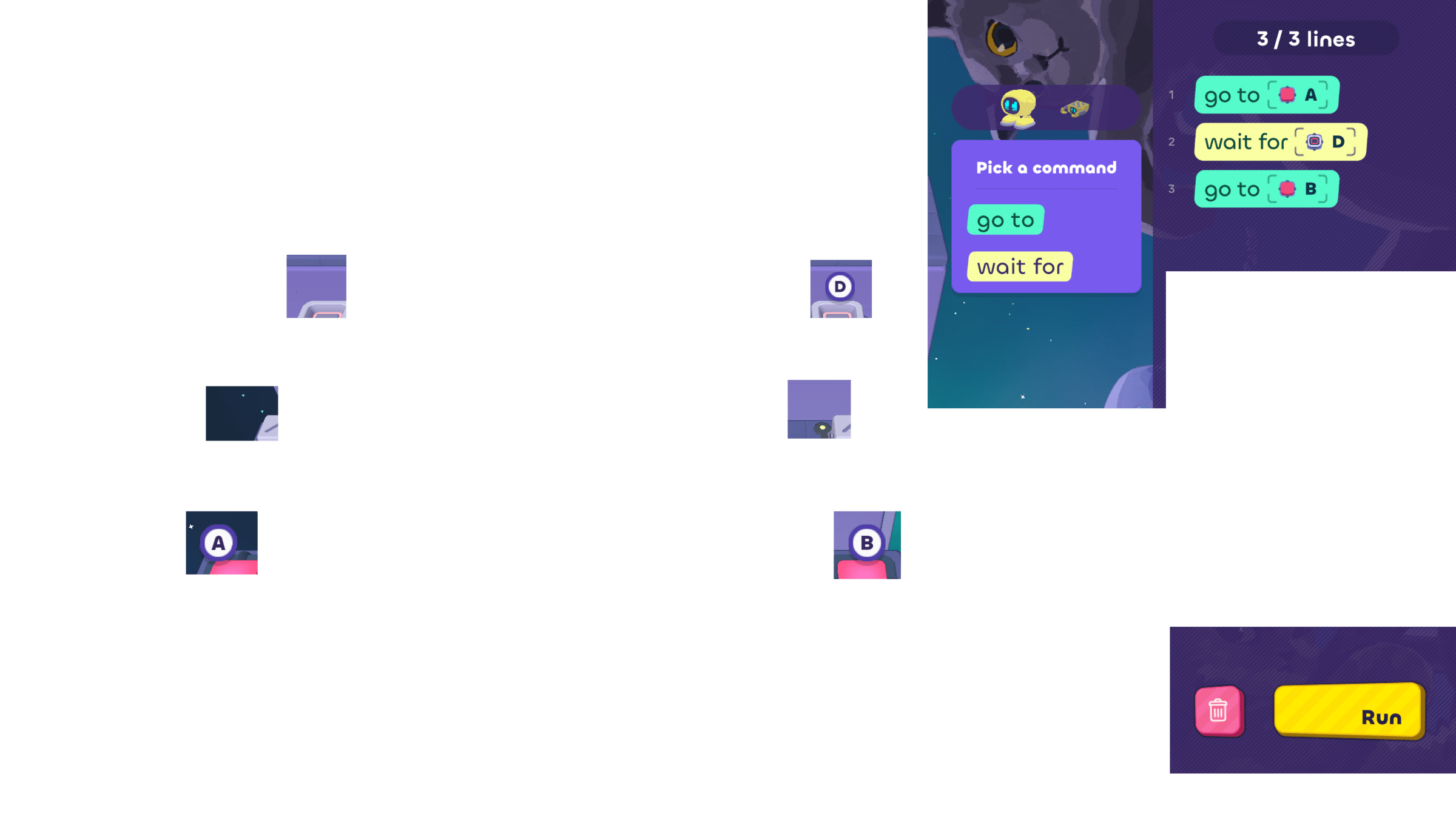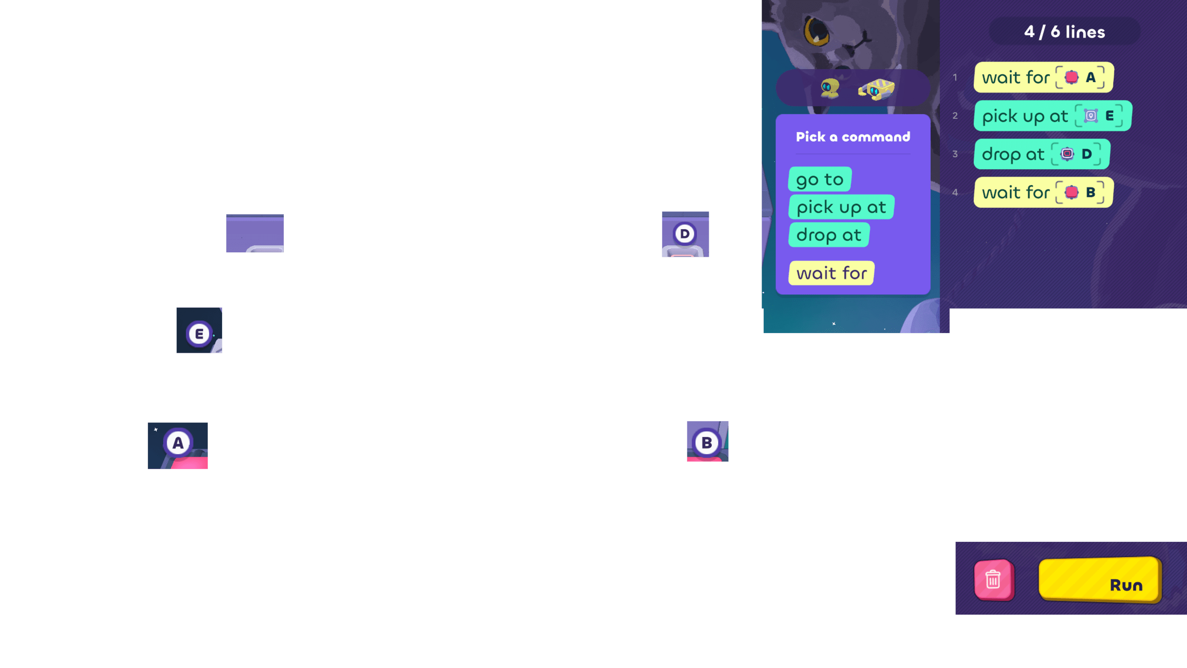 - Use process of elimination to decide which bot needs to move, and write some code for it.