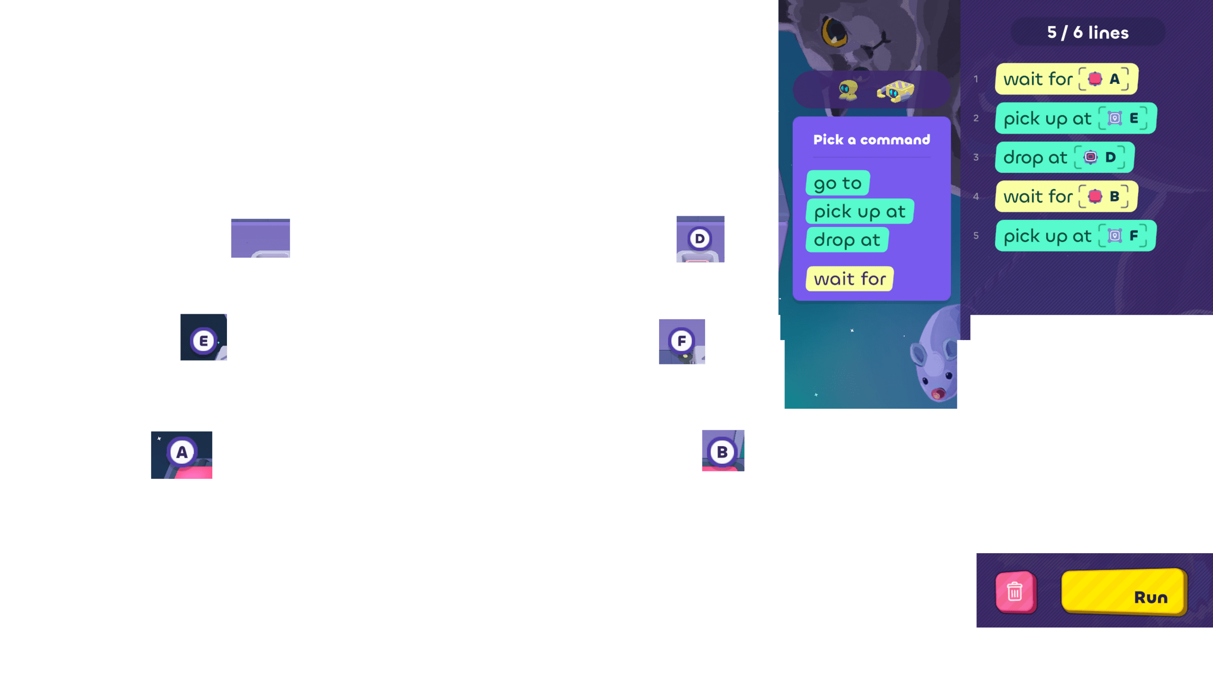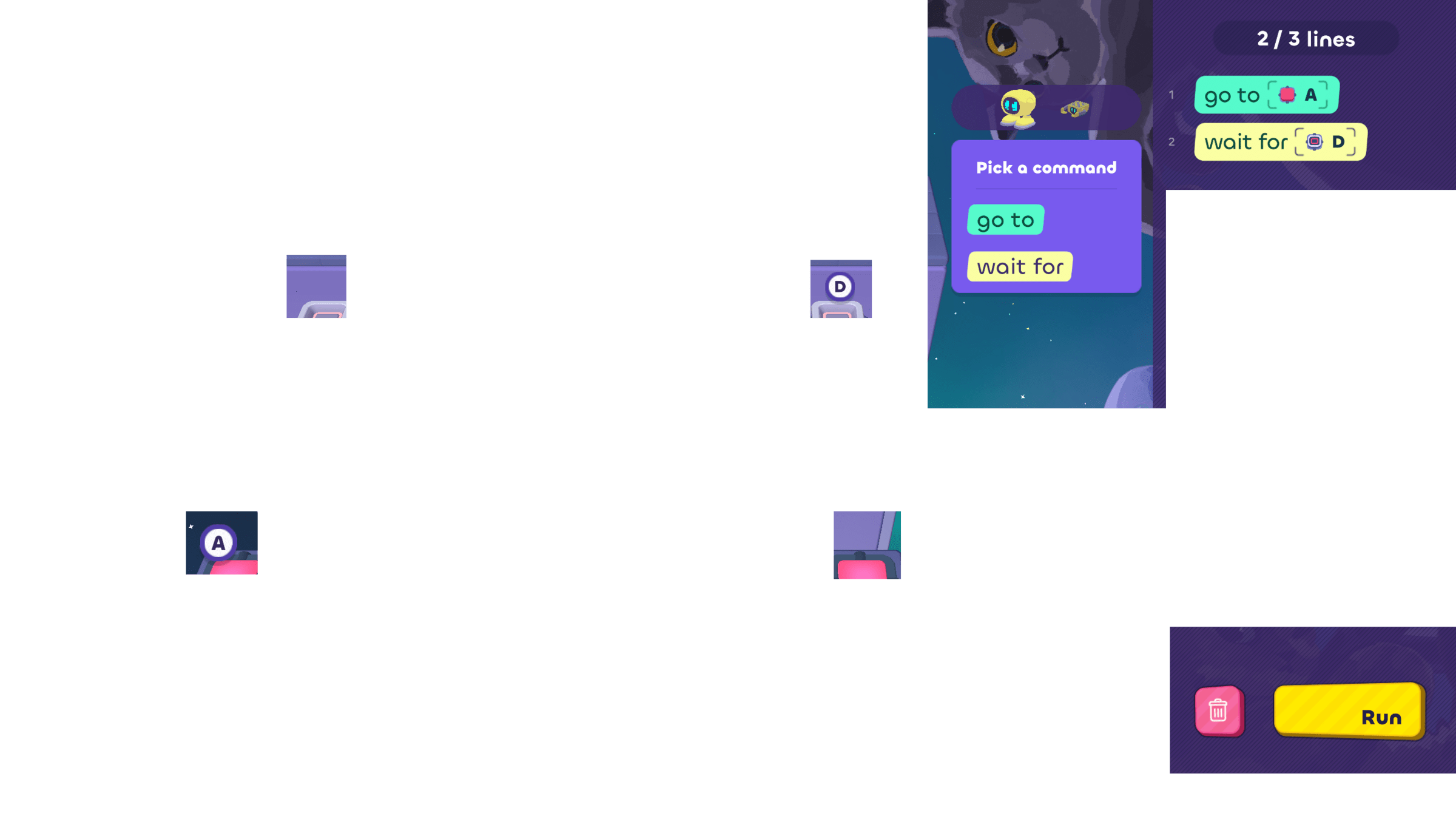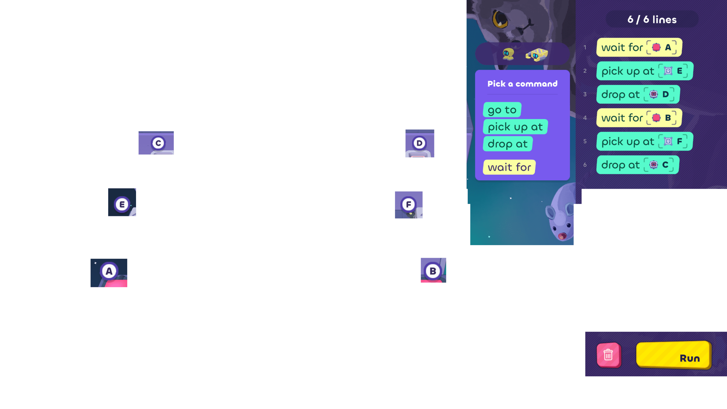 - Use process of elimination to decide which bot needs to move, and write some code for it.