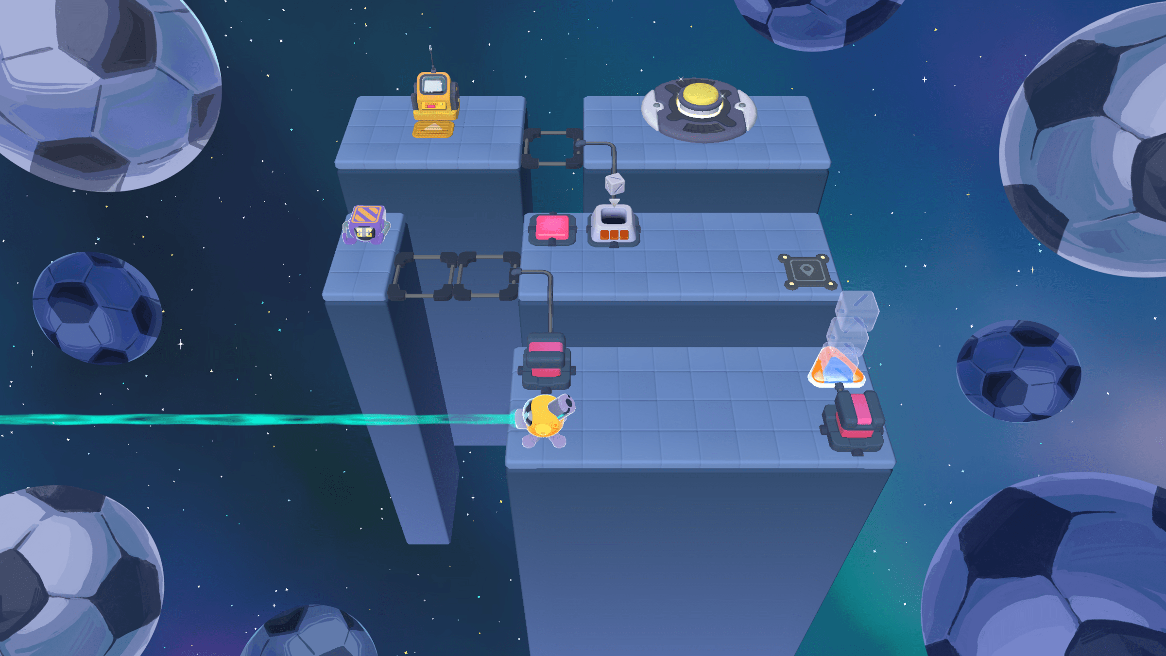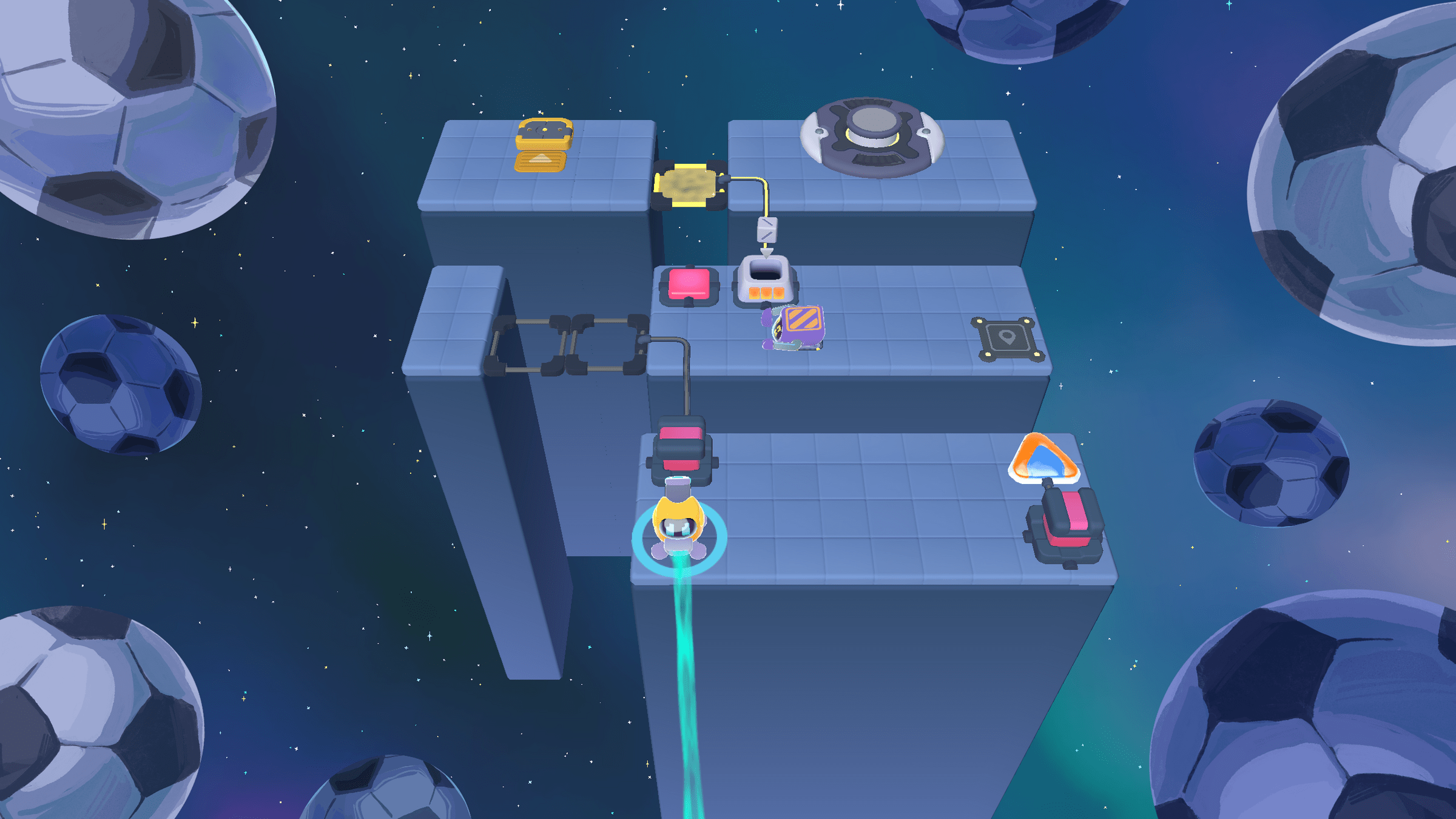 All 3 cubes got launched, and the Grabber moved them all to the counter. That turned on the bridge to the Starpad!