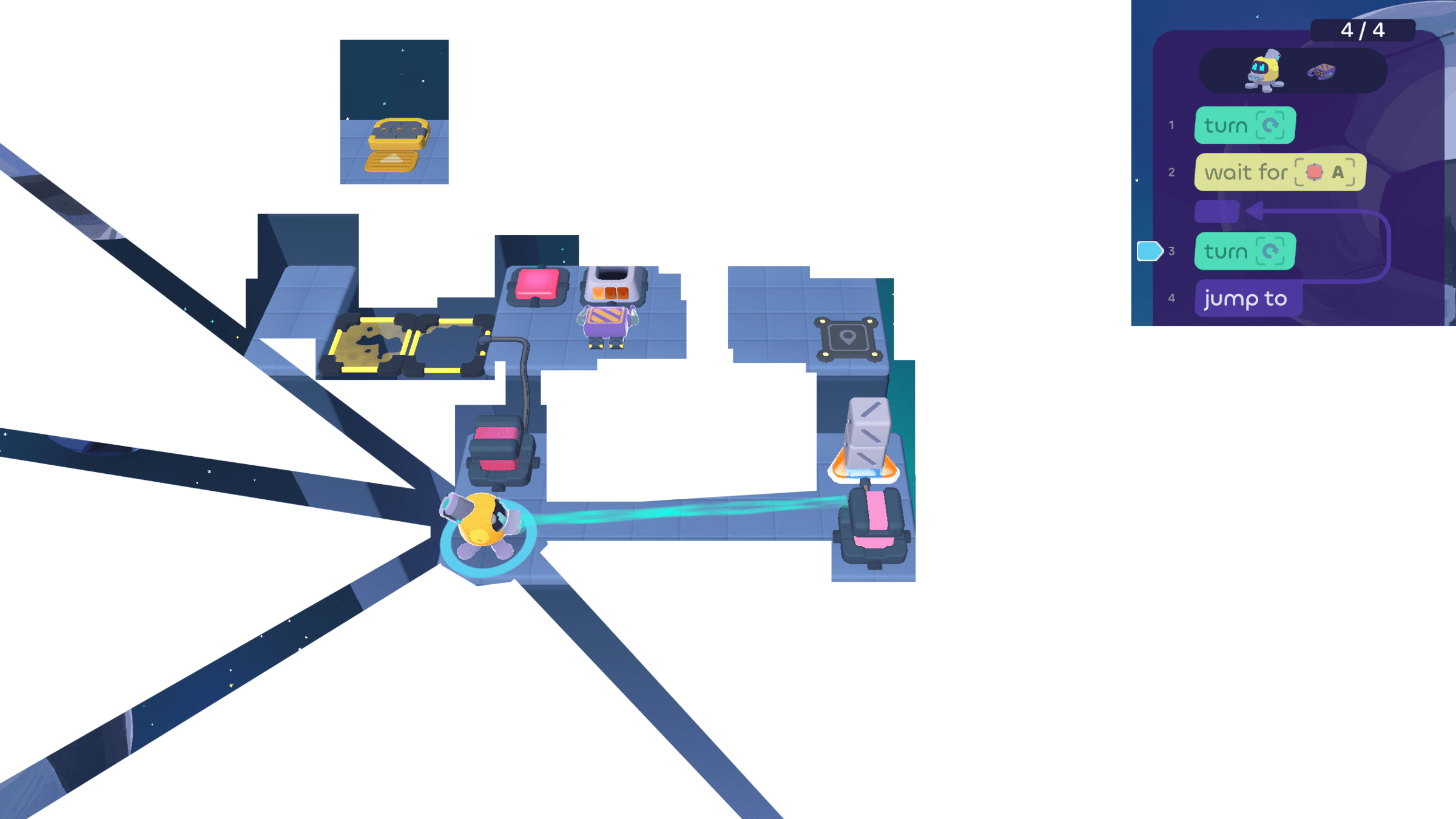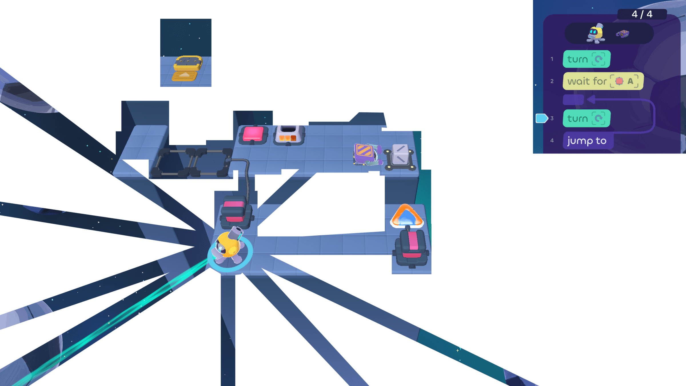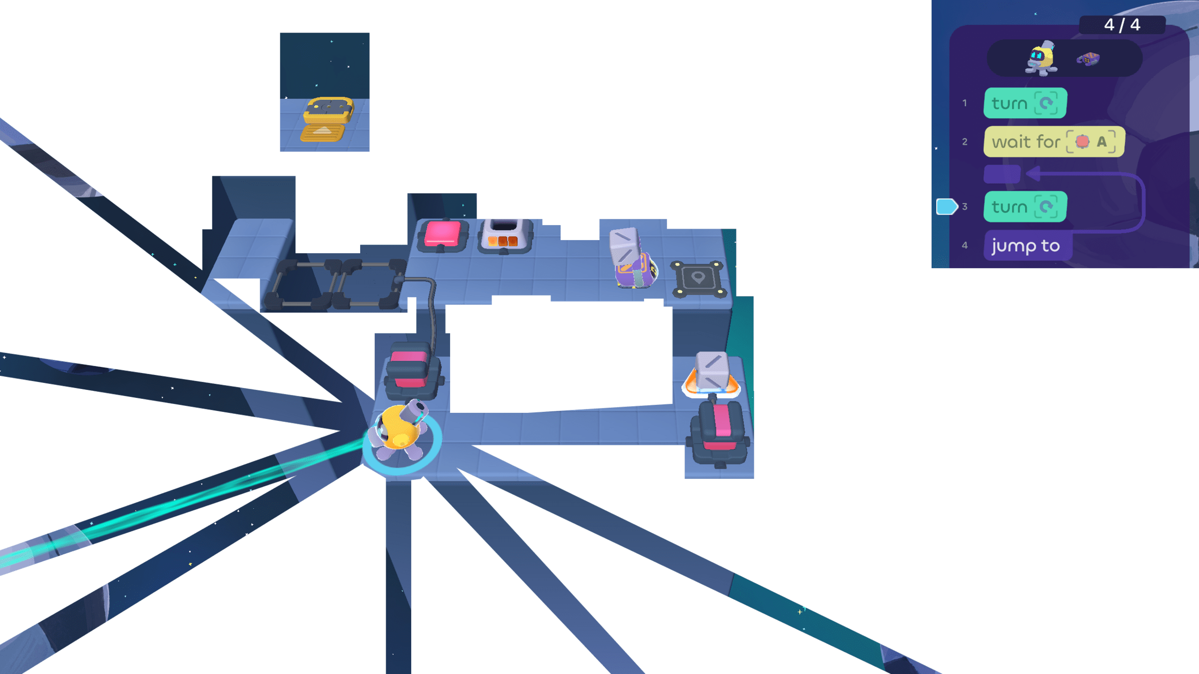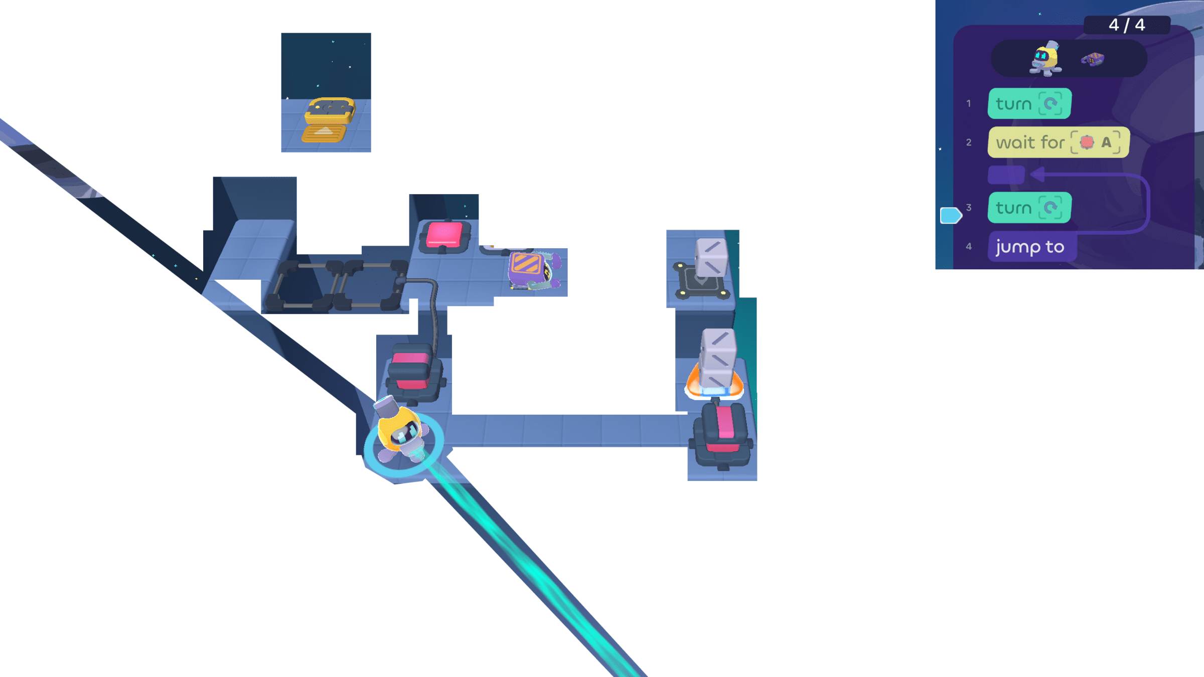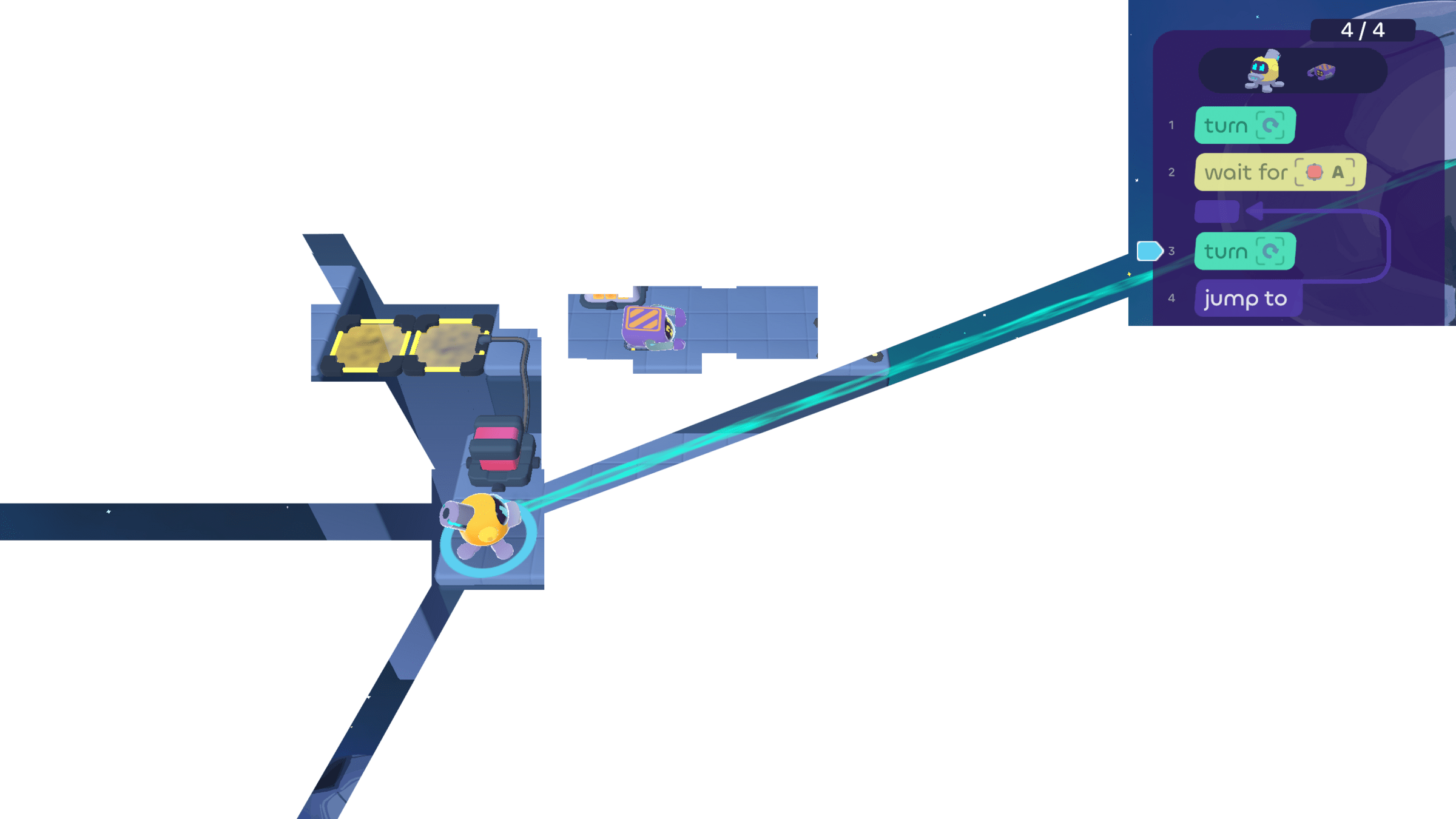 Plus, looping one turn makes a Laser spin forever. So we can launch all the cubes just by looping the turn on line 3!