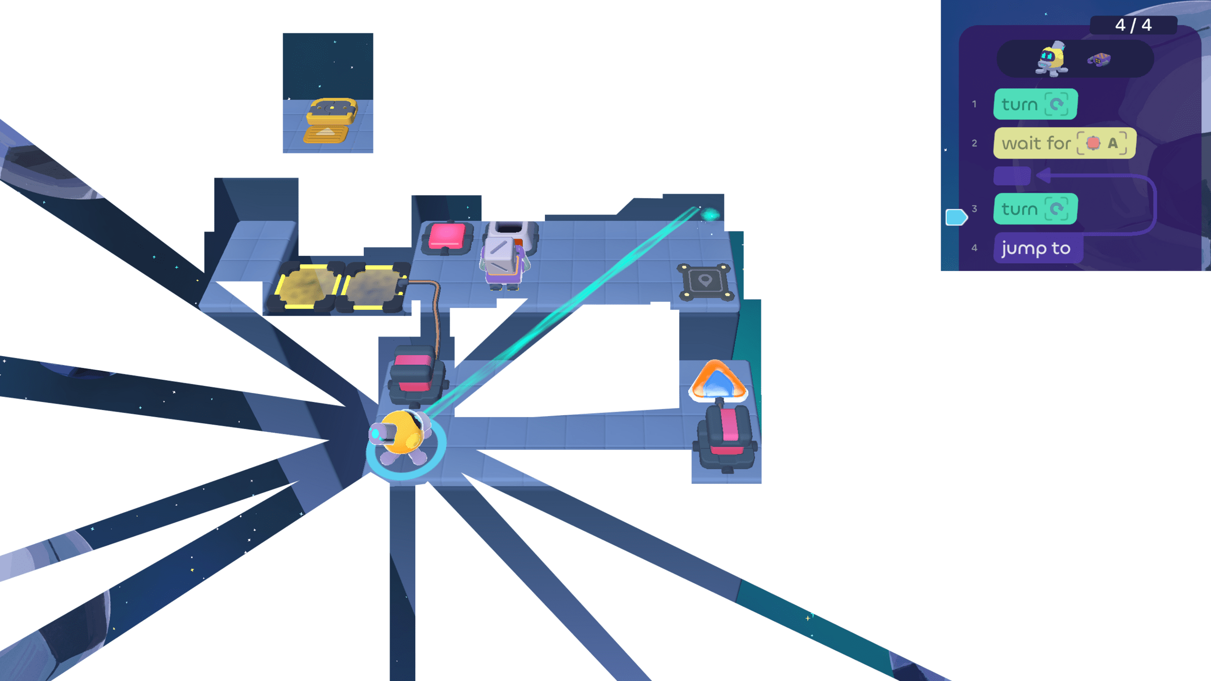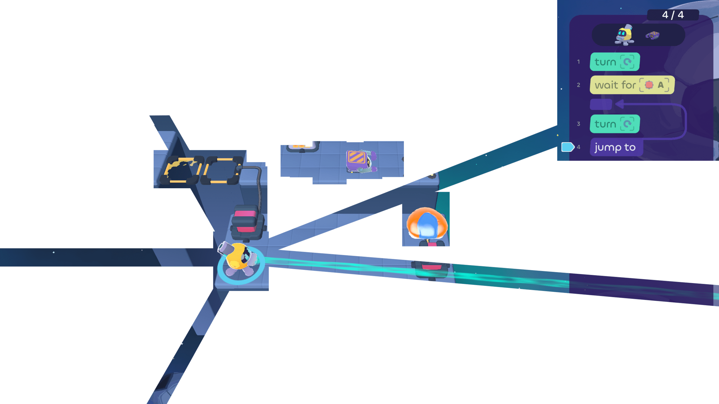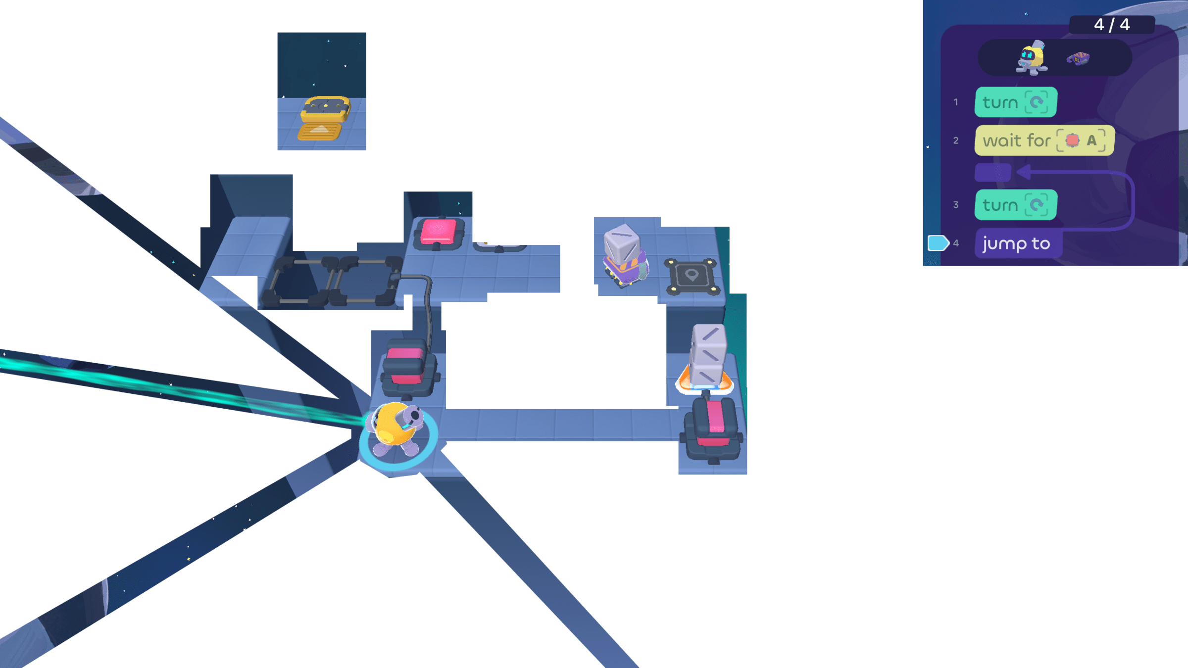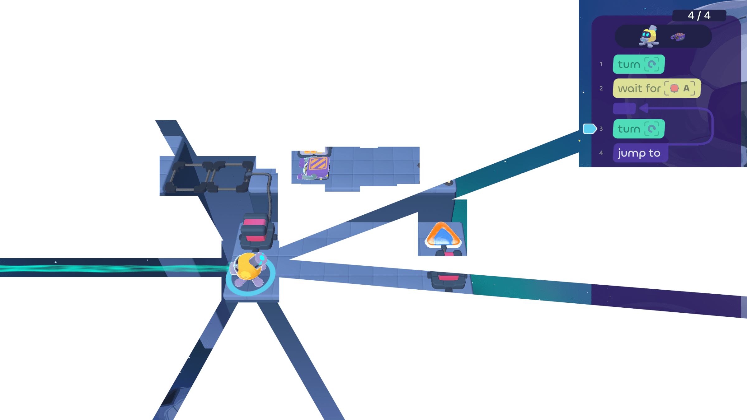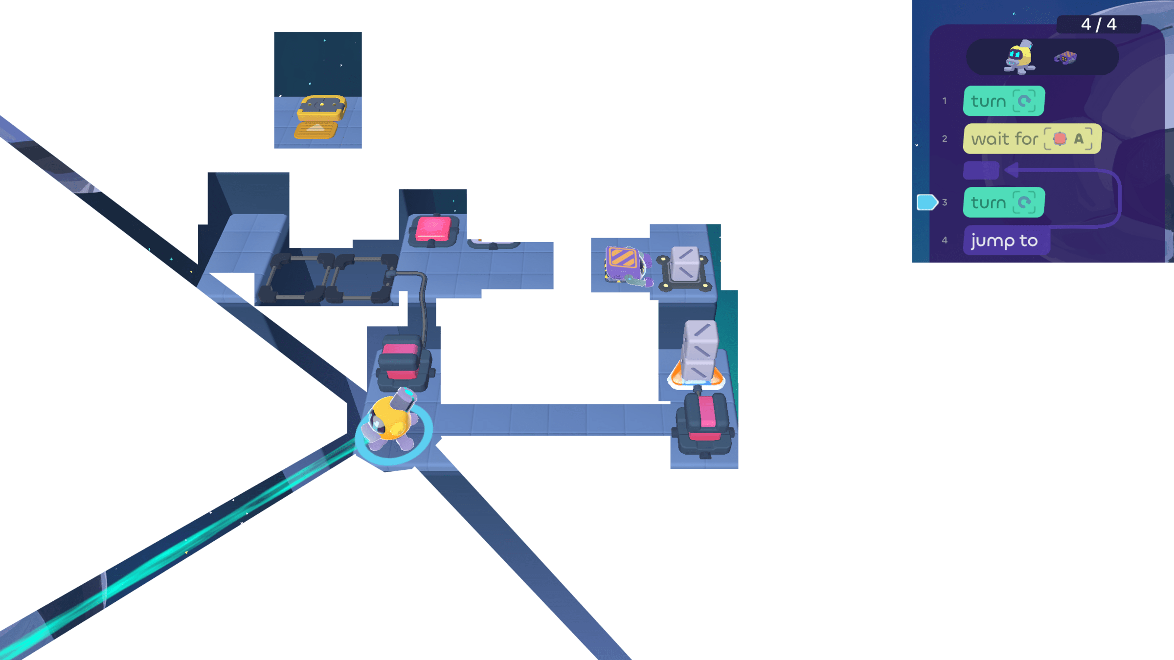 Plus, looping one turn makes a Laser spin forever. So we can launch all the cubes just by looping the turn on line 3!