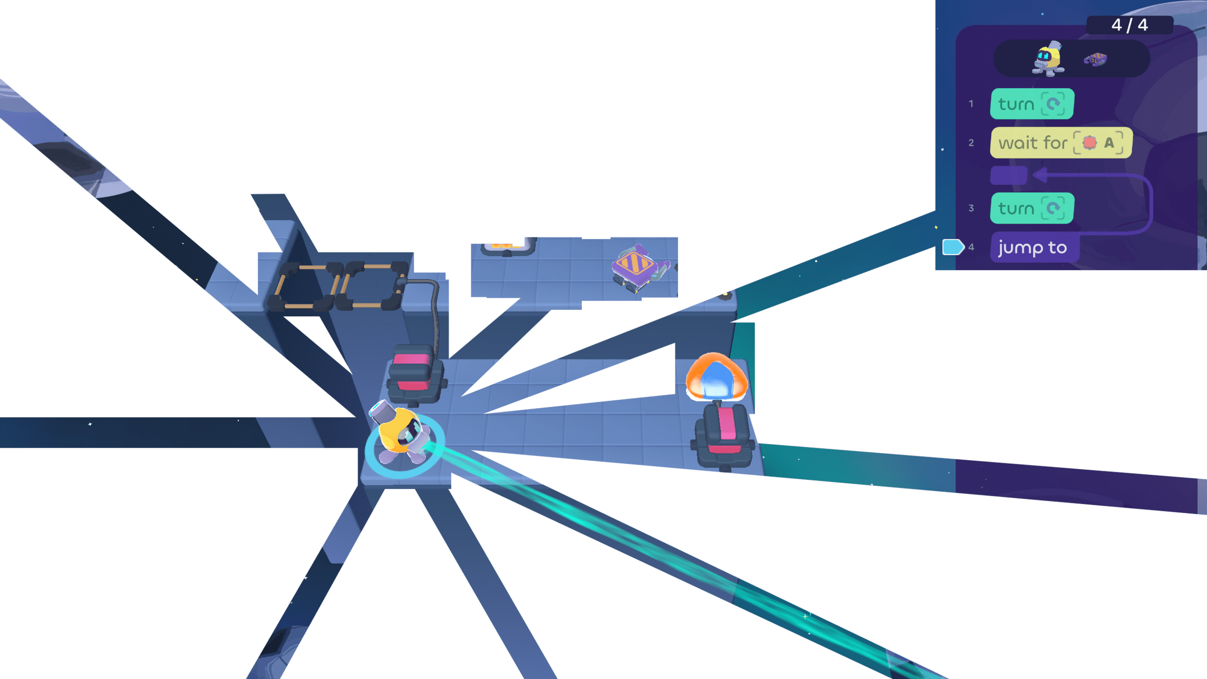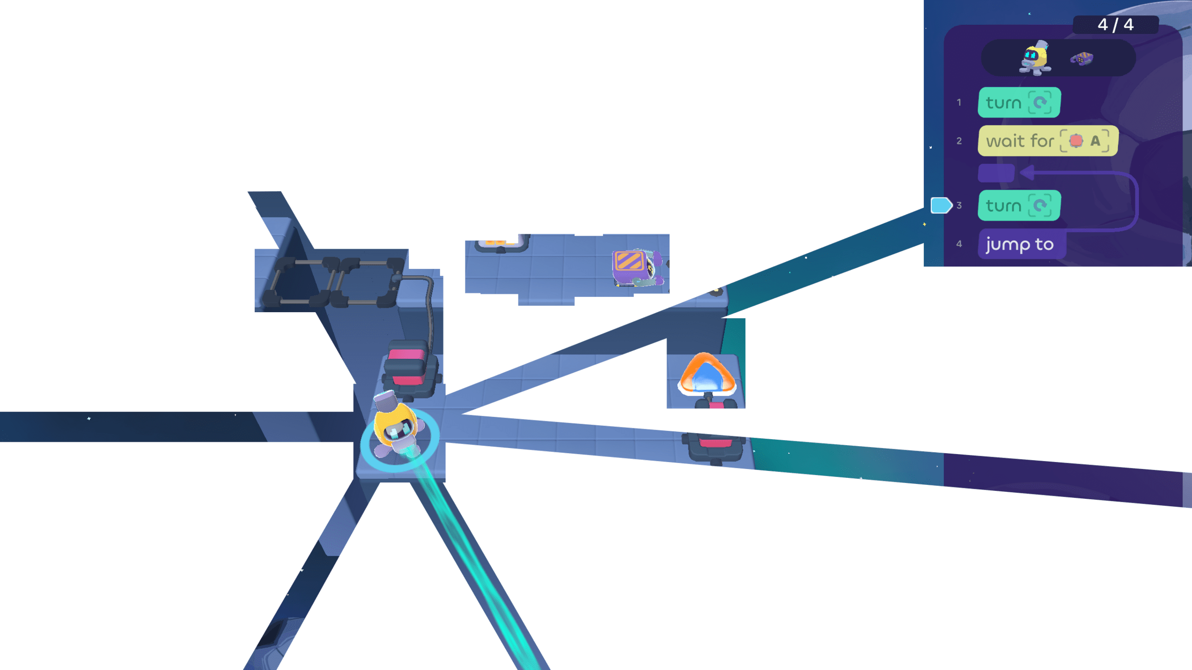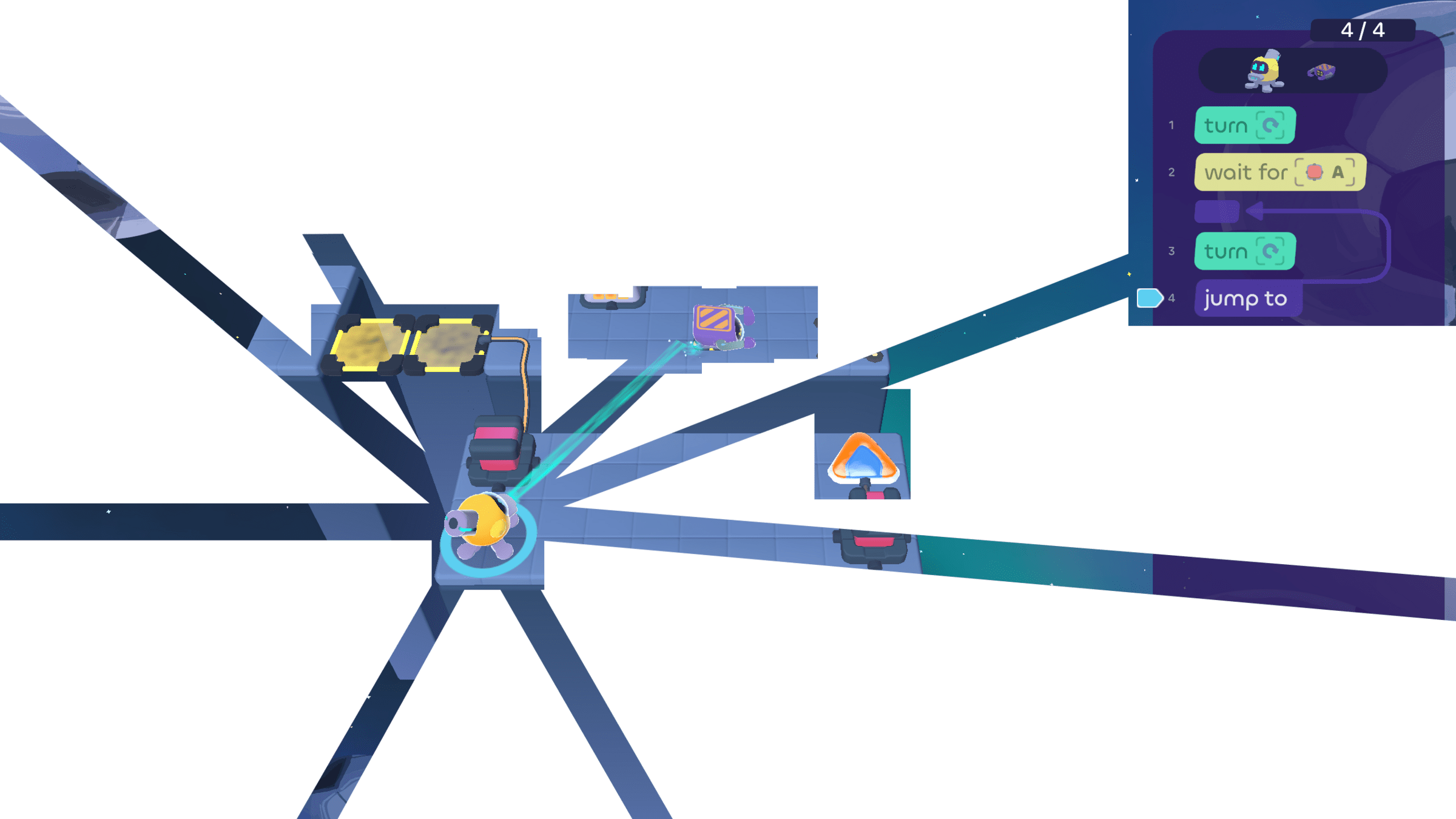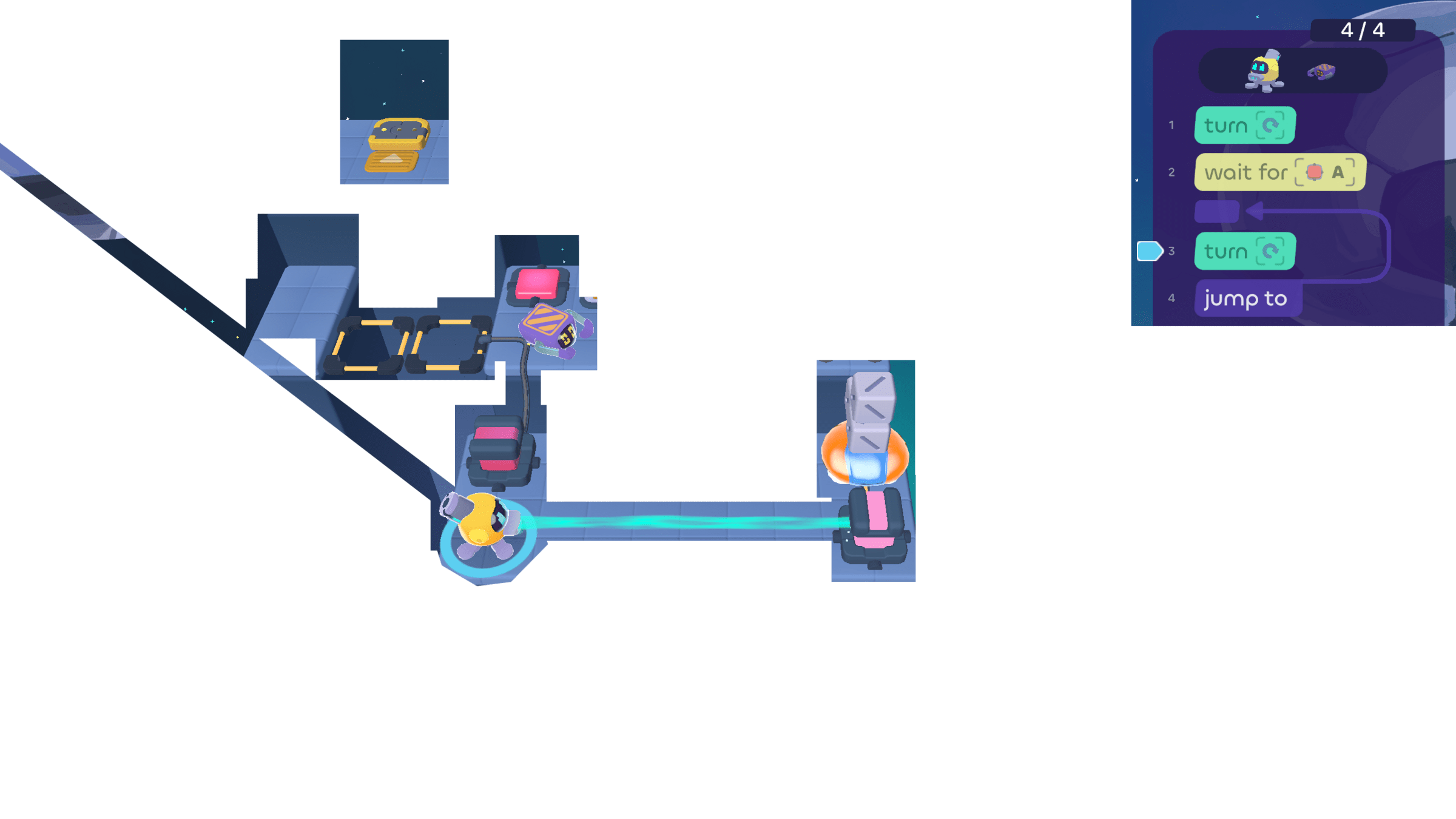 Plus, looping one turn makes a Laser spin forever. So we can launch all the cubes just by looping the turn on line 3!