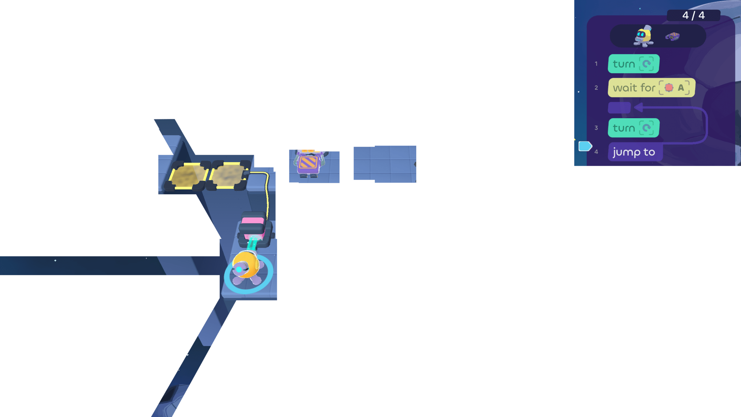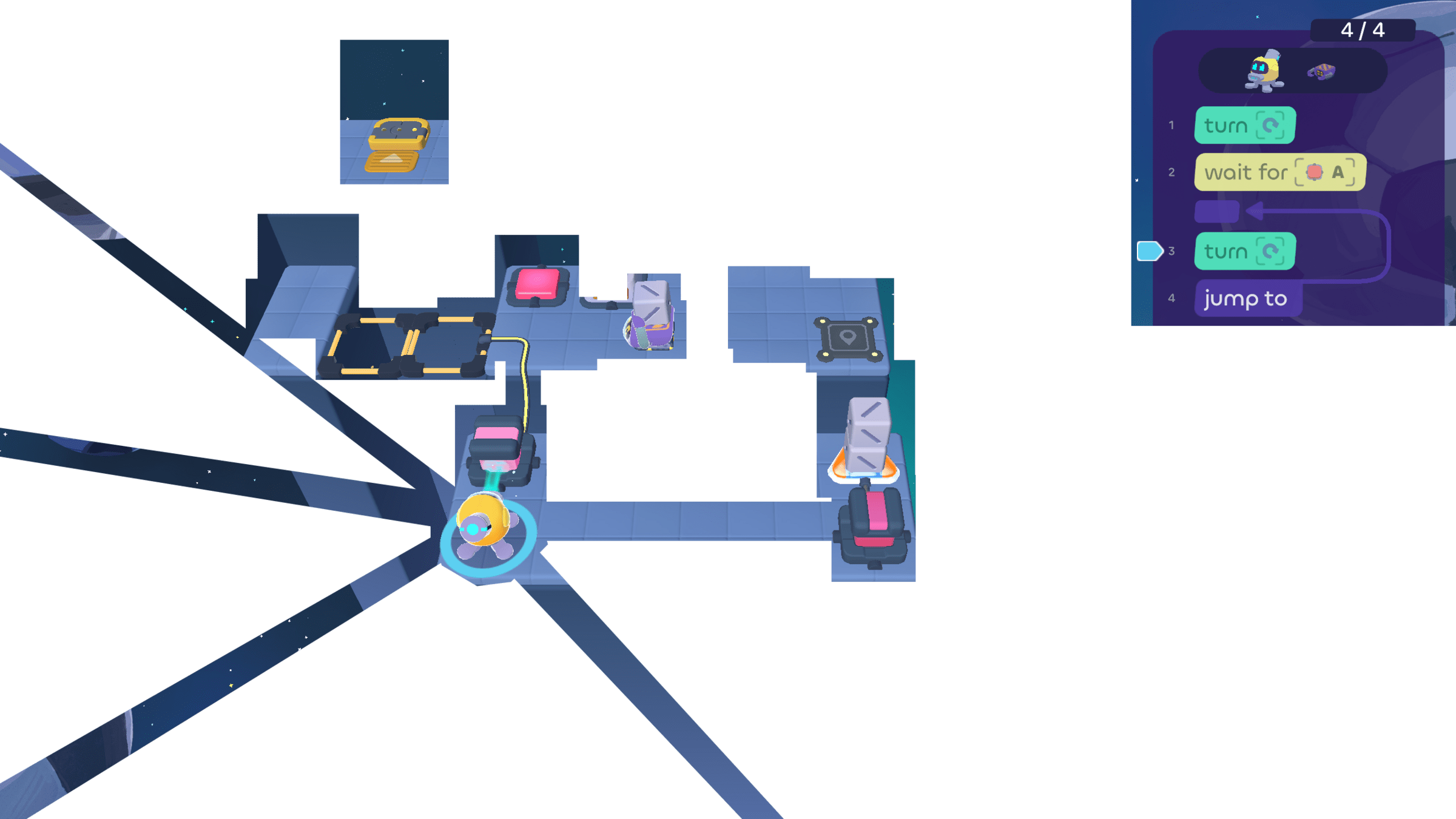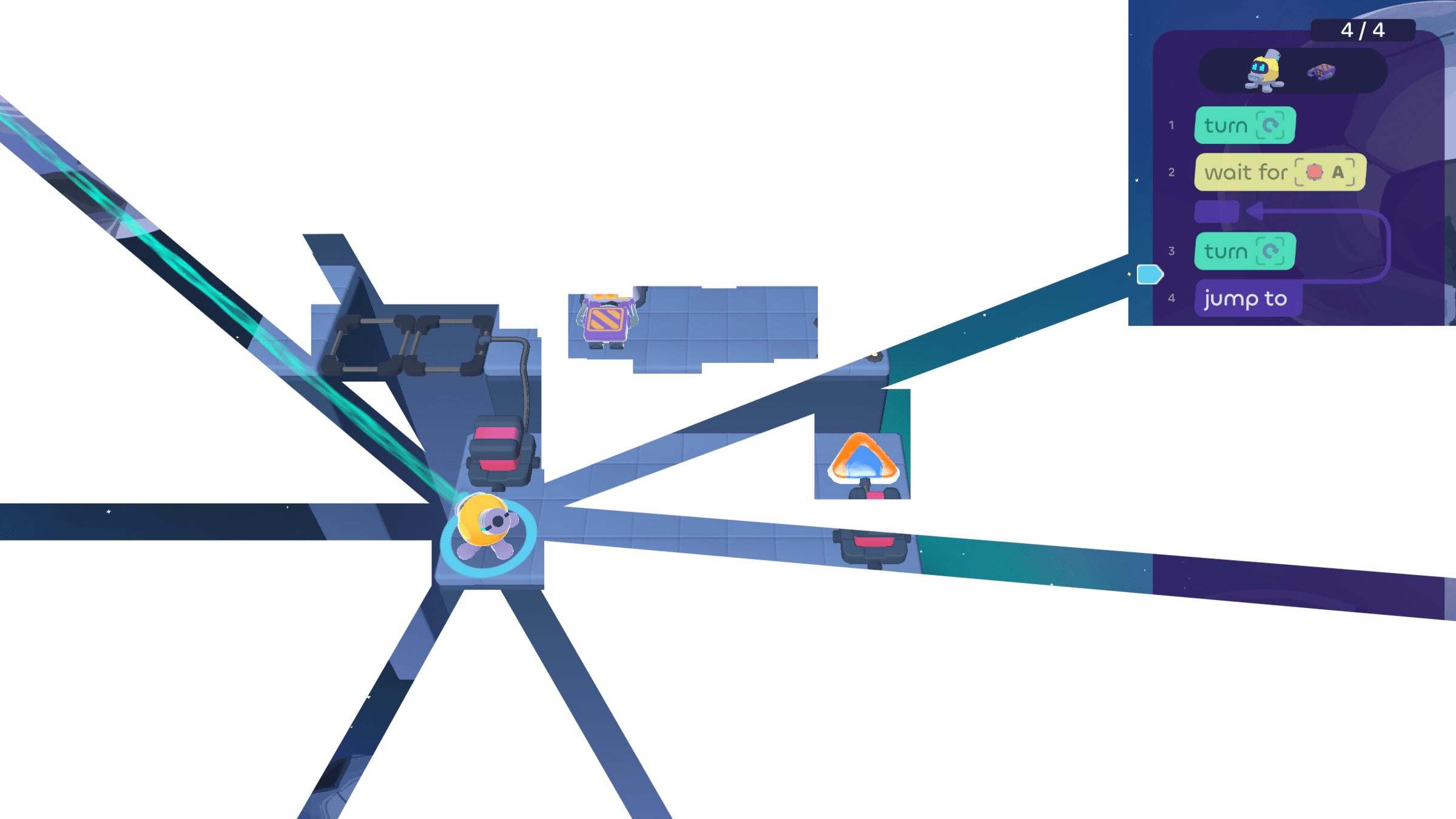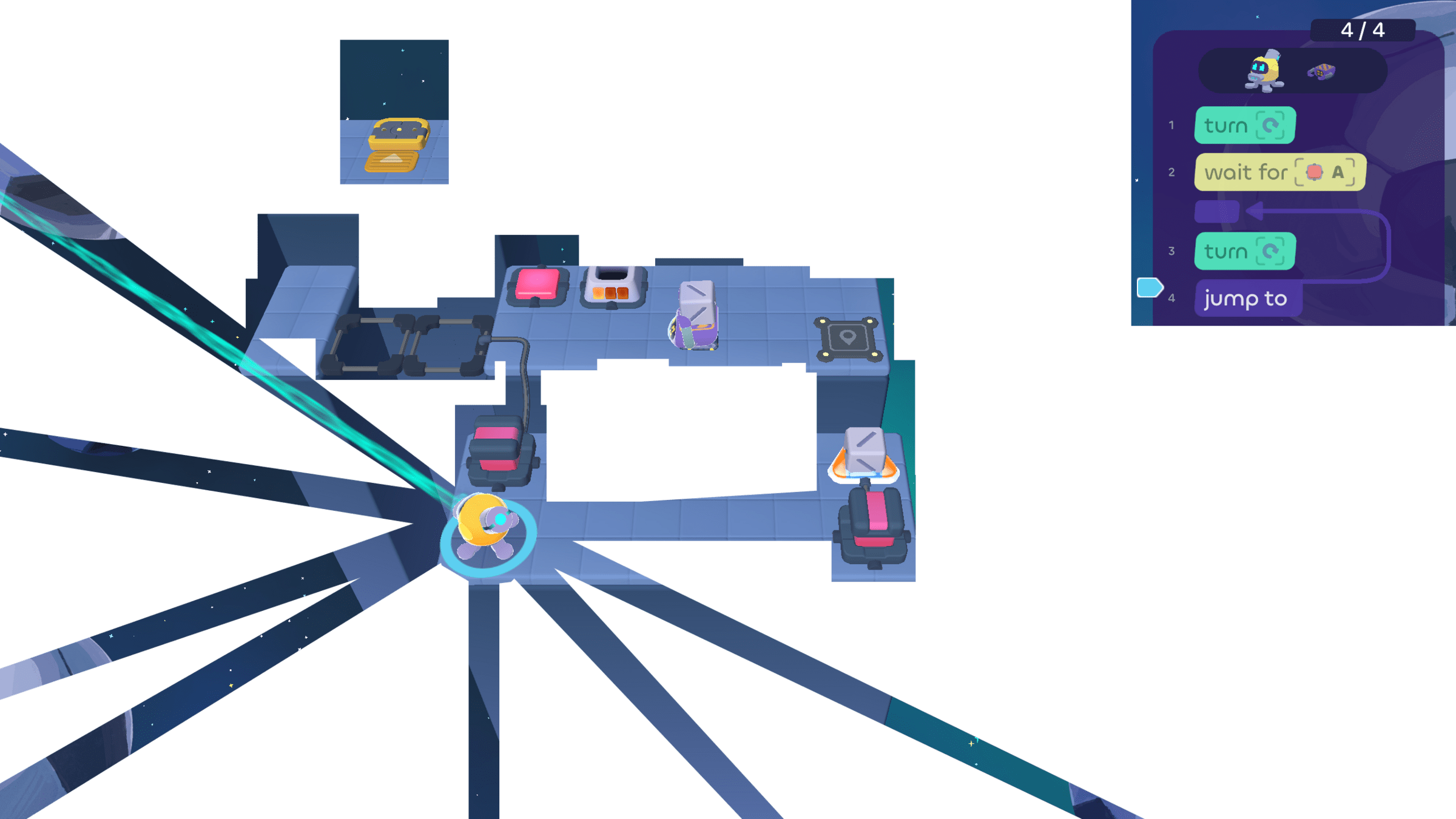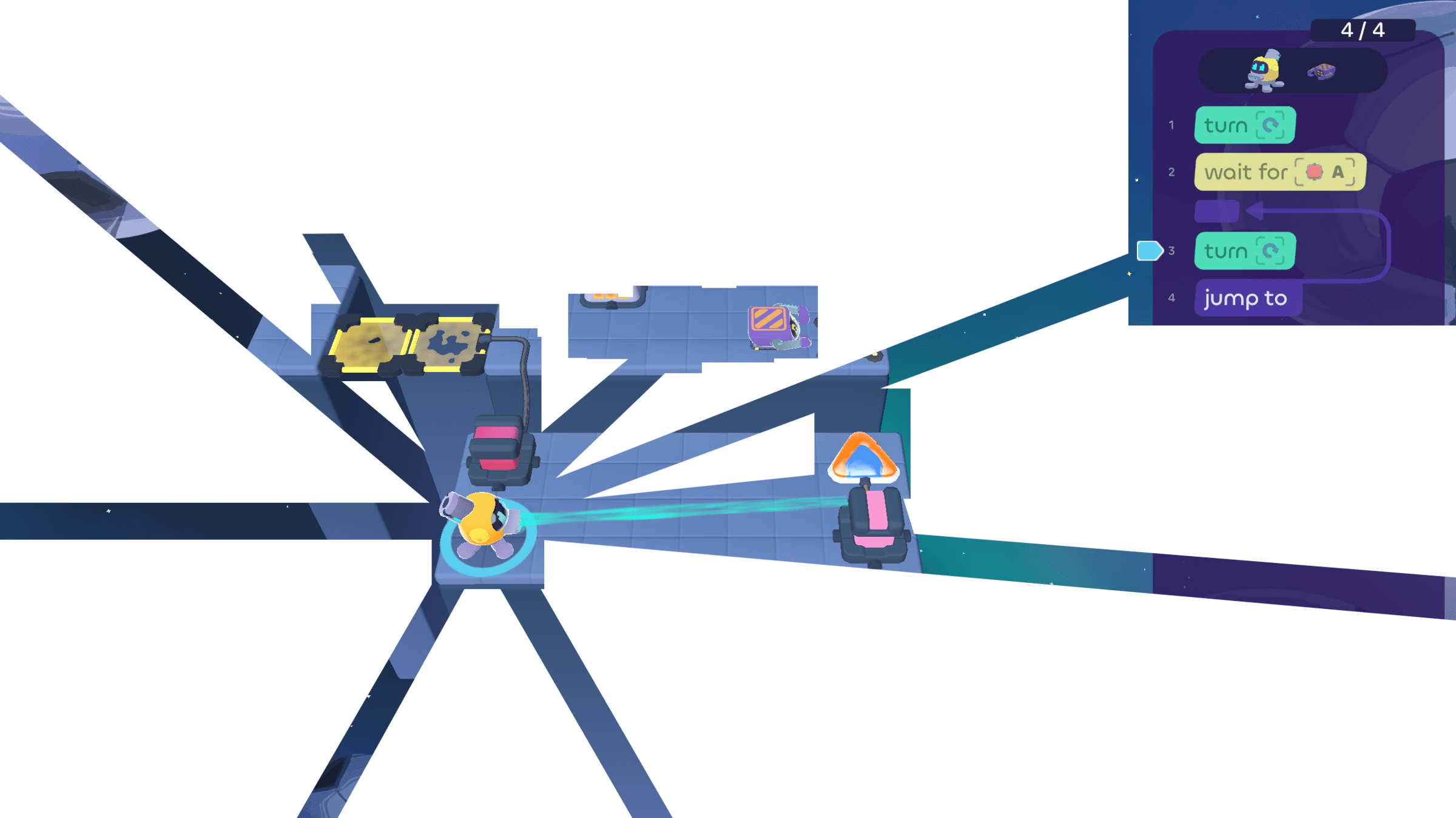 Plus, looping one turn makes a Laser spin forever. So we can launch all the cubes just by looping the turn on line 3!