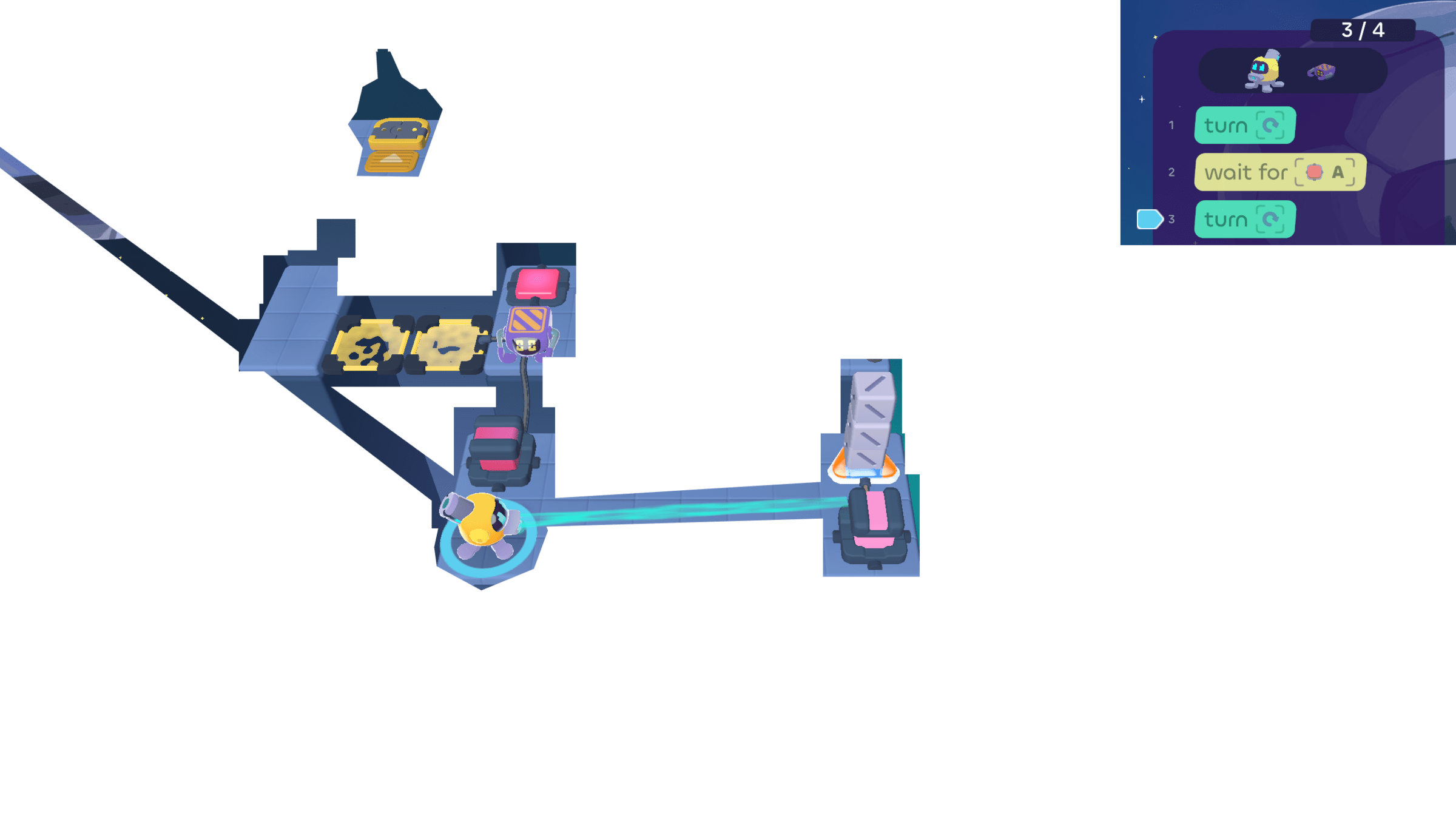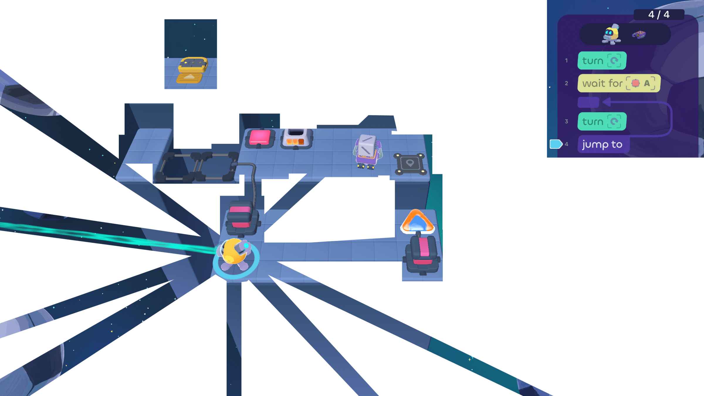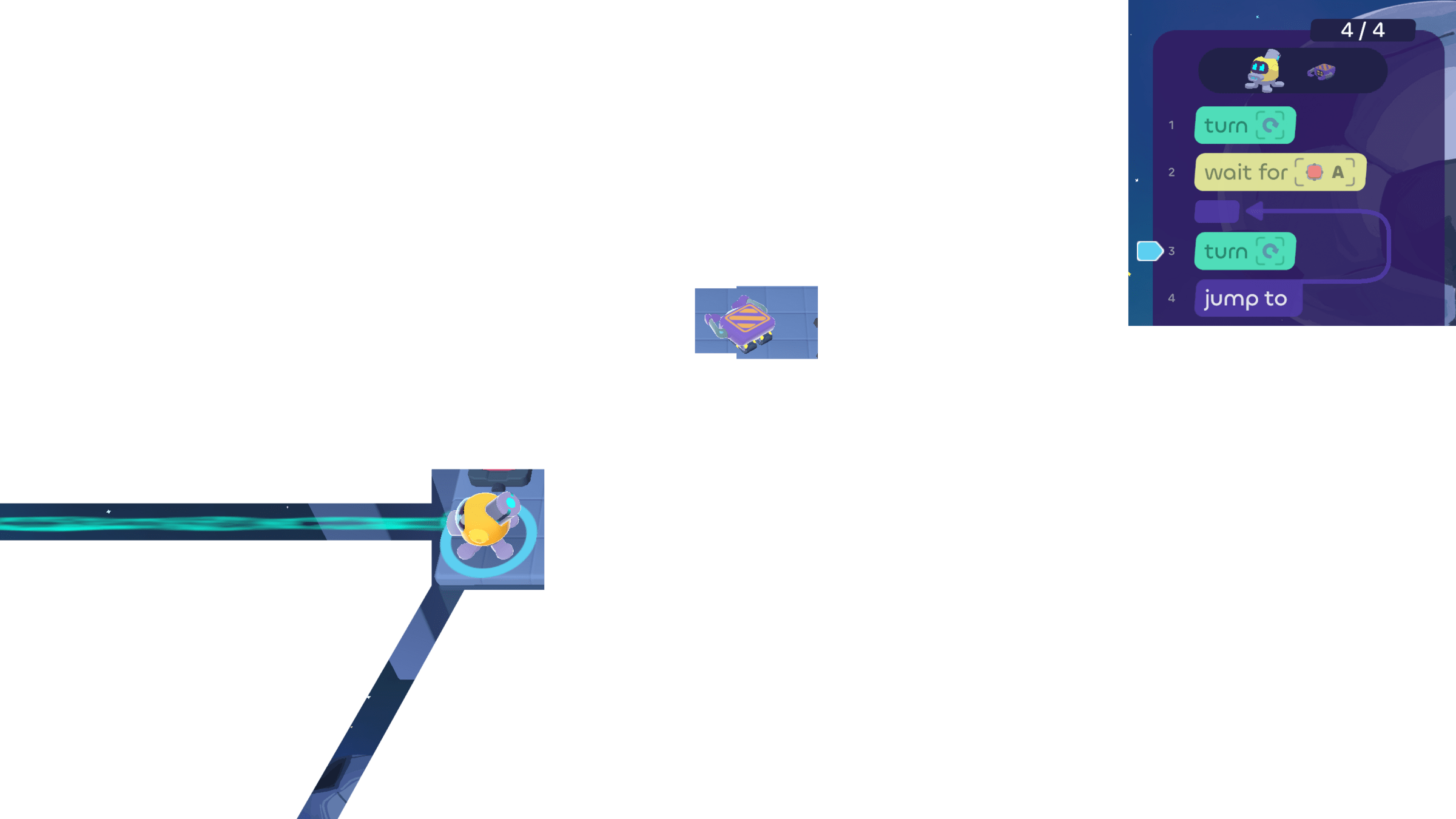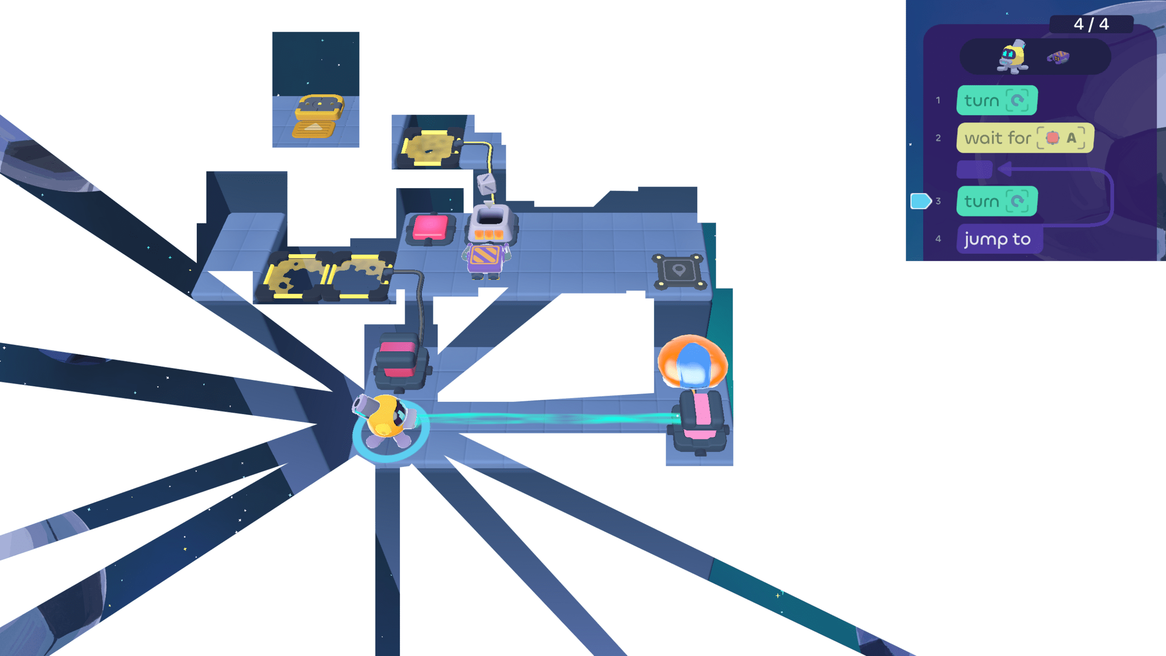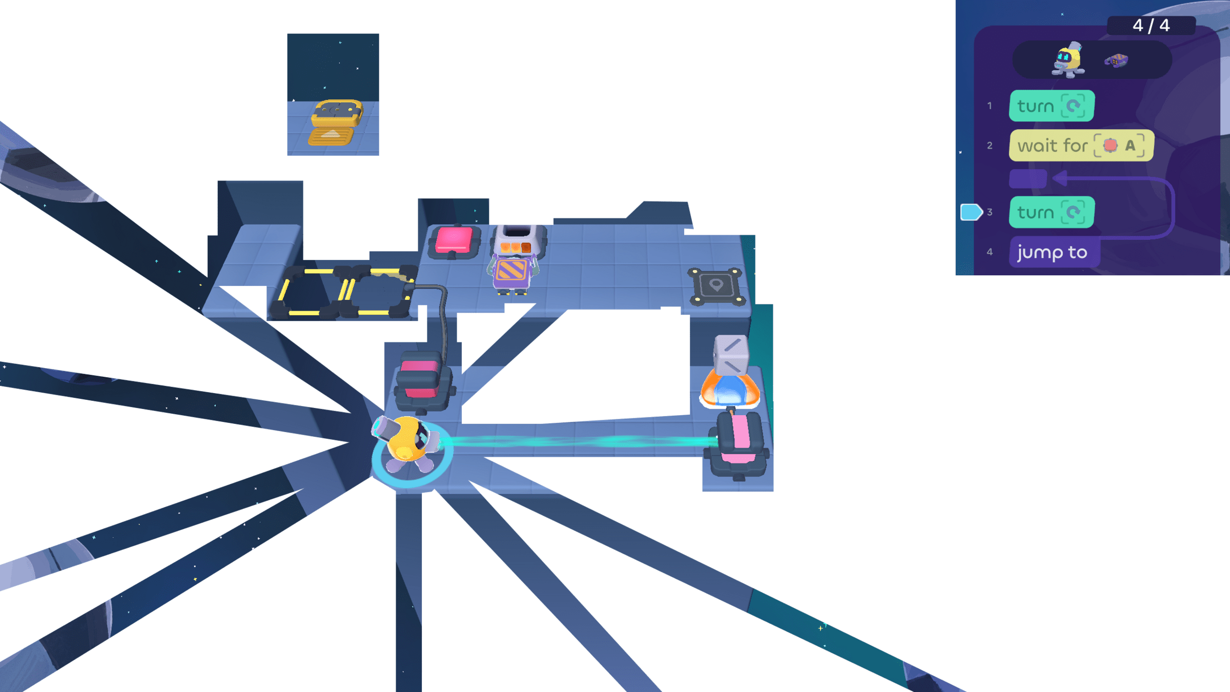 Plus, looping one turn makes a Laser spin forever. So we can launch all the cubes just by looping the turn on line 3!