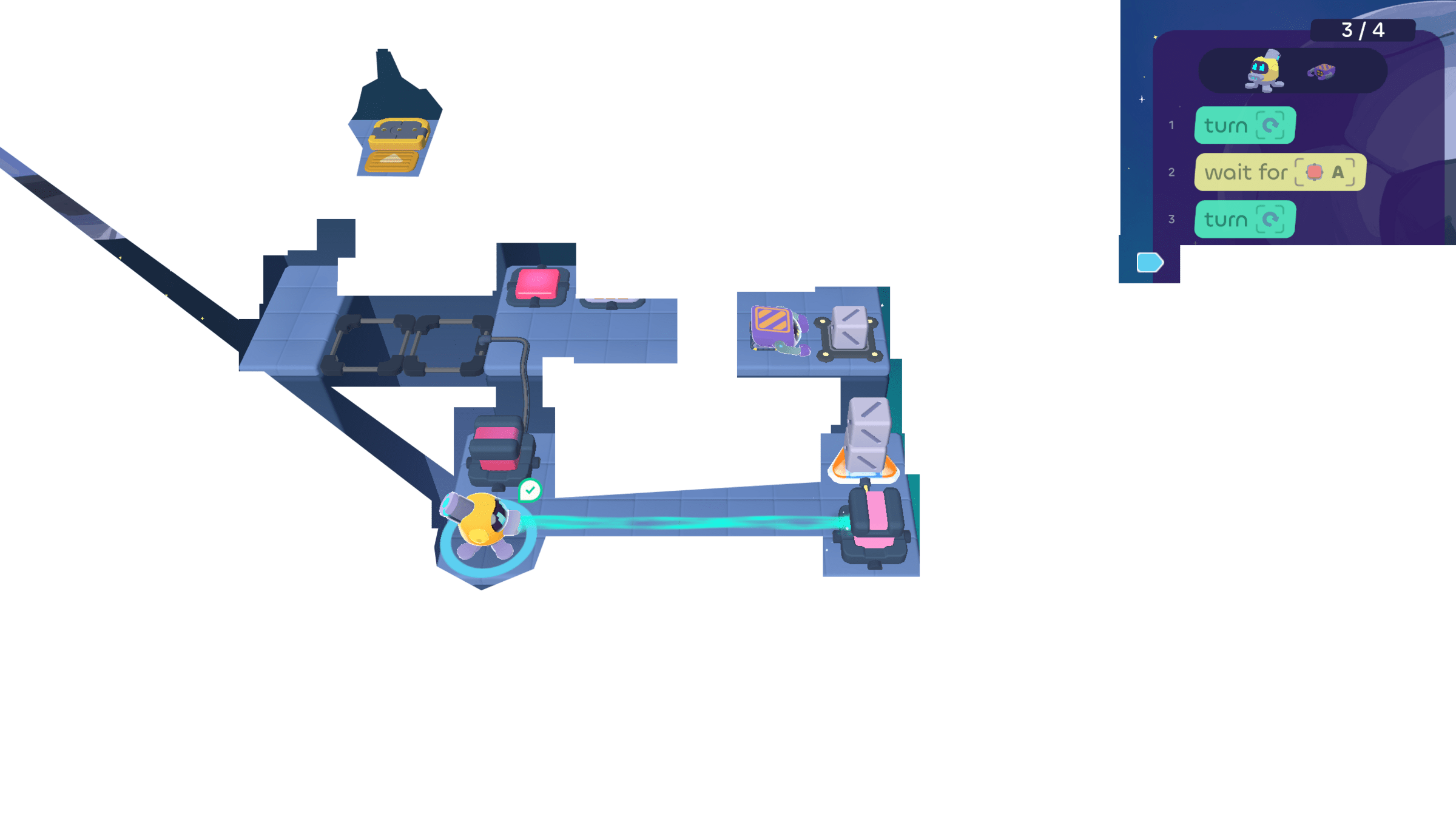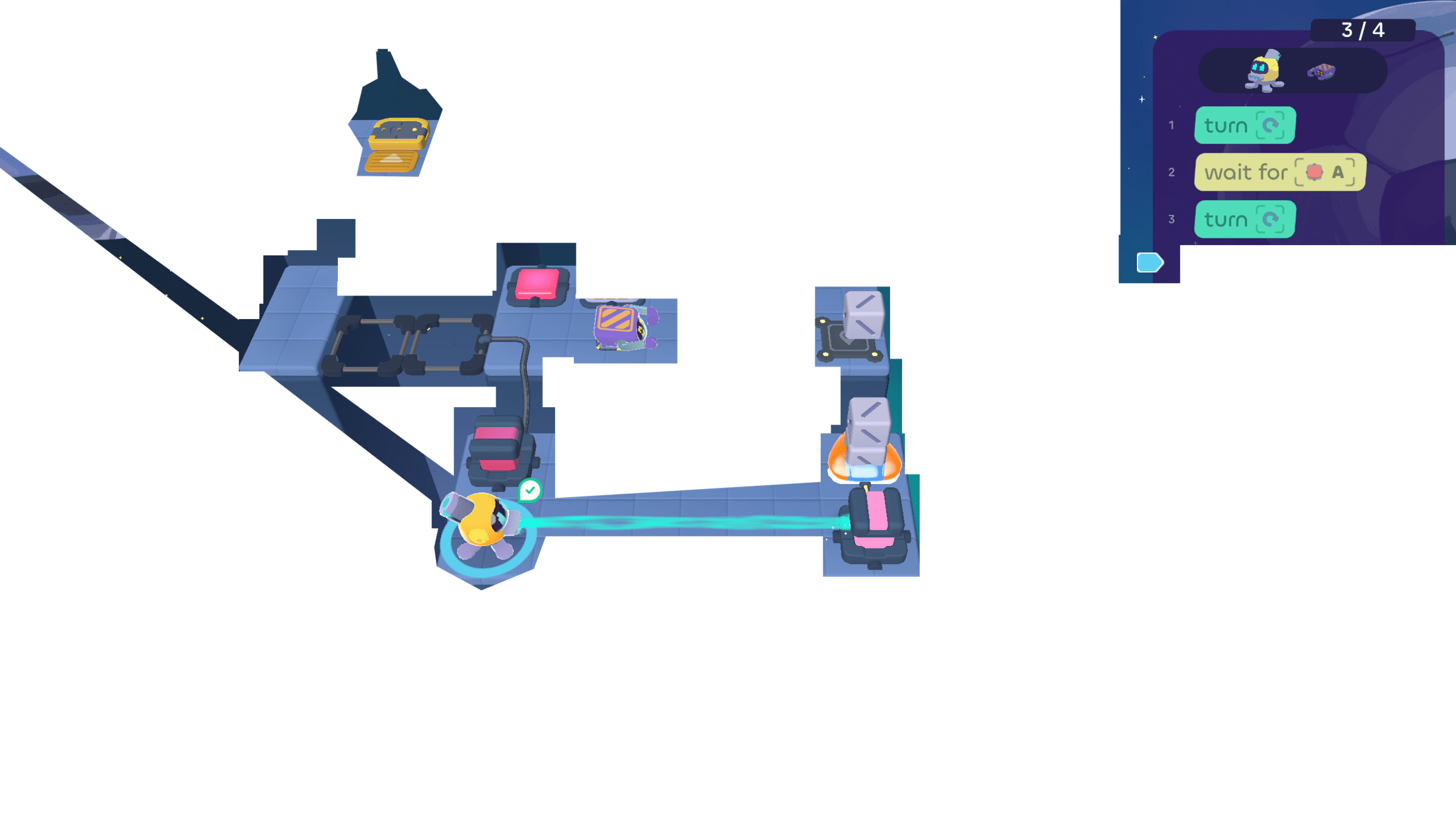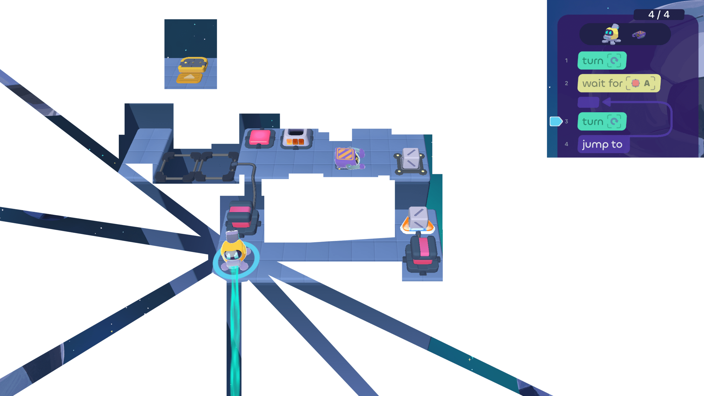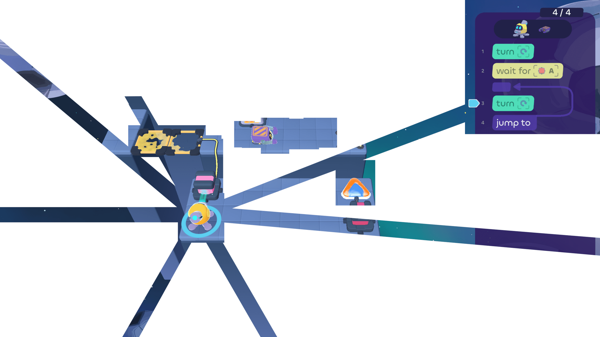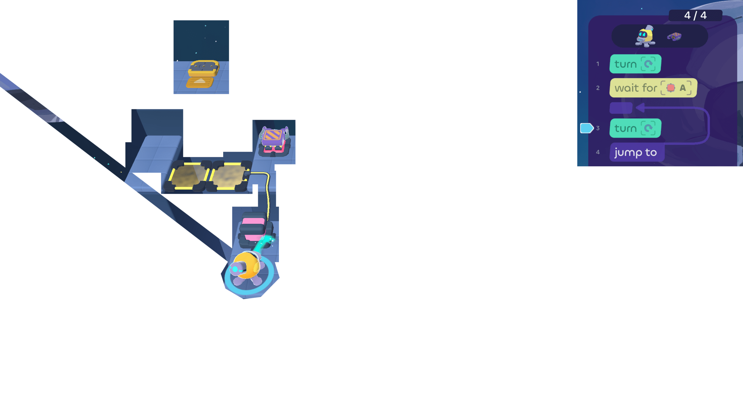 Plus, looping one turn makes a Laser spin forever. So we can launch all the cubes just by looping the turn on line 3!