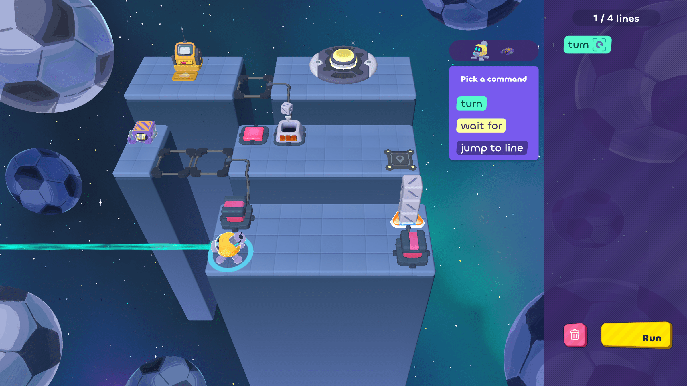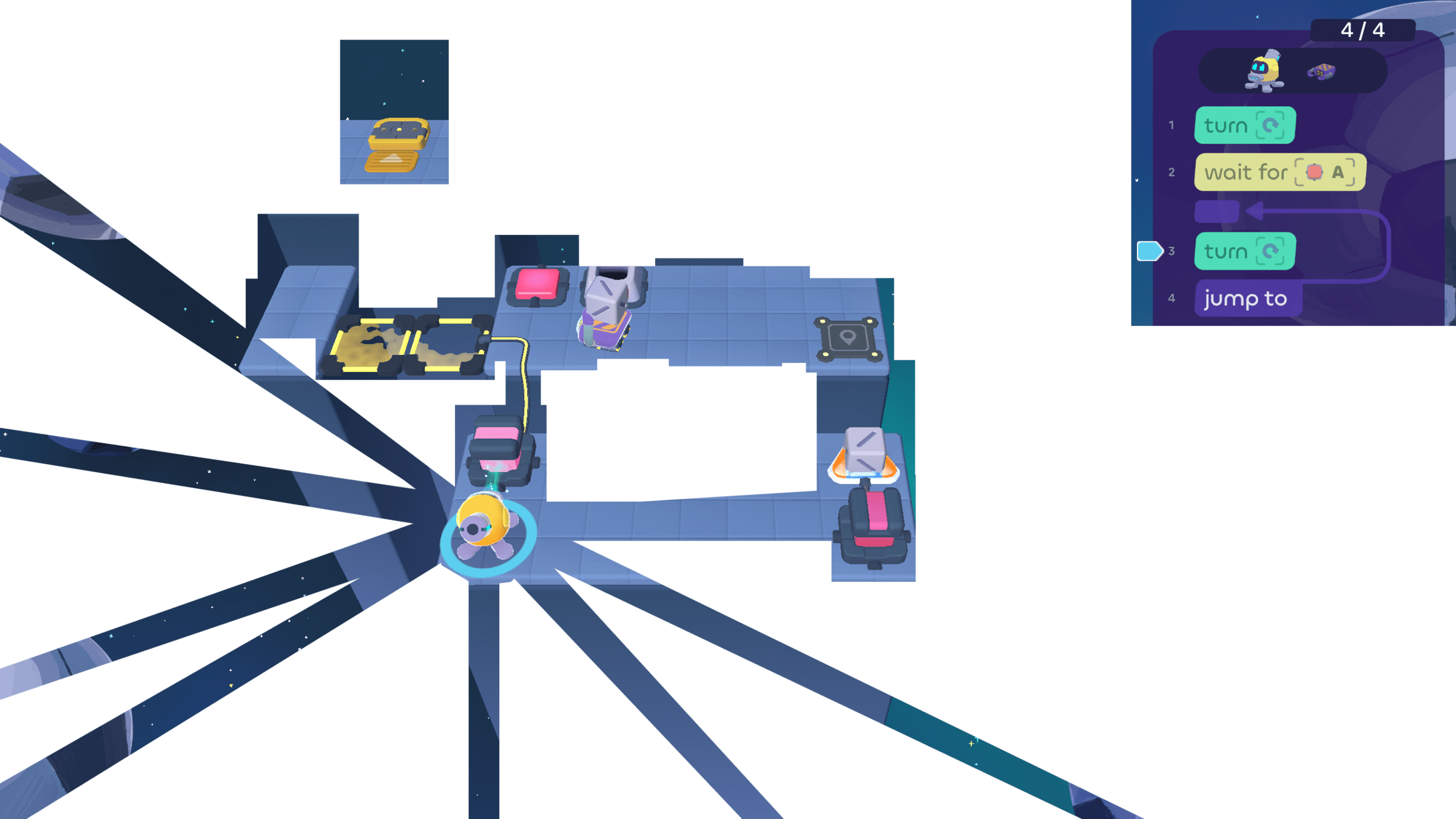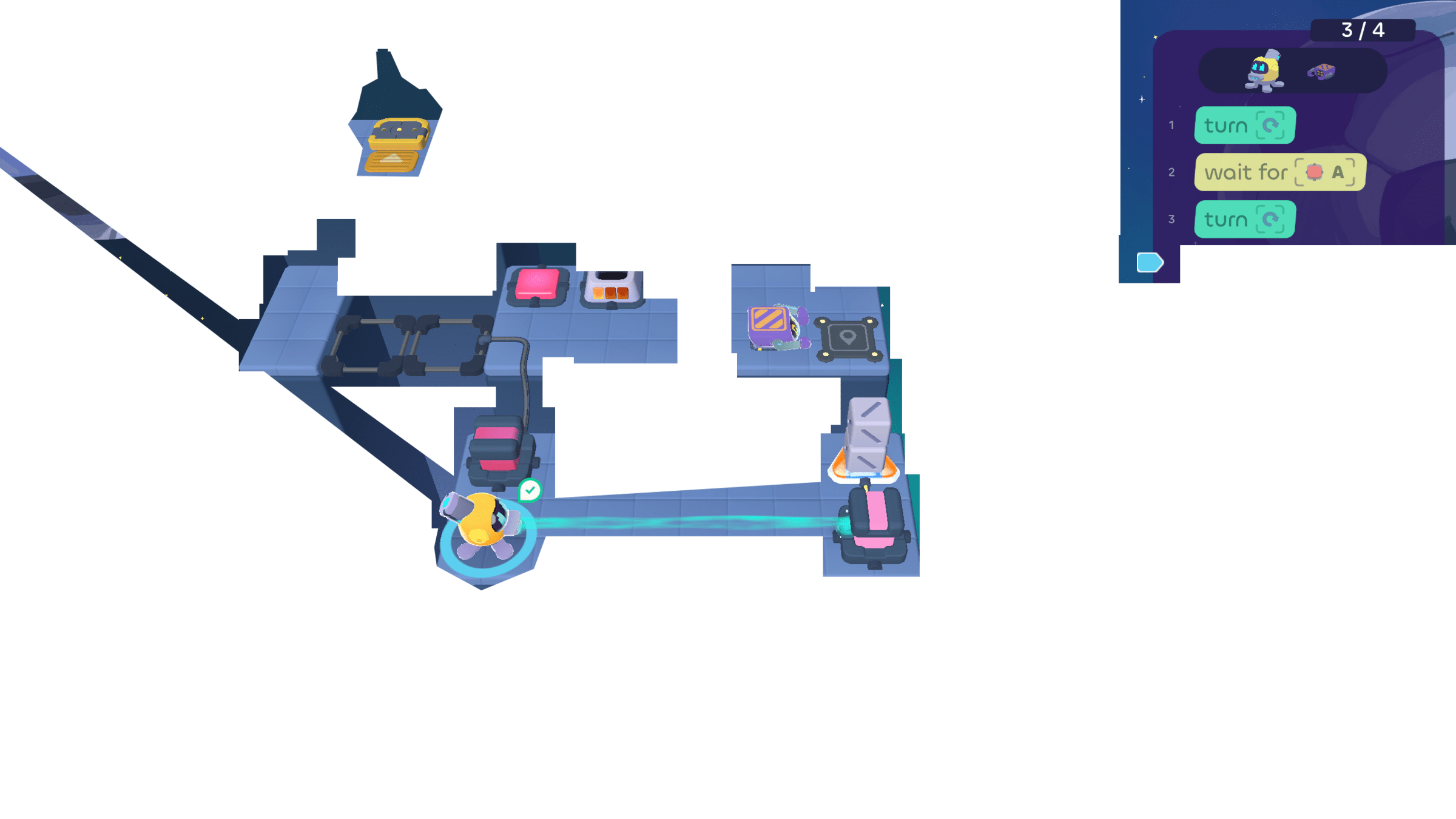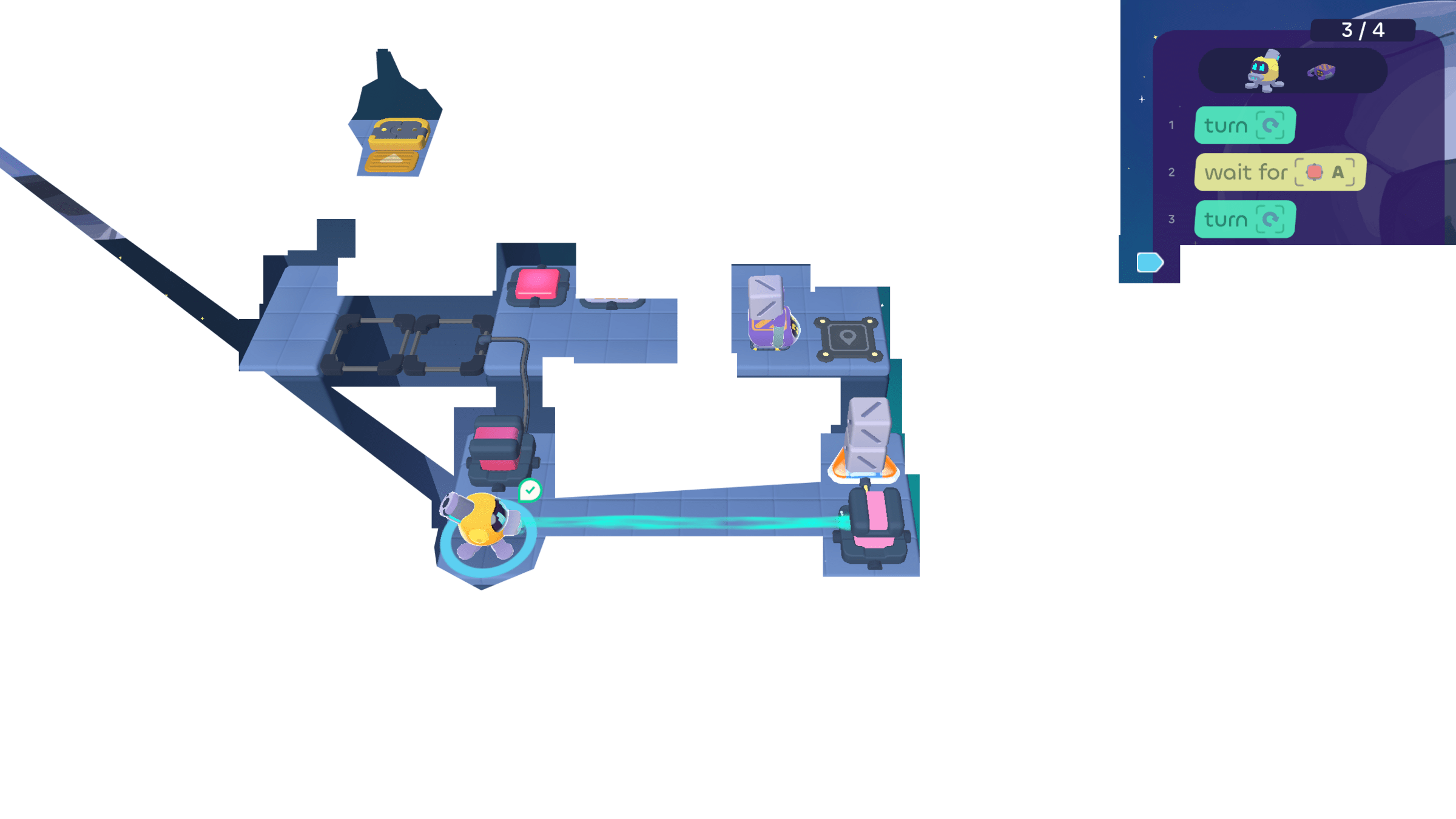 Plus, looping one turn makes a Laser spin forever. So we can launch all the cubes just by looping the turn on line 3!