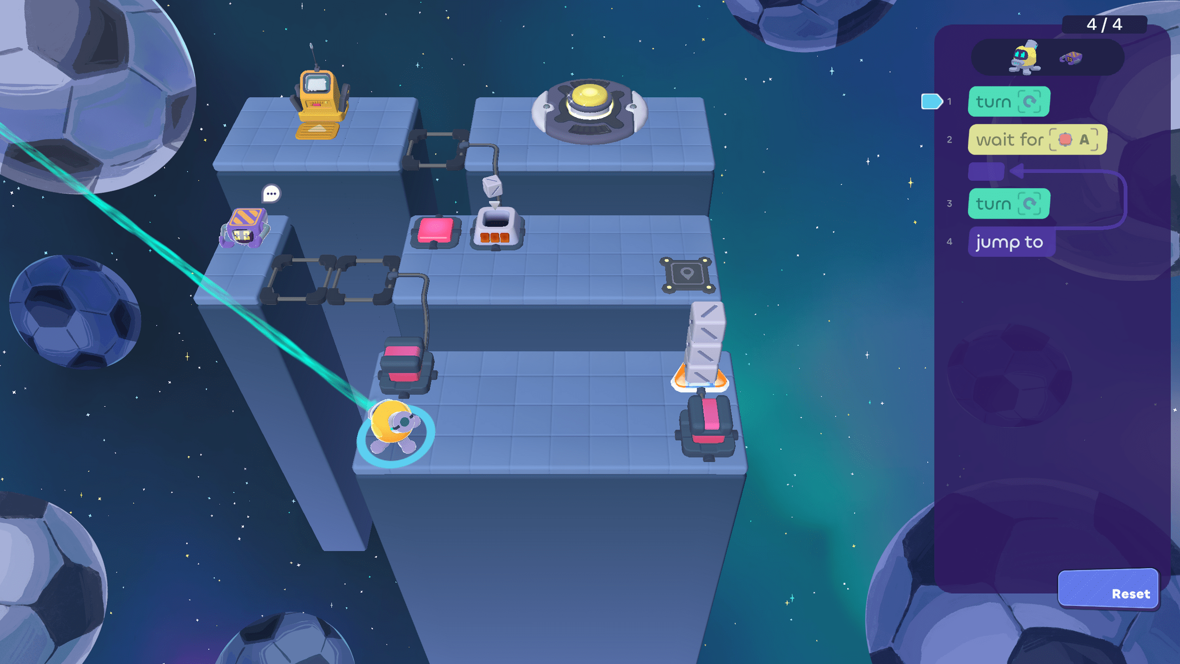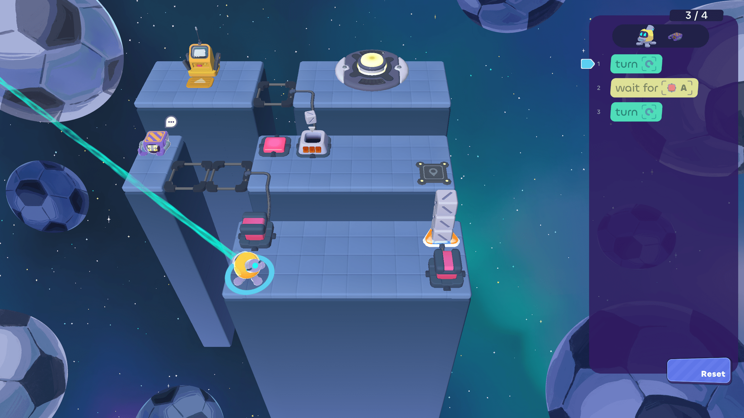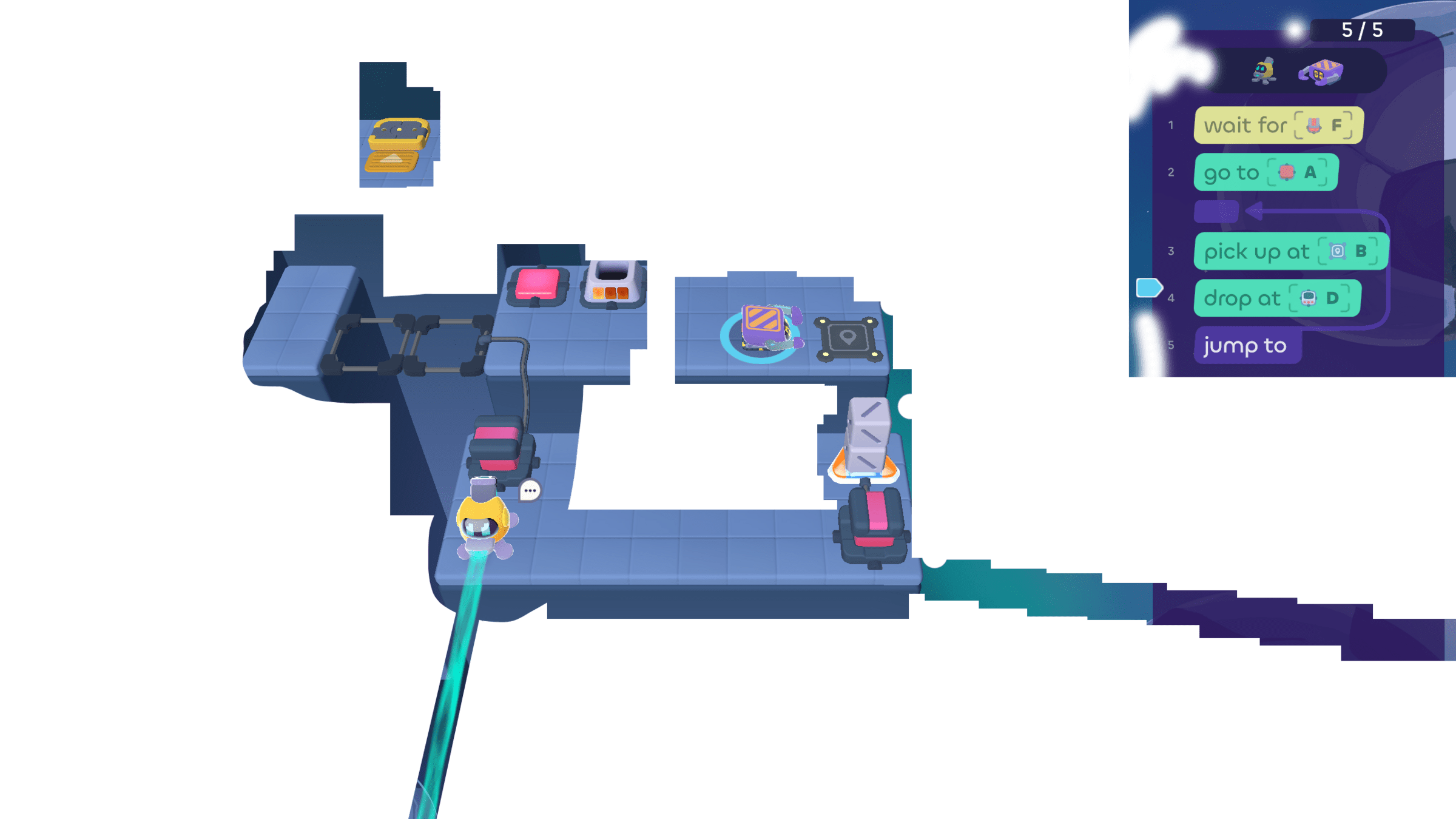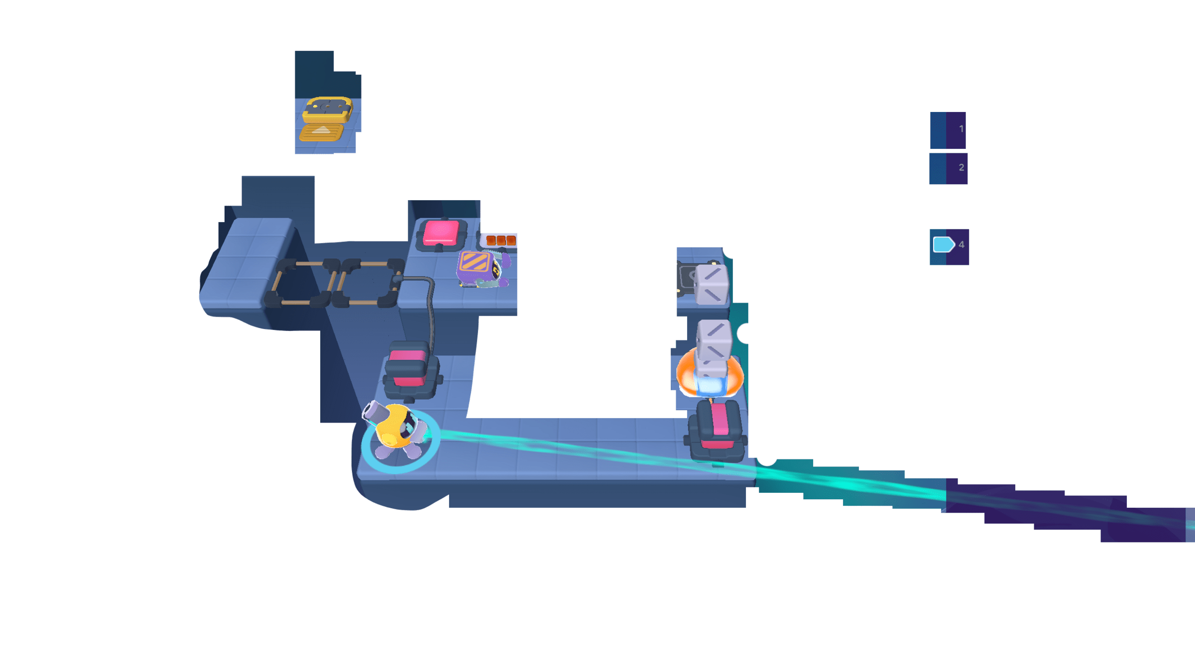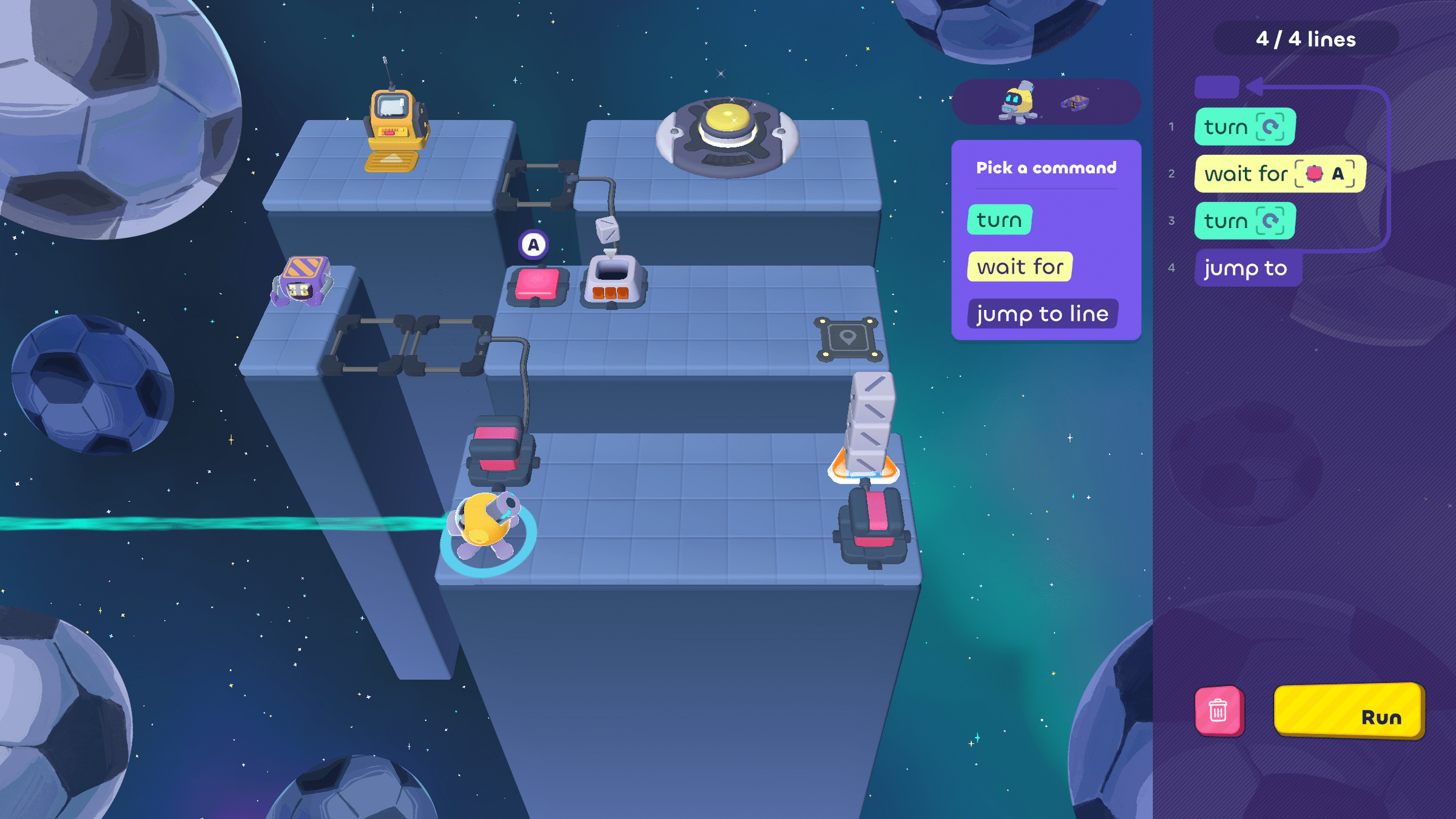 Plus, looping one turn makes a Laser spin forever. So we can launch all the cubes just by looping the turn on line 3!