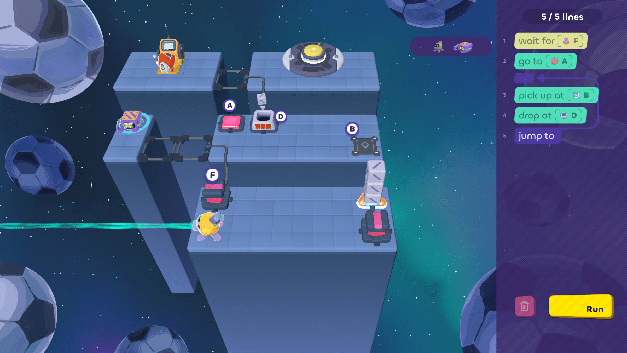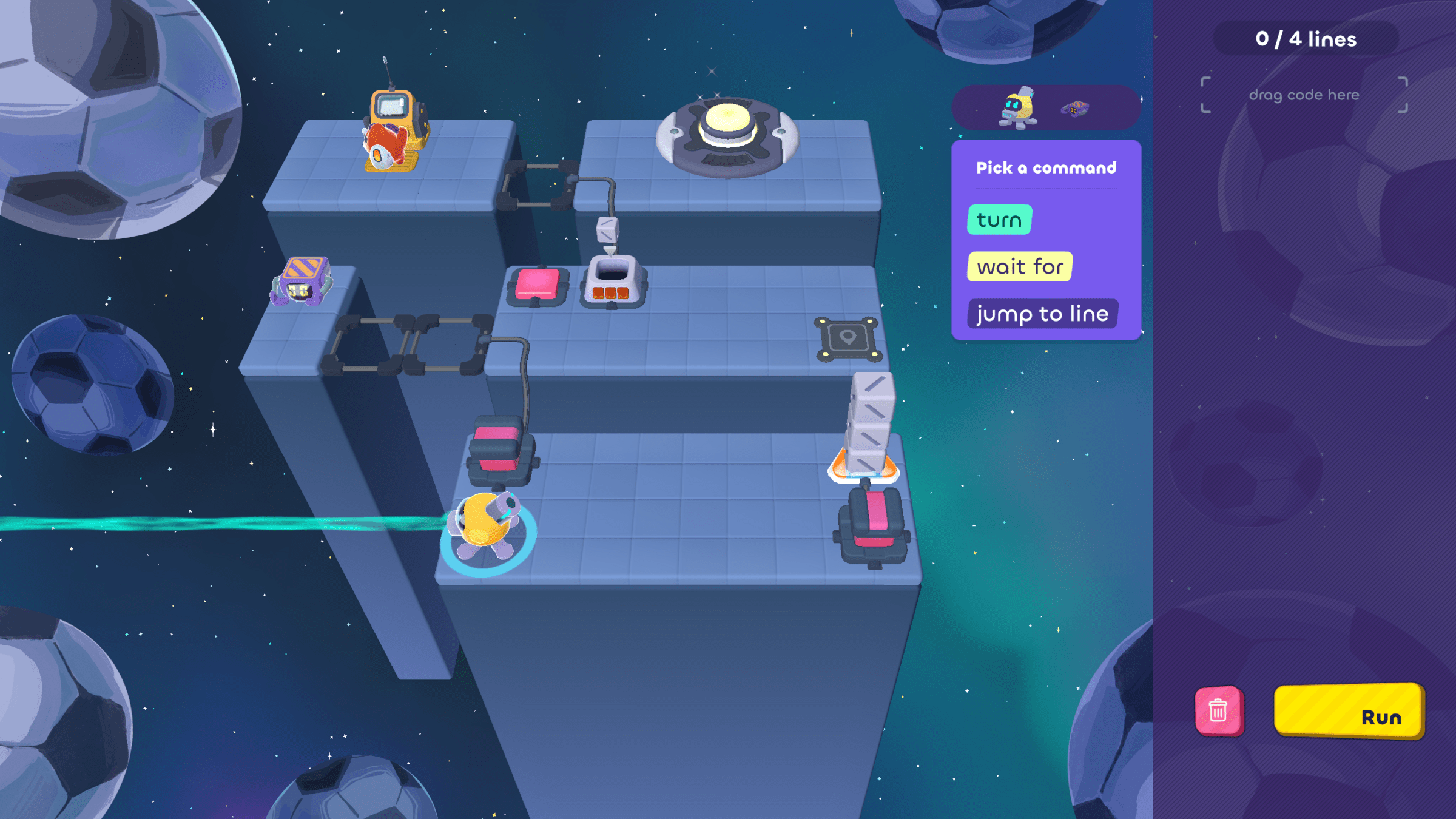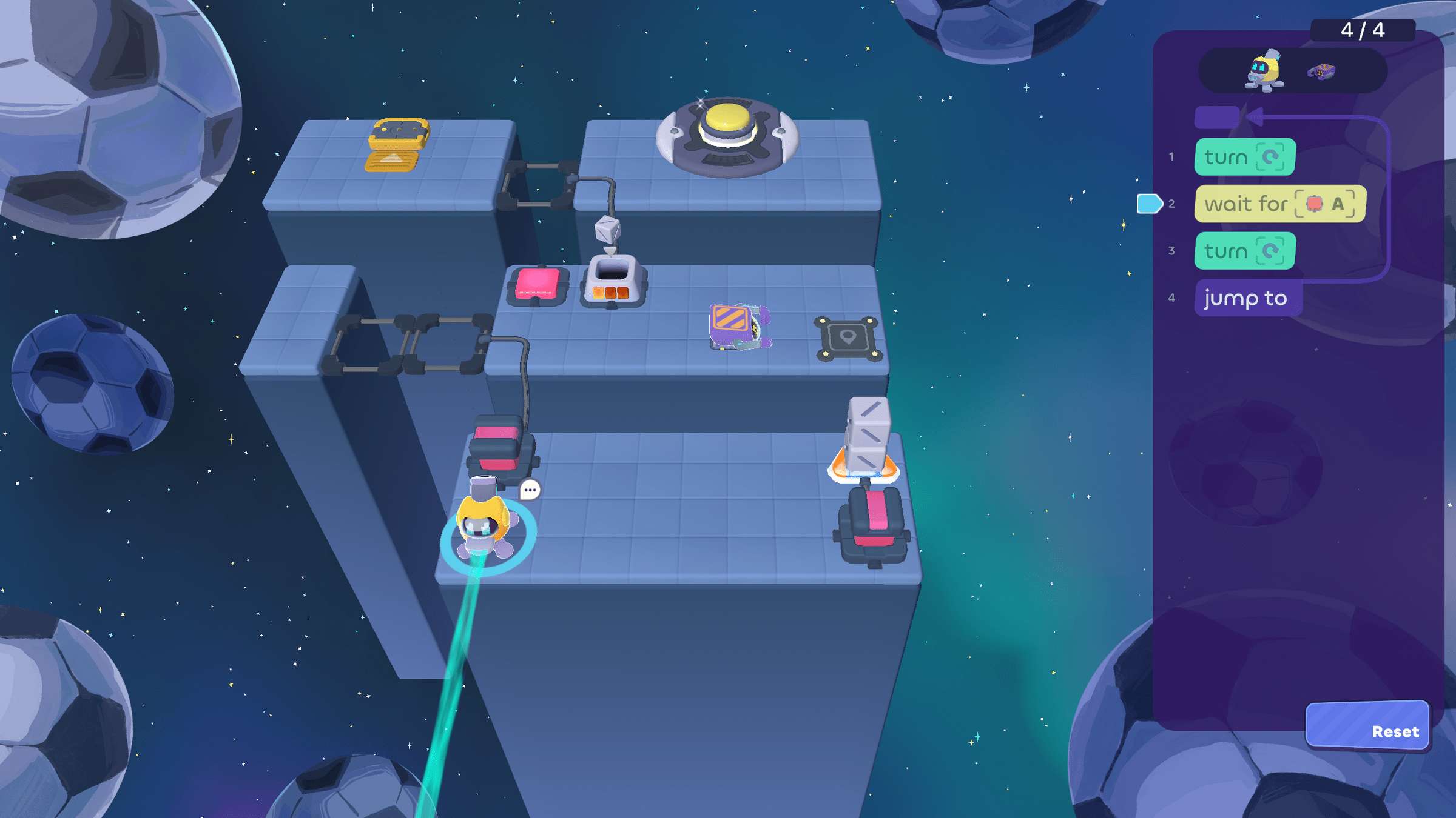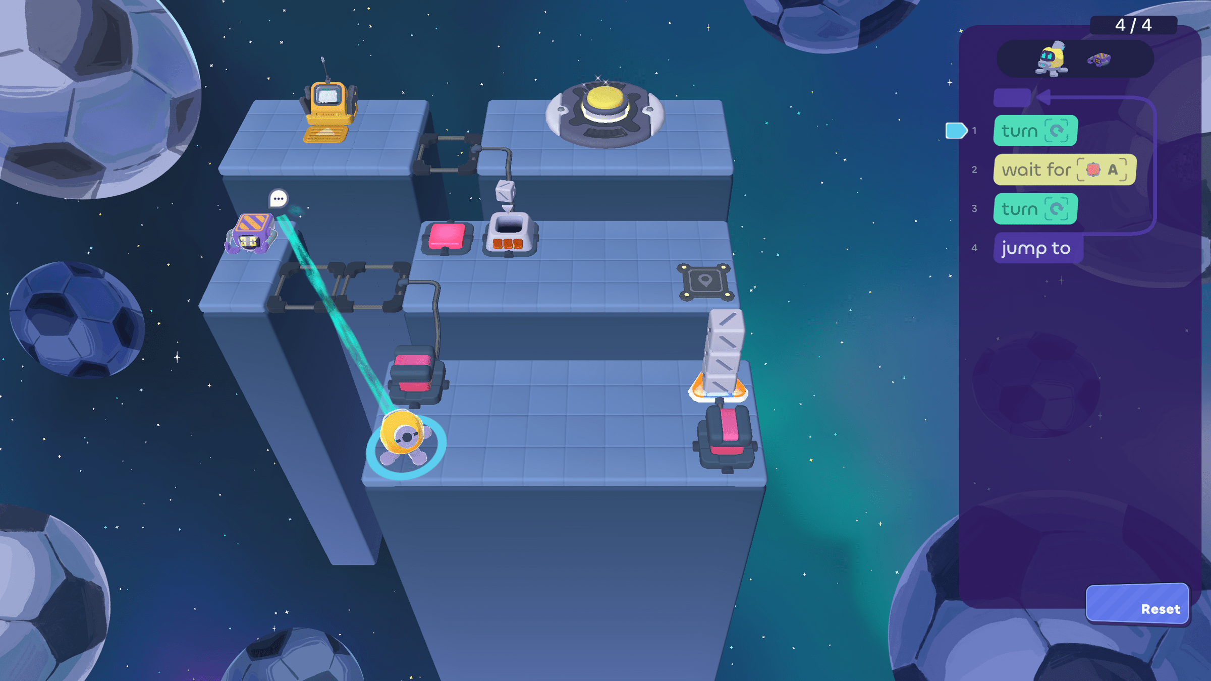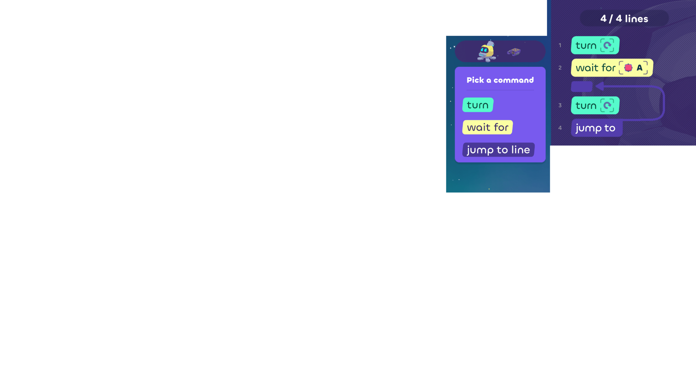 Plus, looping one turn makes a Laser spin forever. So we can launch all the cubes just by looping the turn on line 3!