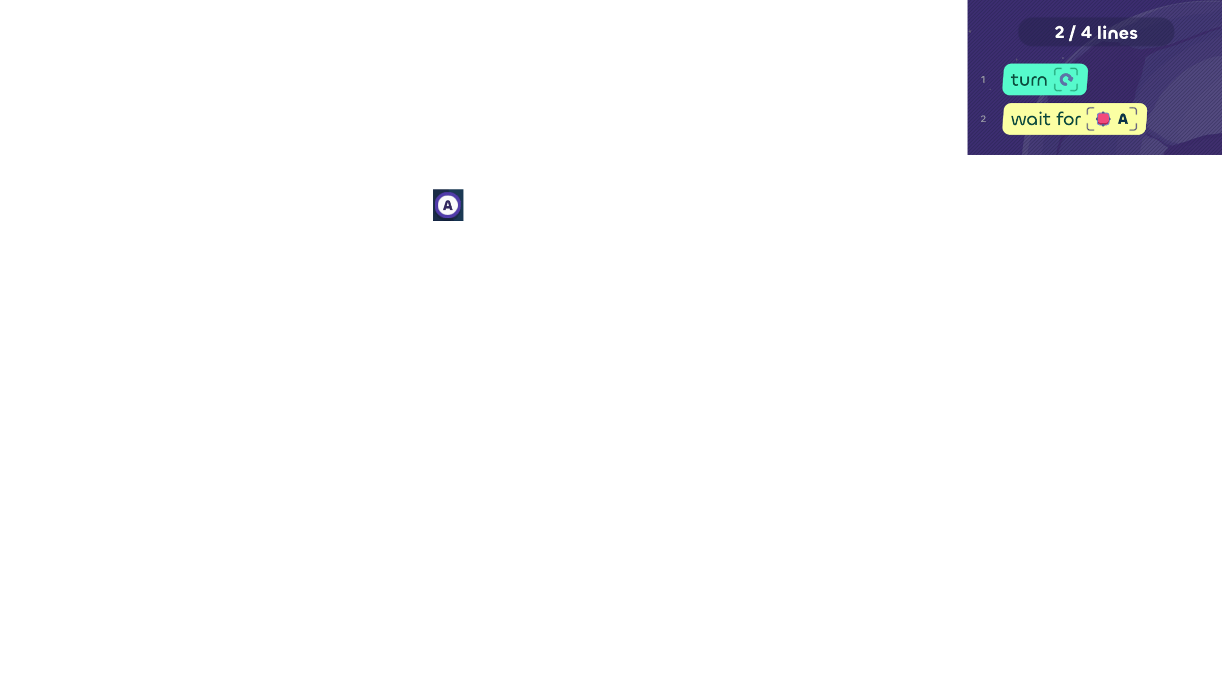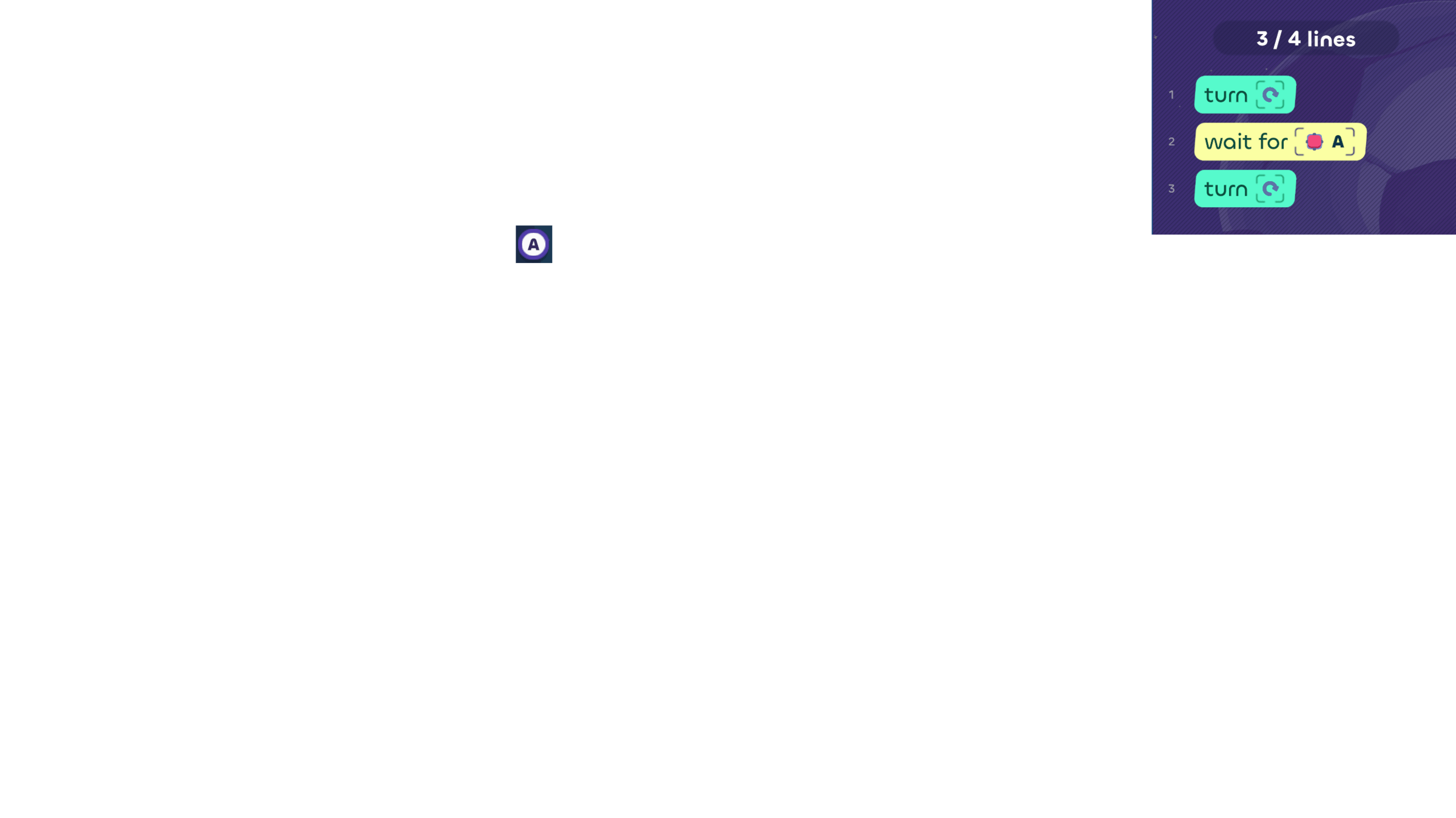 I see the problem. Look at where the Laser stops when we run the code — on line 2, "wait for A" .