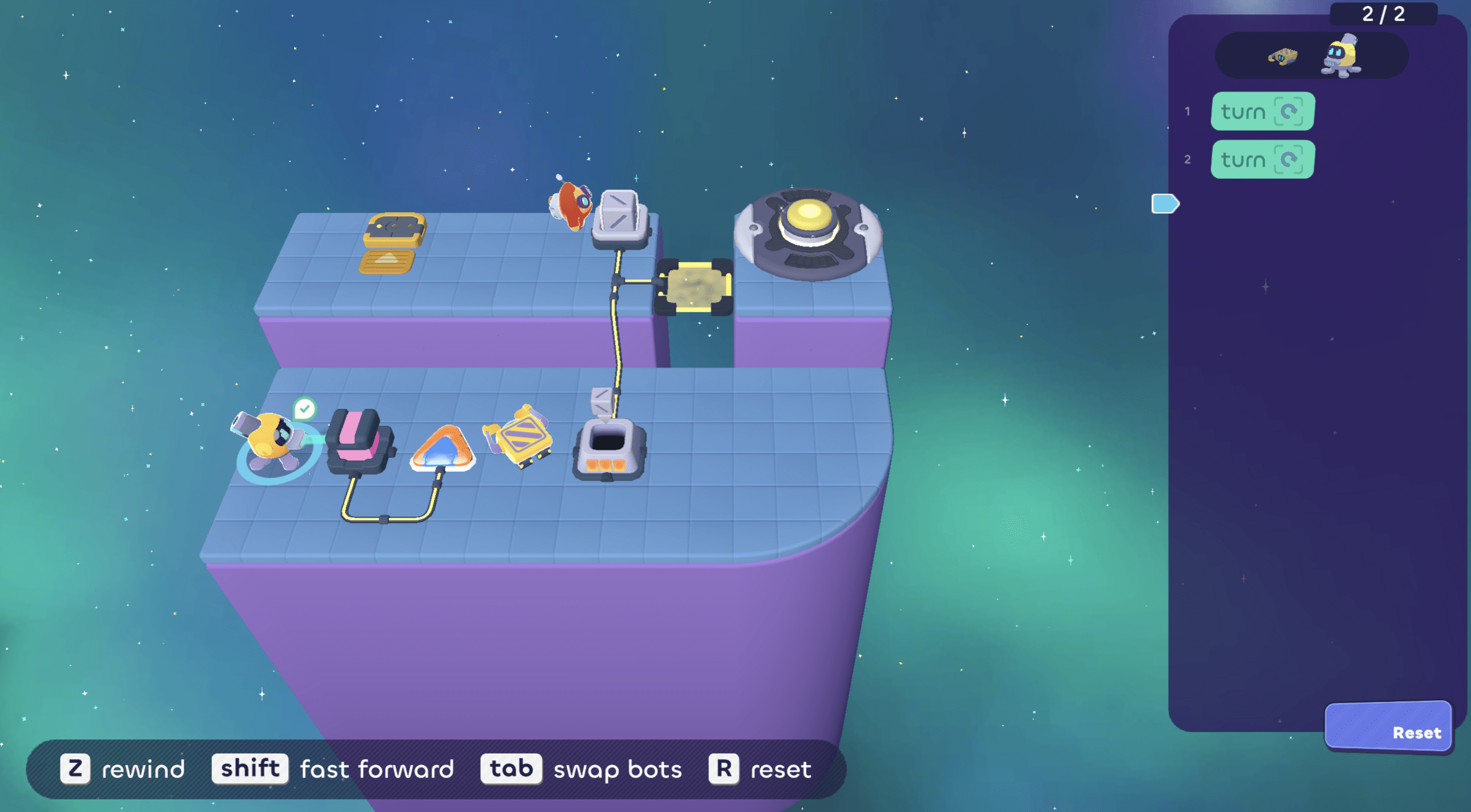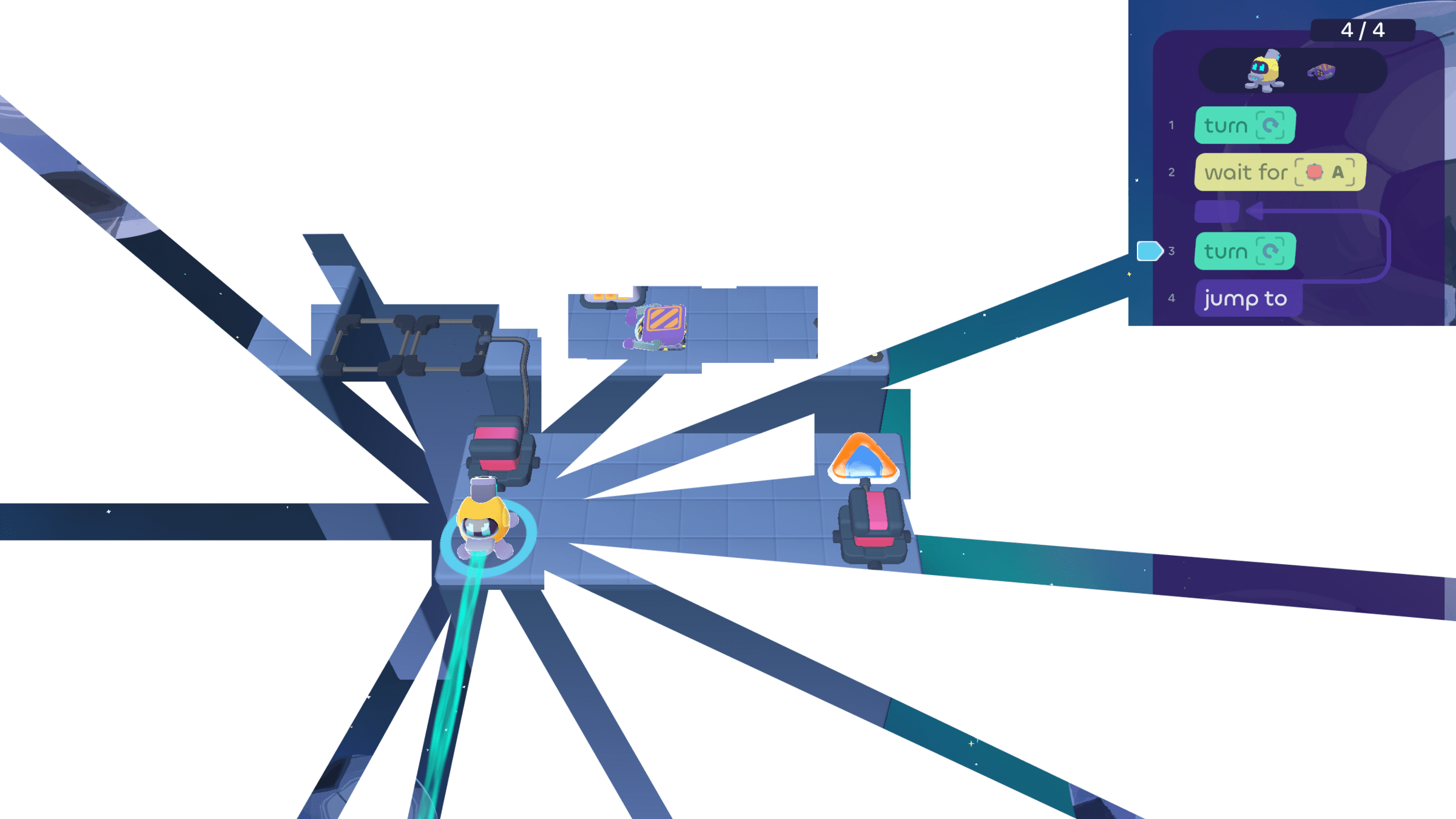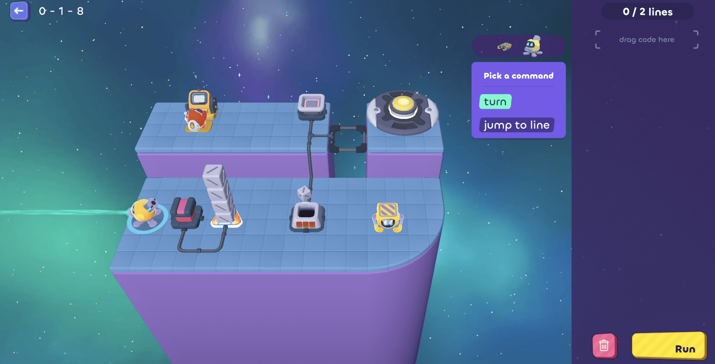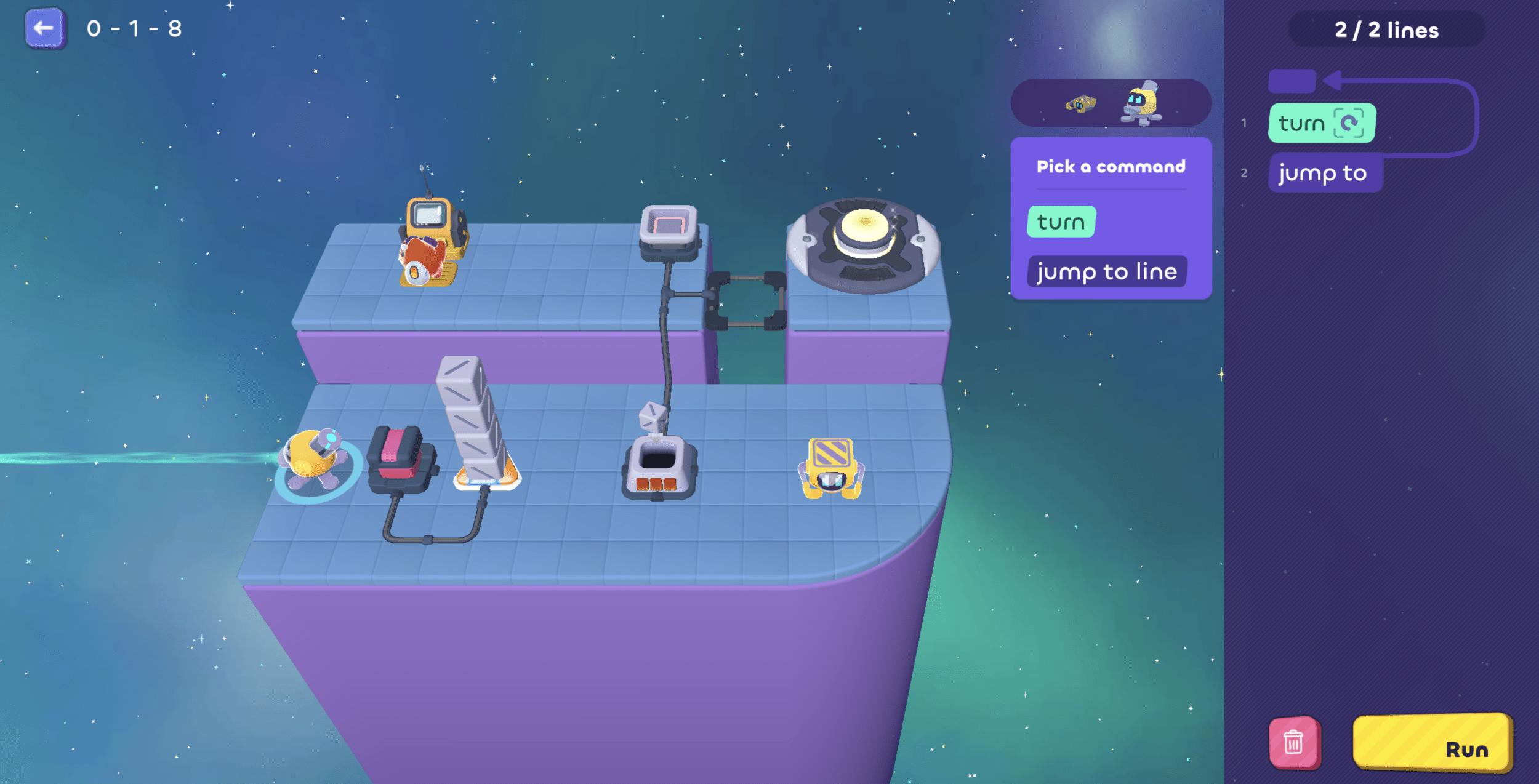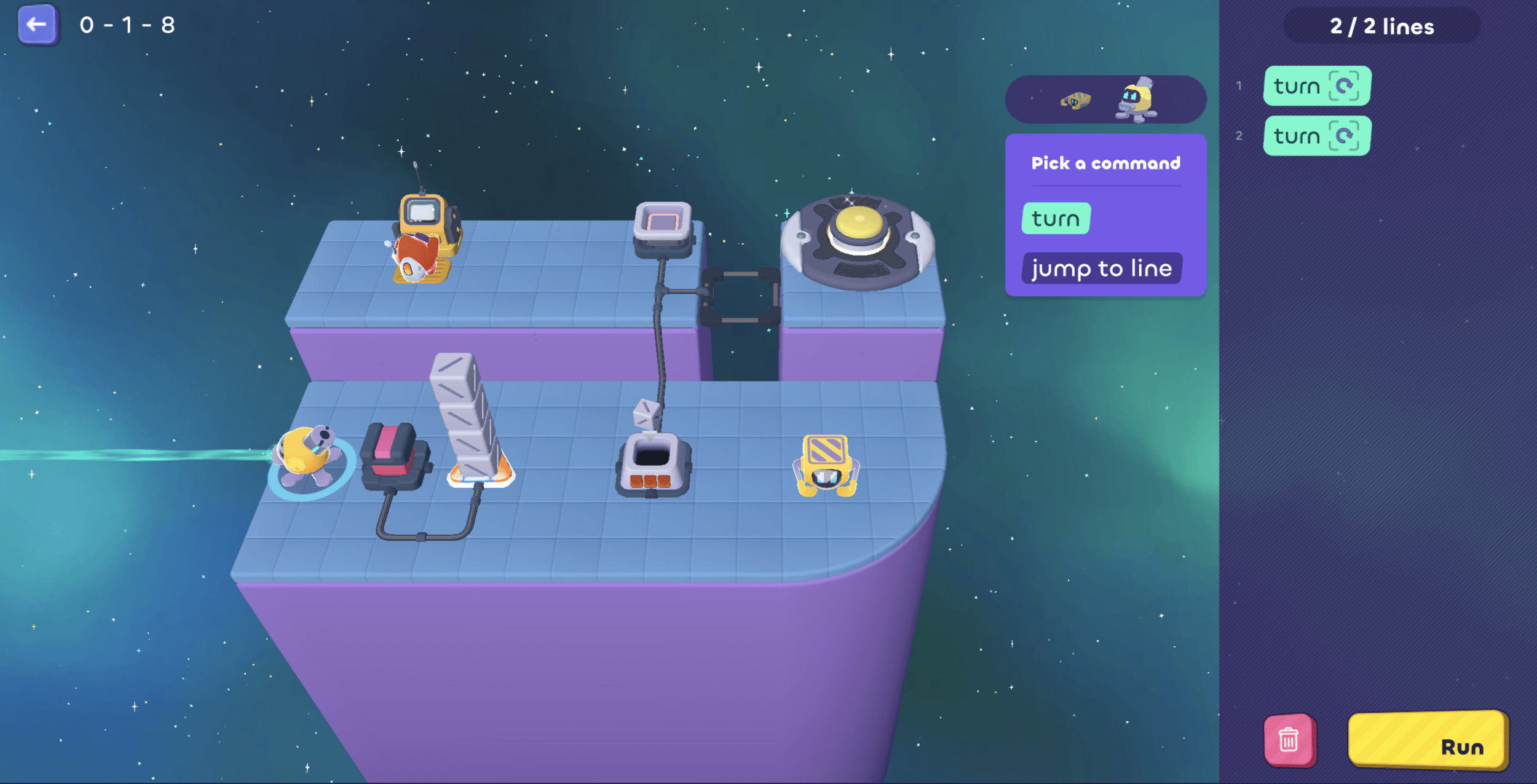 Then it needs to go pick up another cube...oh! But we only have 1 line left, so...