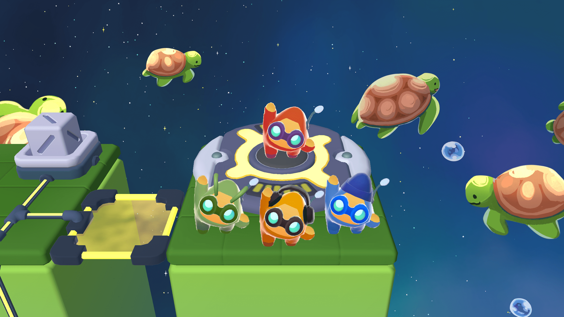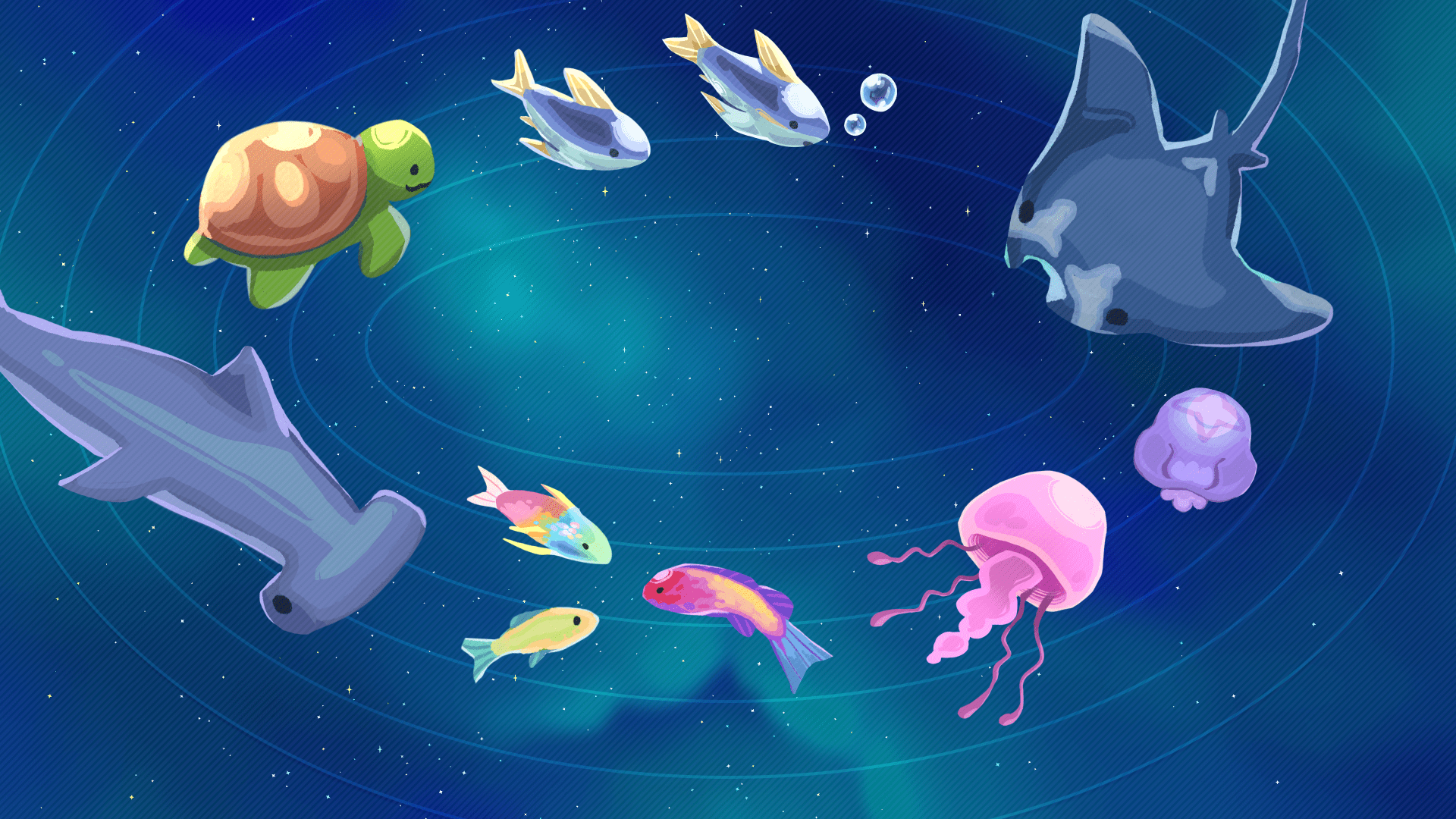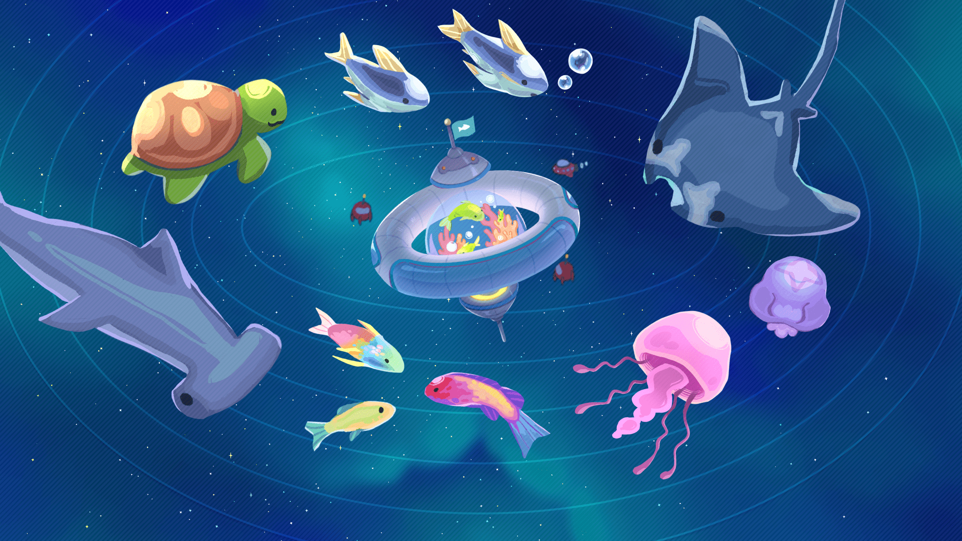...Okay, got it. I'll go chase Cordy and Lem's spaceship. To convince them to come back, I'll need you to restore the stars here at Underwater Galaxy.
