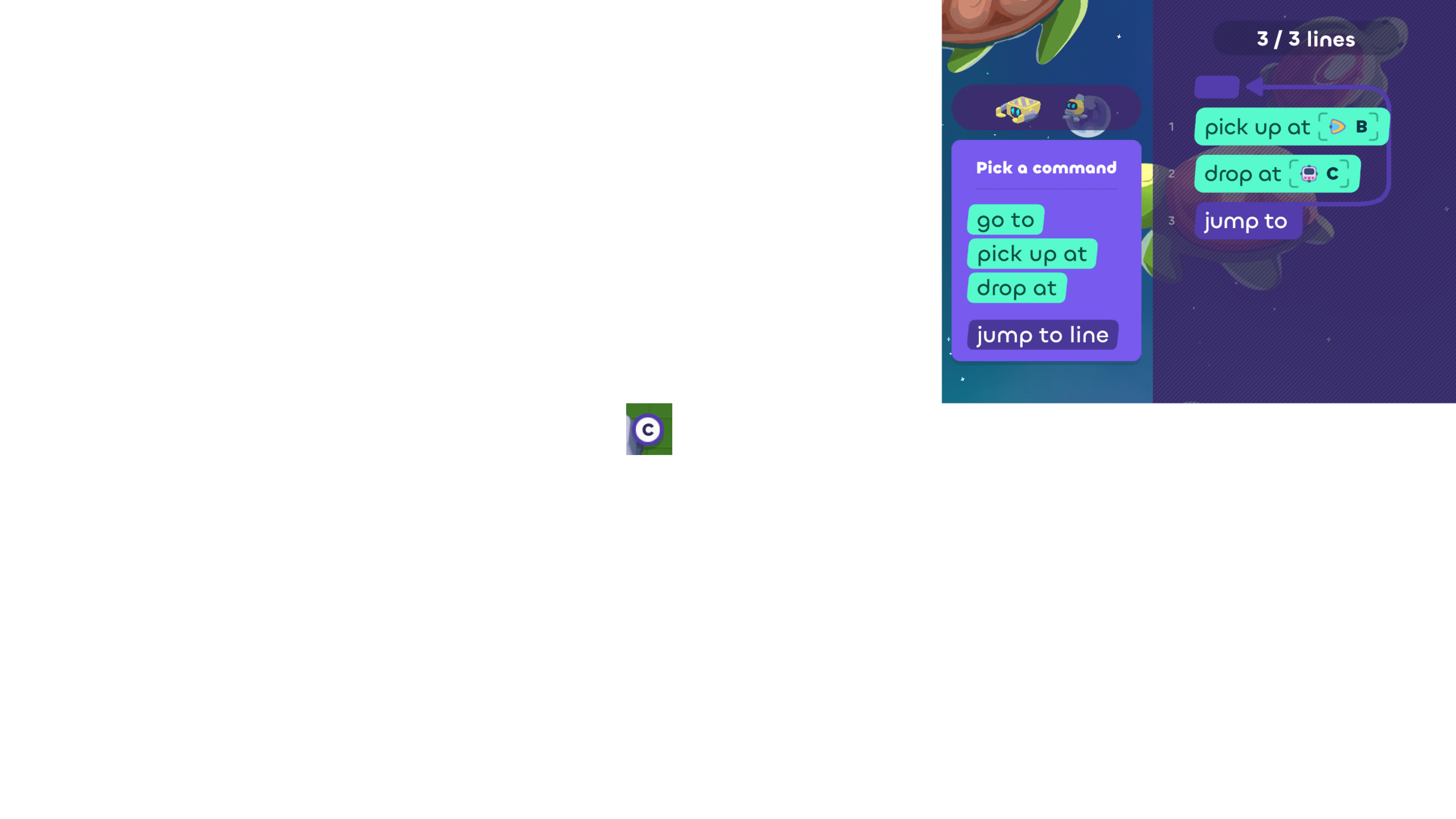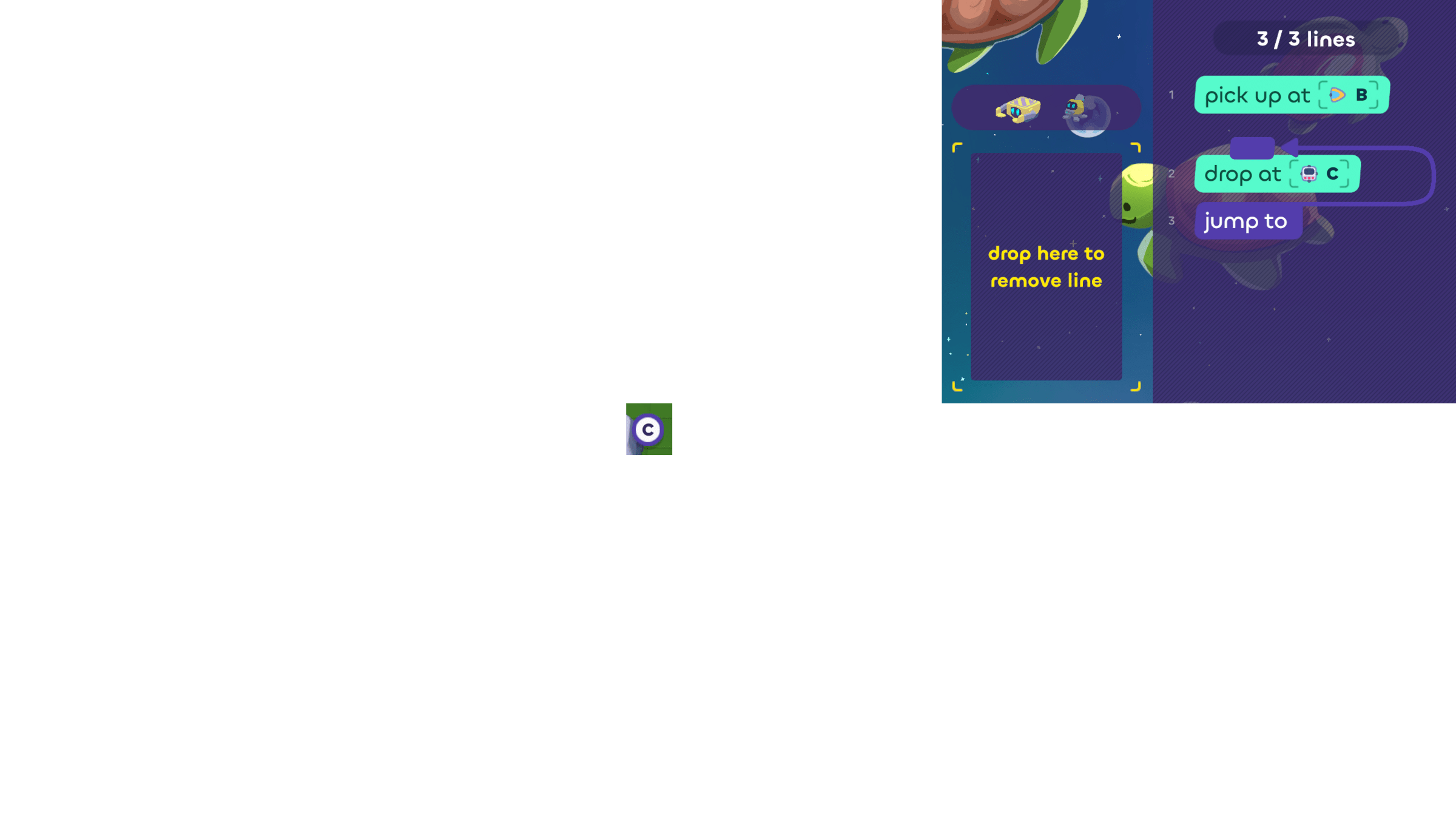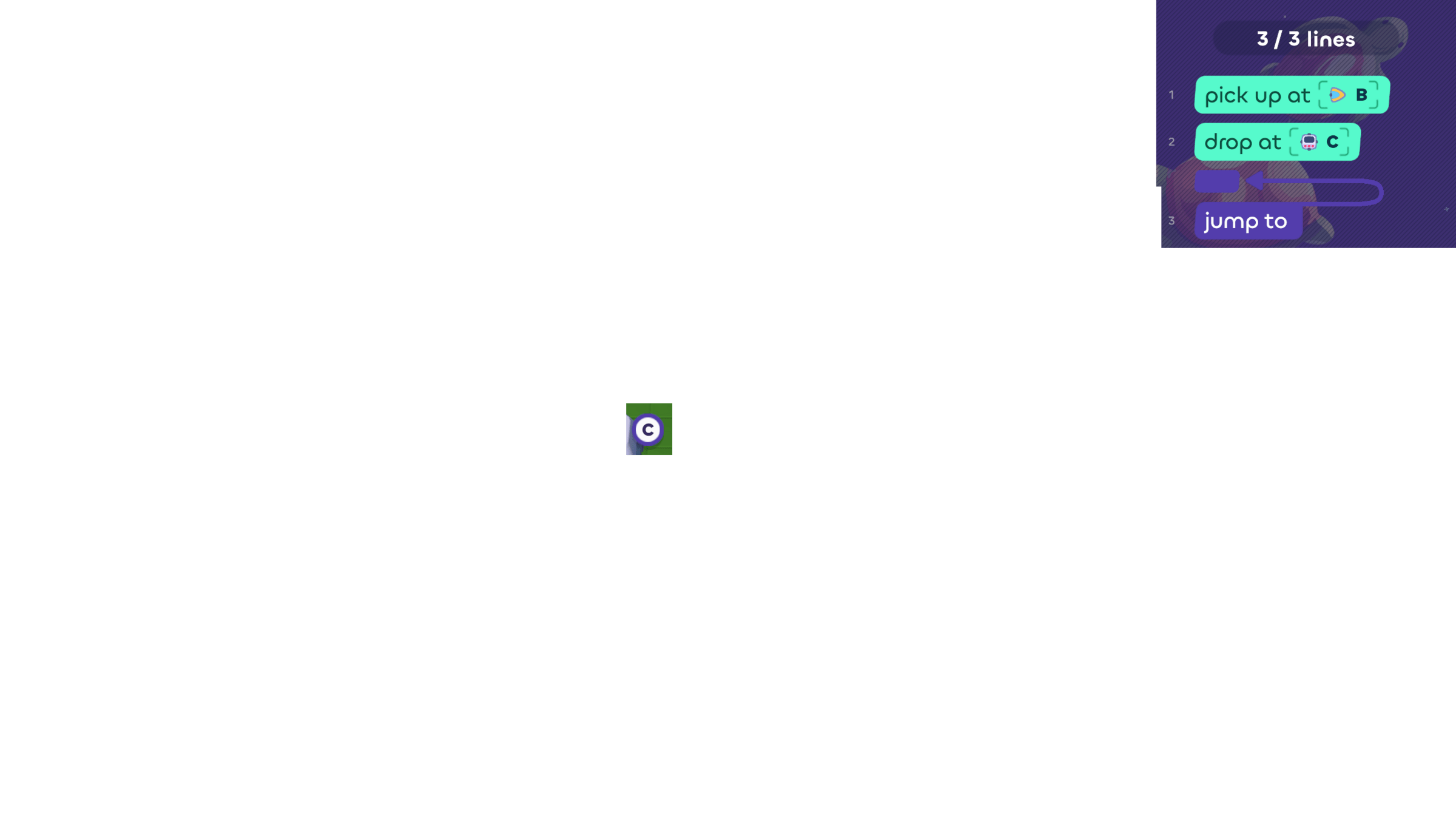 Next, it should drop the cube at counter C...