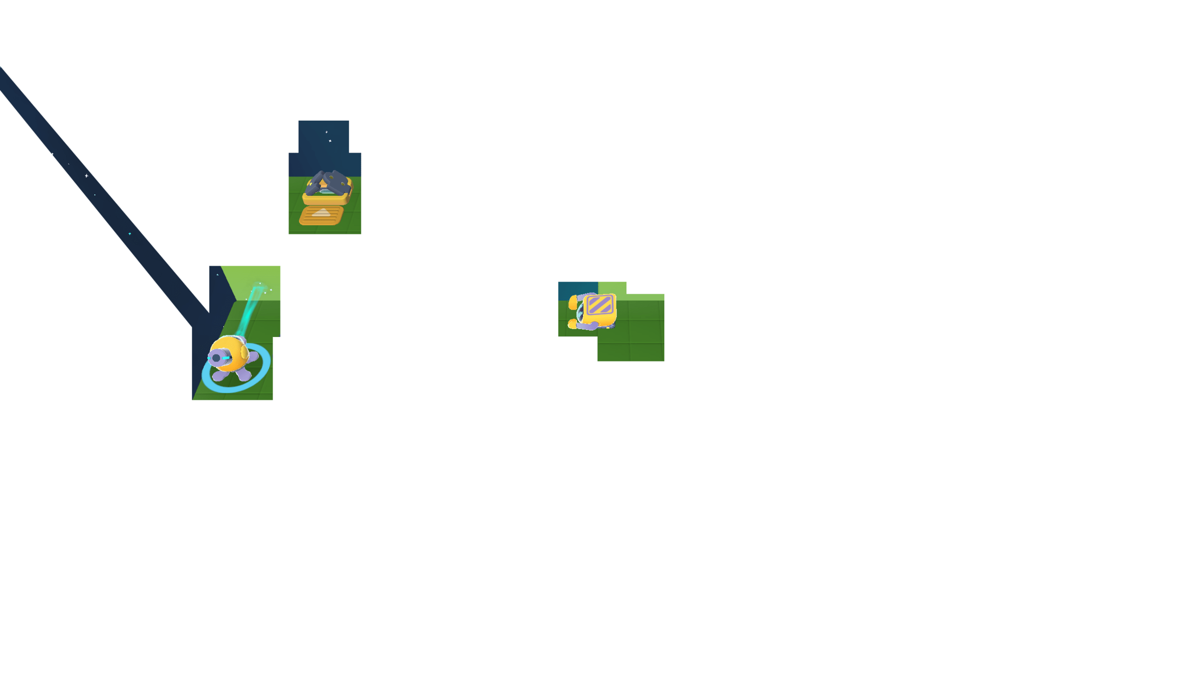 First, it should pick up a cube at launcher B...