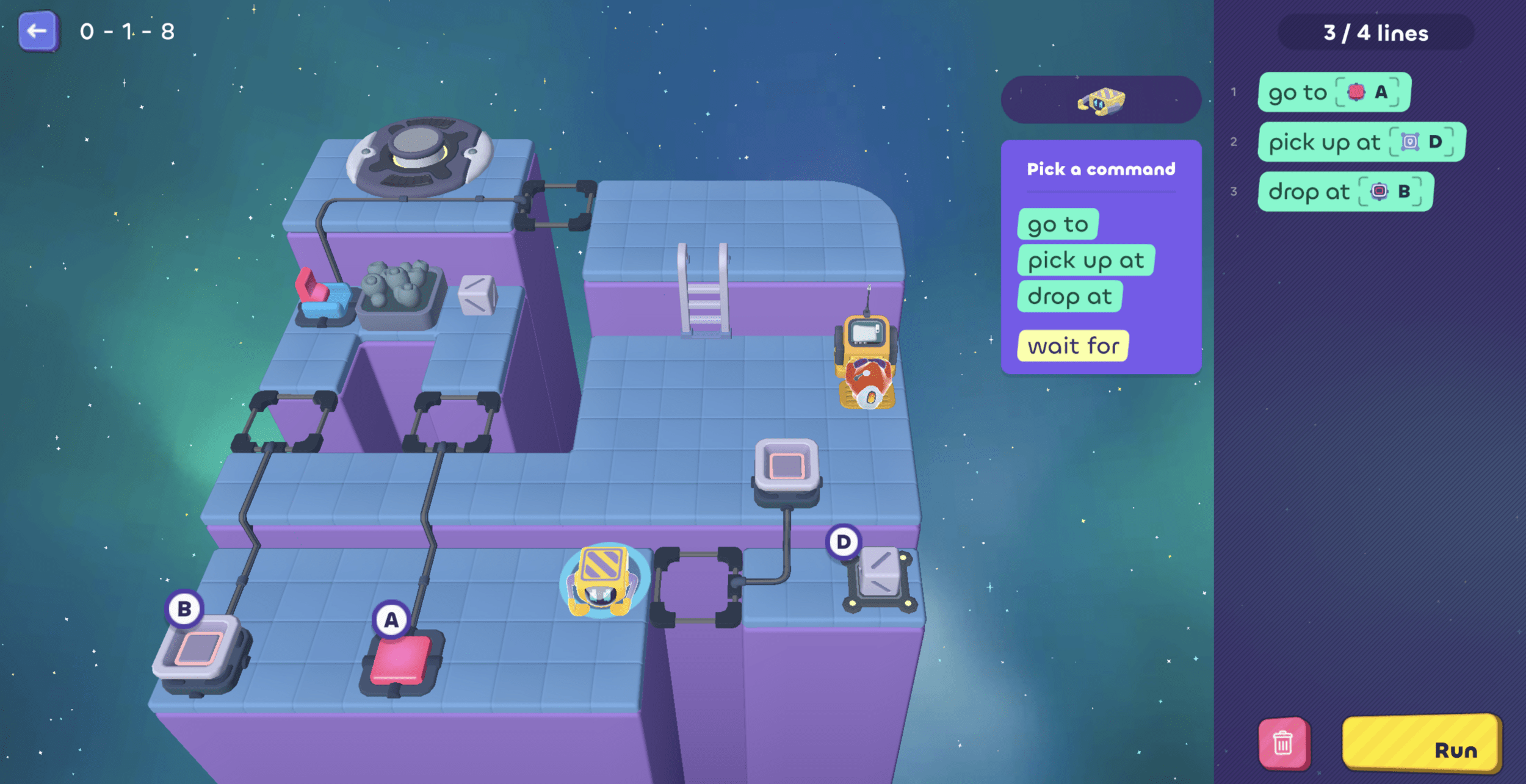 My idea didn't work. The bot can't pick up the cube at position D yet because this bridge is off.