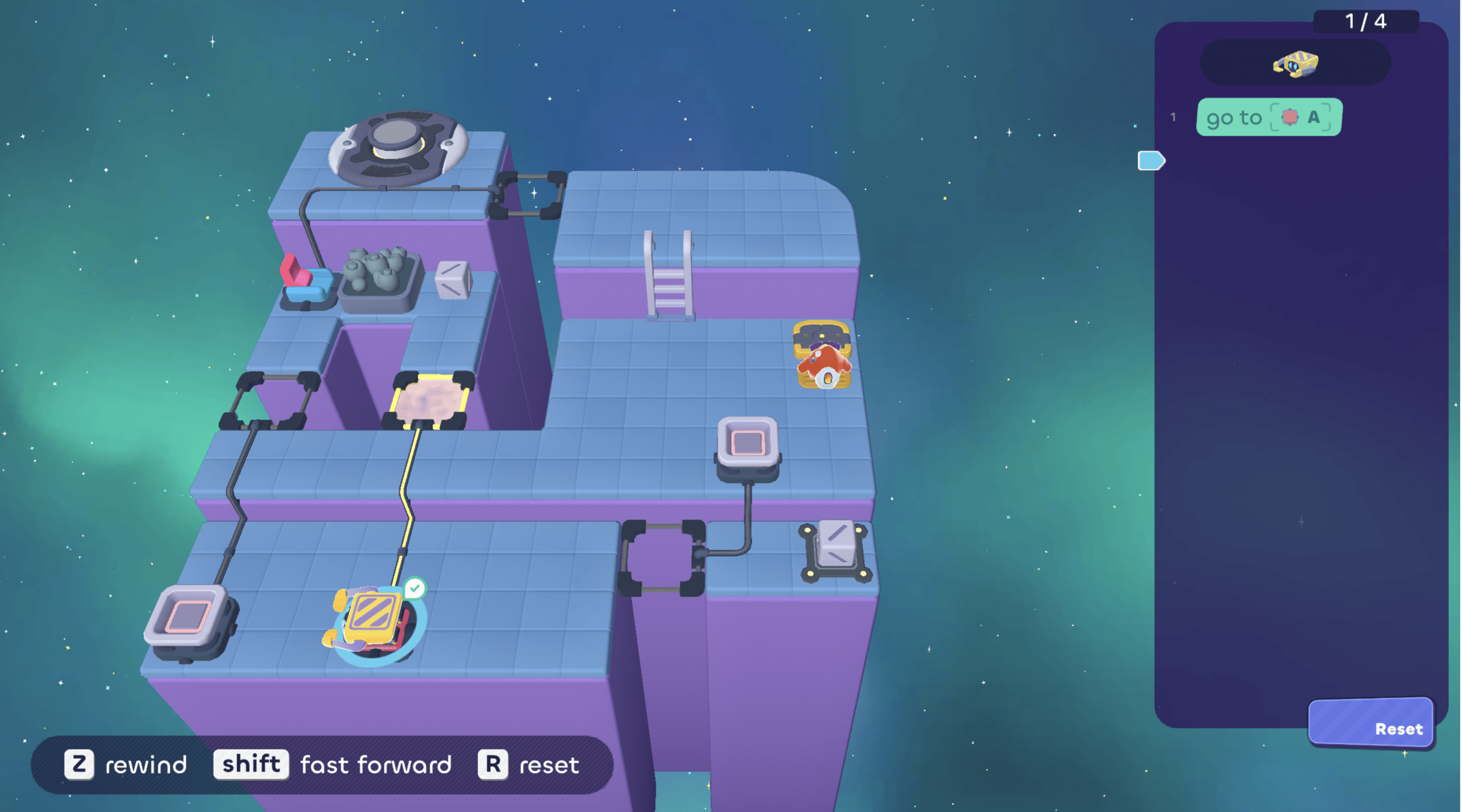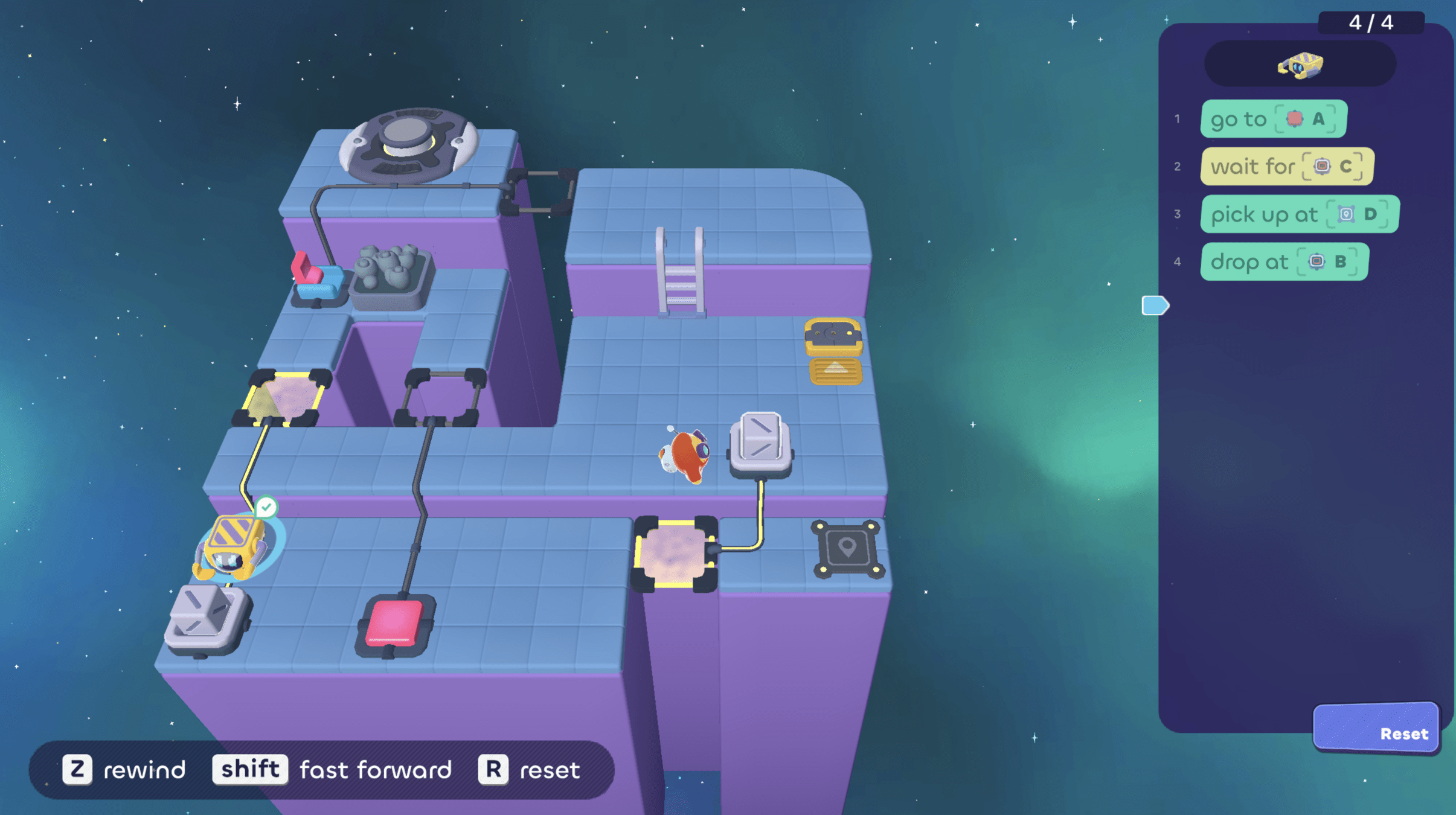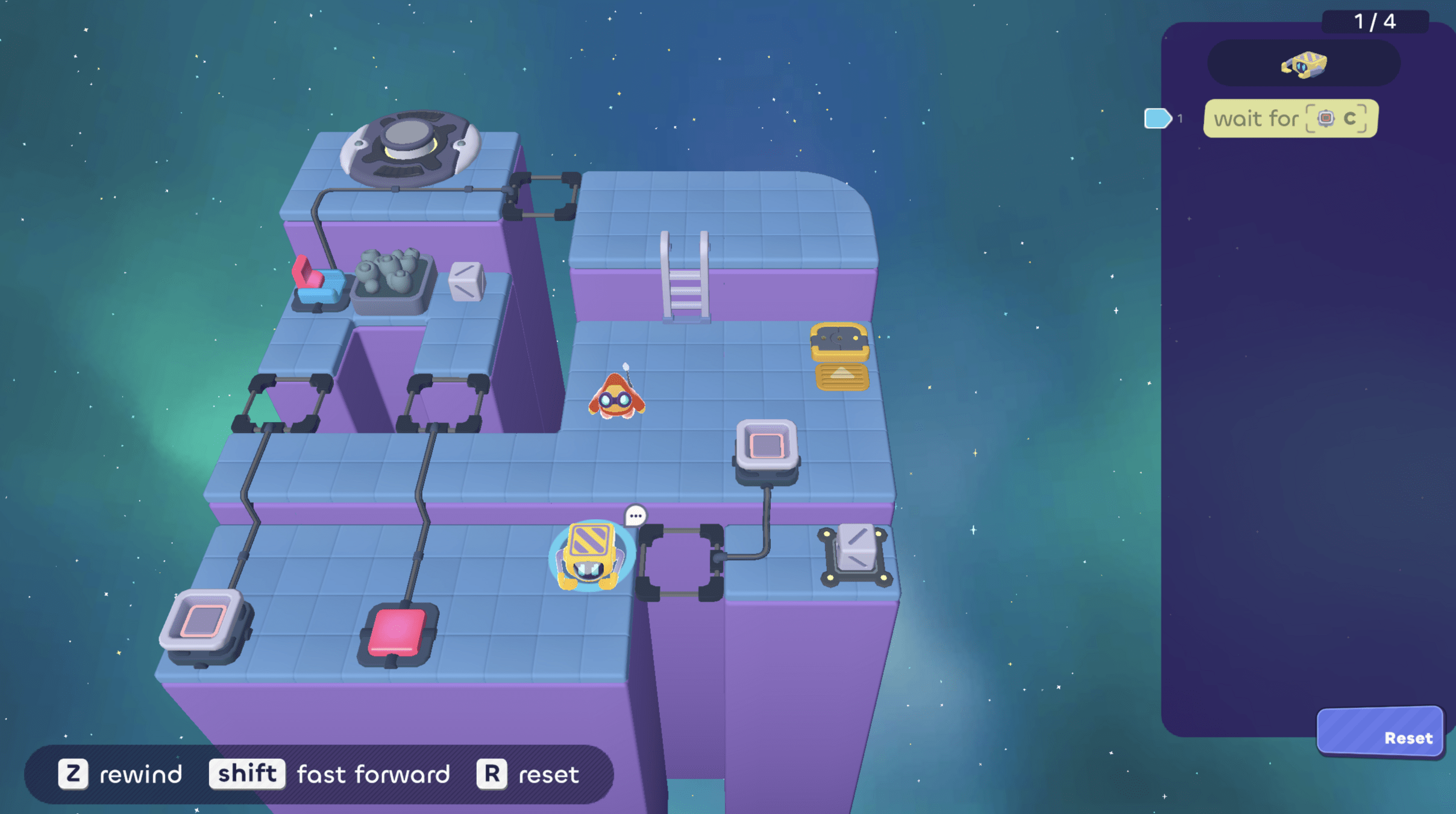 Yeah. When the bot is on button A, that turns on this bridge here. That gives us a path to get the cube!