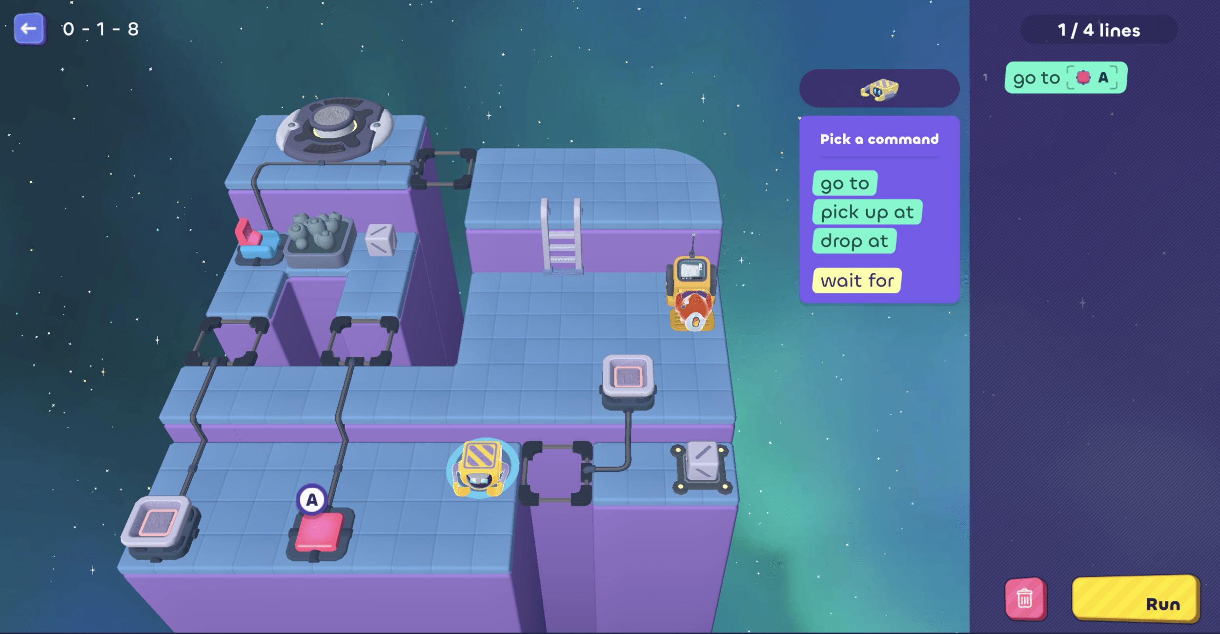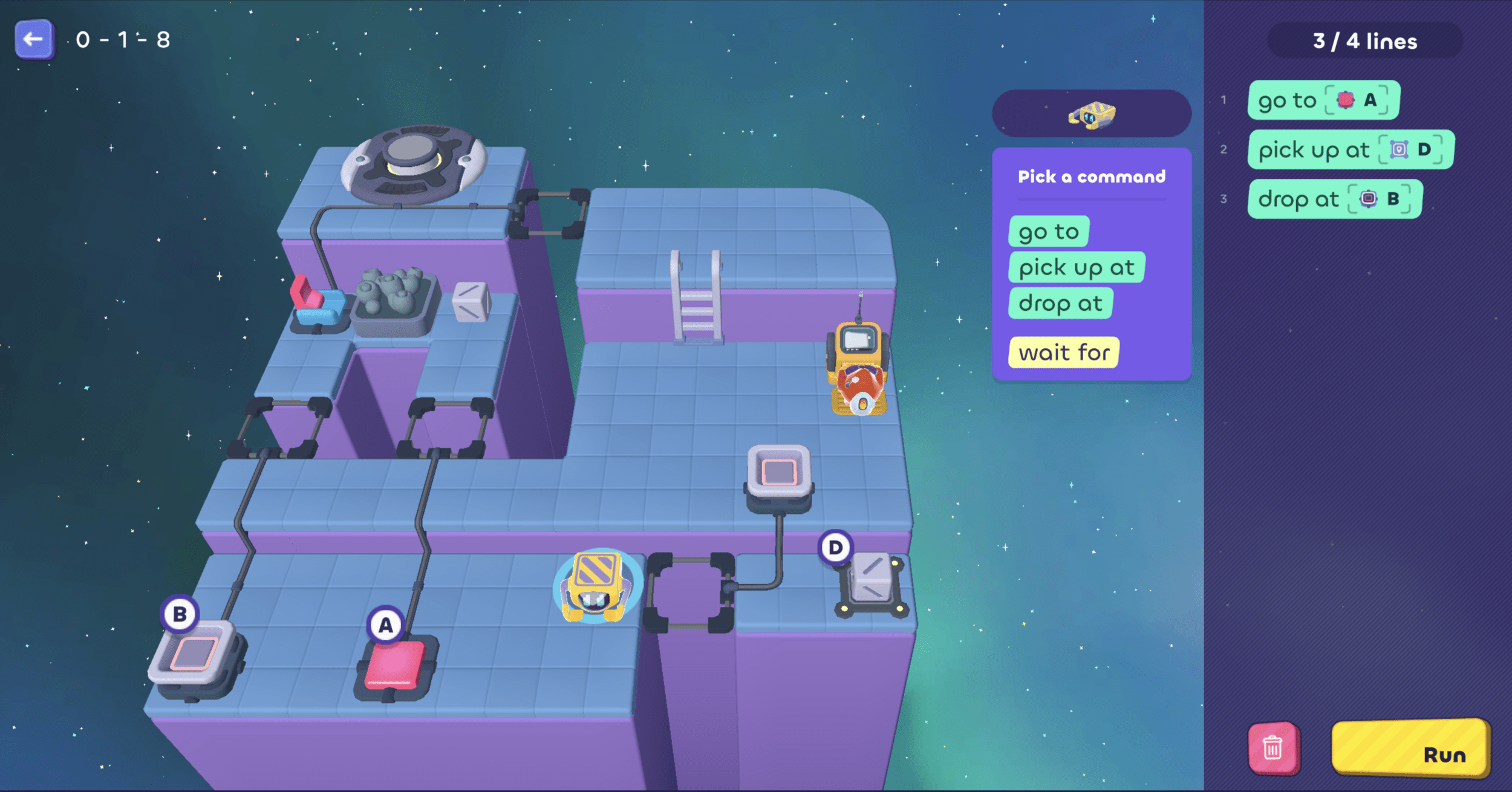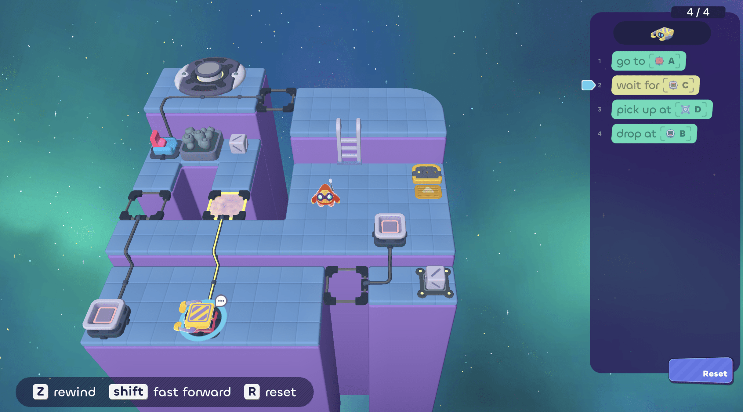 Yeah. When the bot is on button A, that turns on this bridge here. That gives us a path to get the cube!