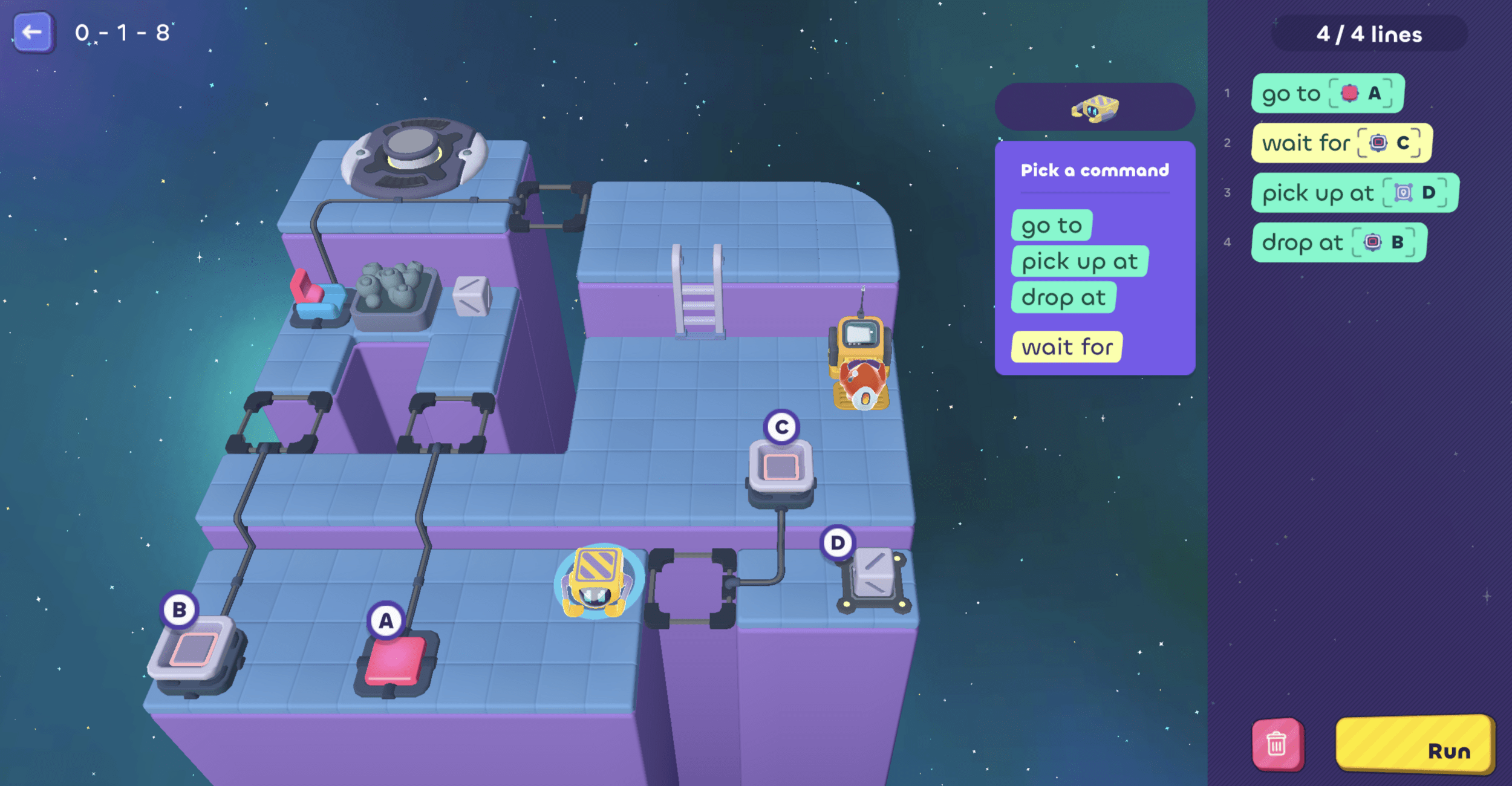 Using "wait for", we can tell bots to wait for a specific event before continuing to the next line of code.